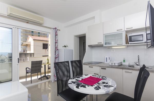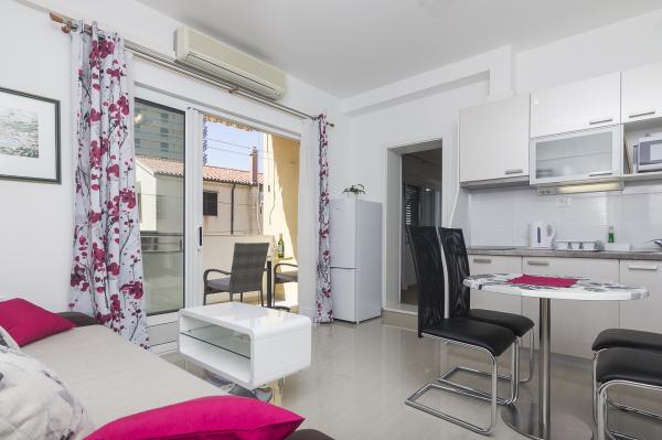 Fuldt udstyrede lejligheder i et familiehus, beliggende i en meget rolig del af Makarska. Ejendommen ligger 2 minutters gang fra stranden og mange restauranter. 15 minutters gang fra byens centrum.