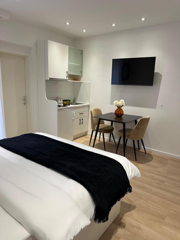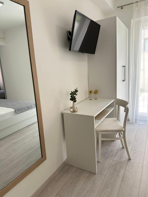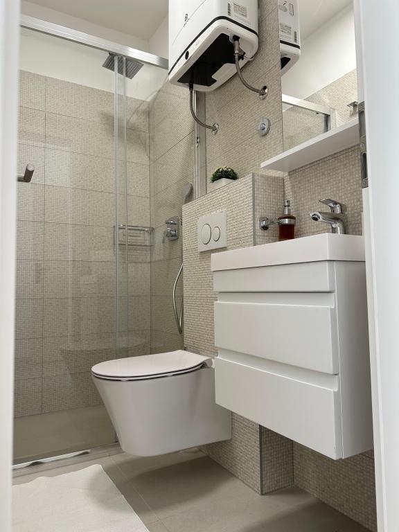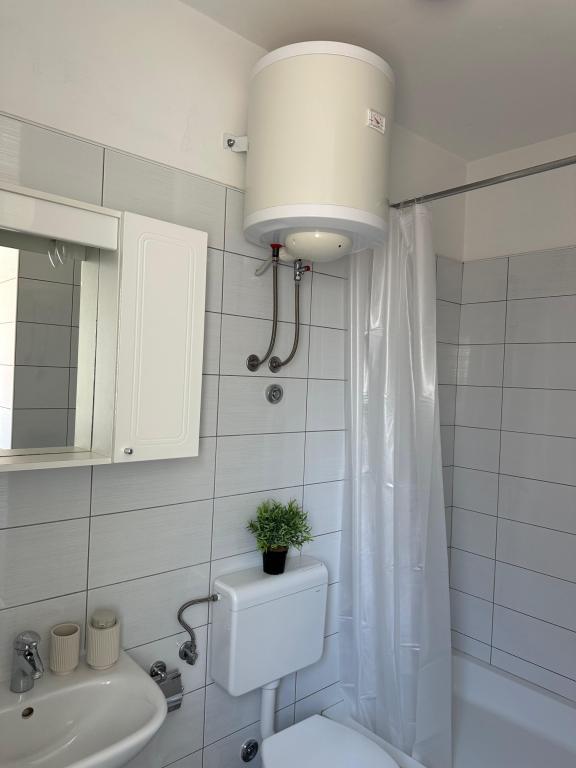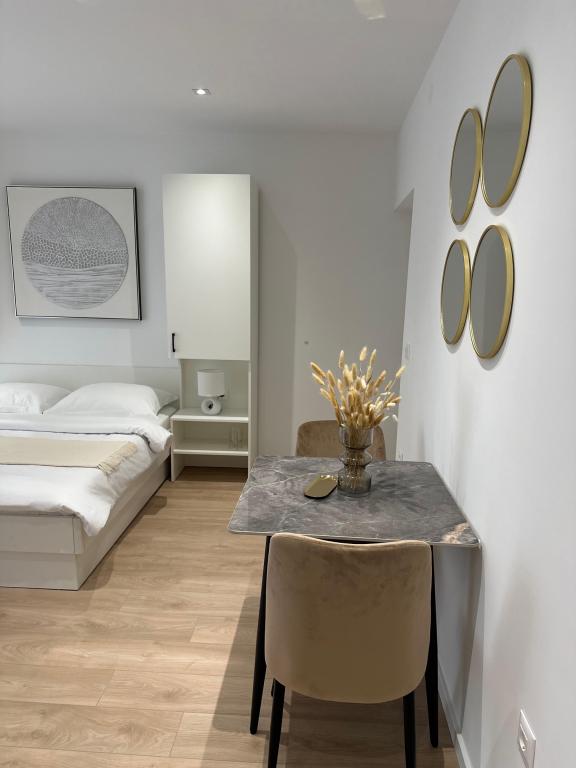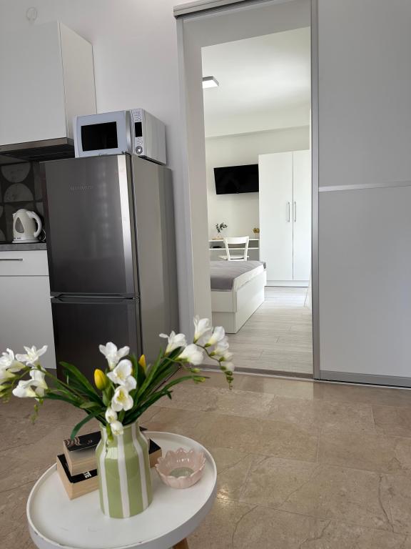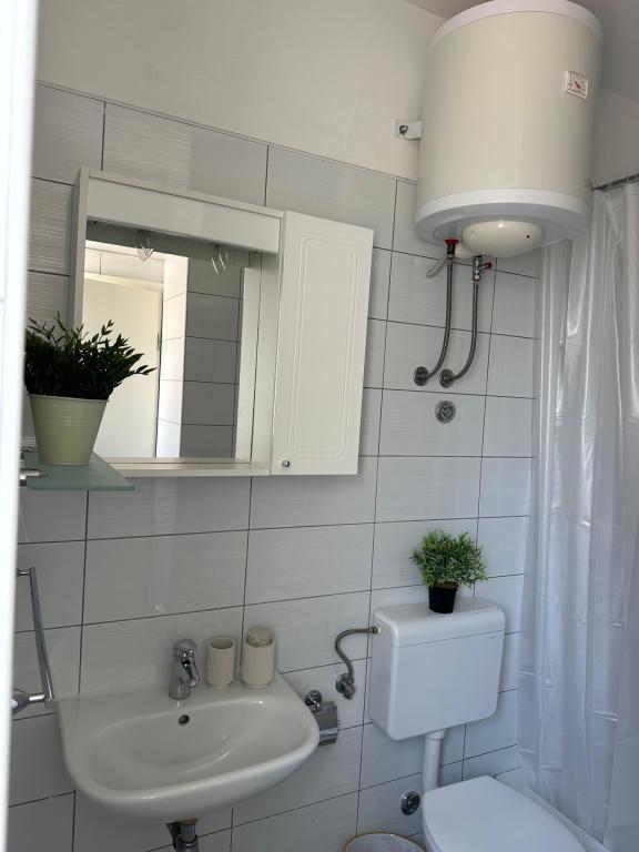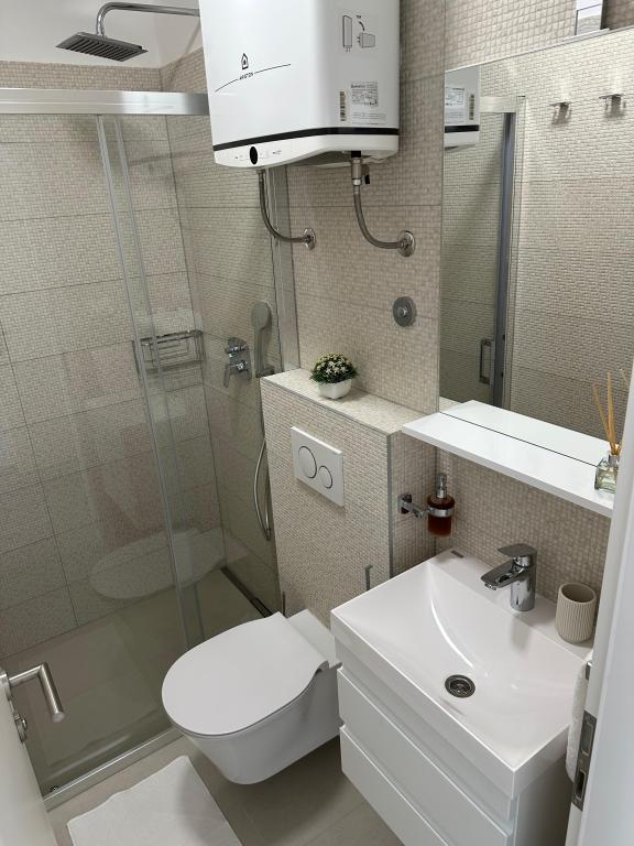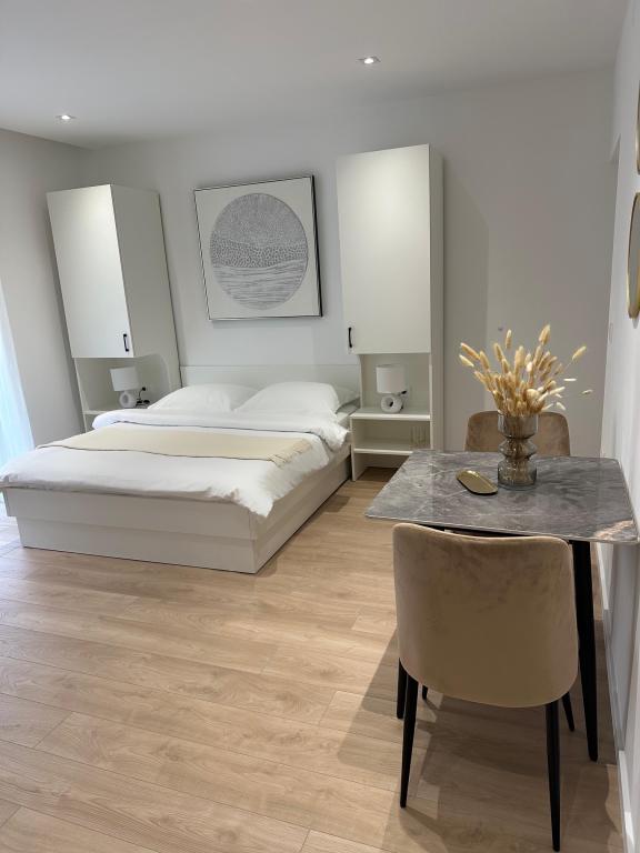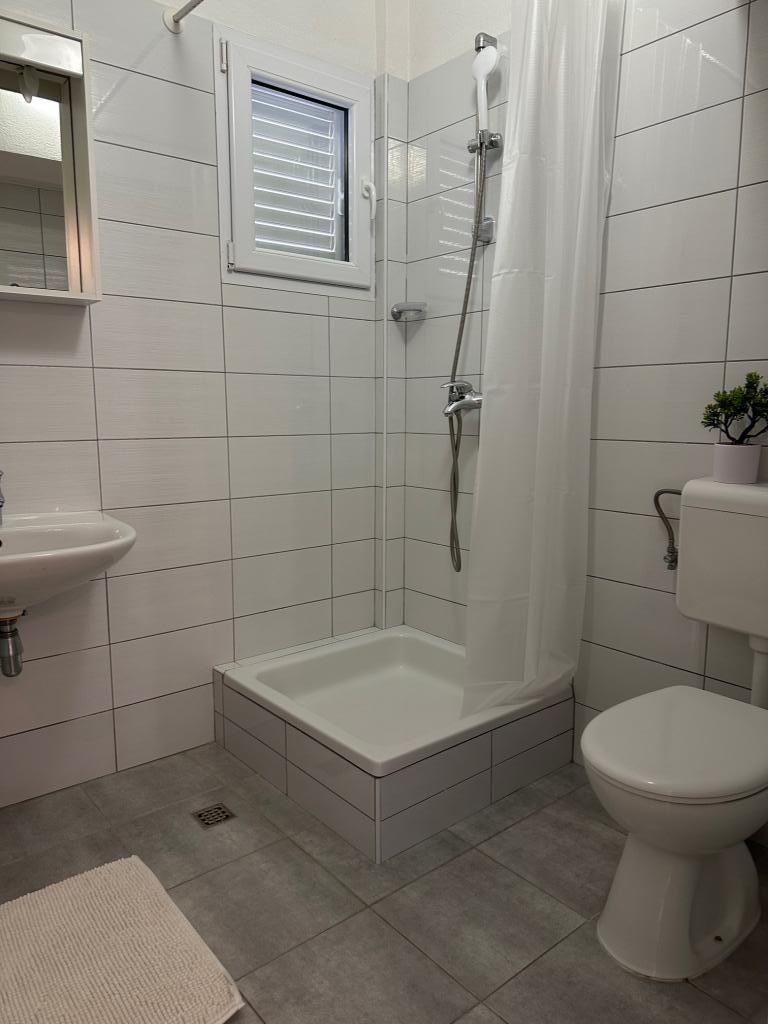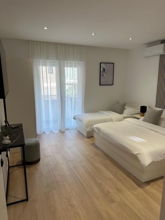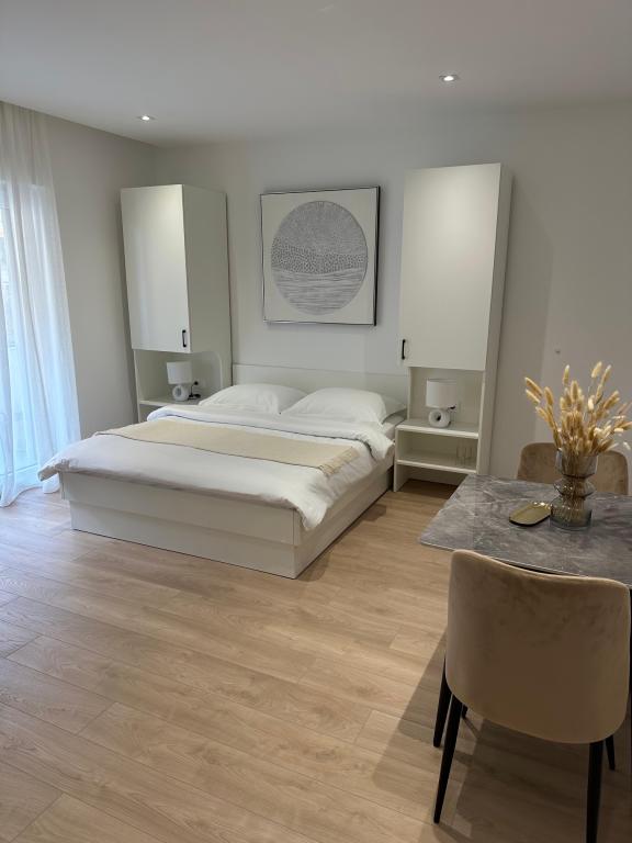 De fuldstændig renoverede lejligheder Olga 1 ligger i Makarska, i "Plaža"-området, kun 50 meter fra havet og stranden. Vi tilbyder 3 lejligheder beliggende på 1. sal i huset. Vi tilbyder også en lejlighed til 4 personer beliggende i stueetagen. Alle lejligheder har aircondition, eget badeværelse, udstyret køkken, SMART-TV/SAT, WiFi og en balkon, hvor du kan tilbringe din tid. Privat parkering er placeret i gården foran huset. Afstanden til det nærmeste supermarked er 100 meter, og restauranter og caféer ligger 50 meter væk og ligger på stranden. Afstanden til byens centrum er 5 minutter til fods. Lejlighederne ligger i fredelige og rolige omgivelser.
