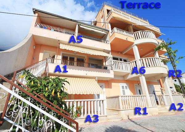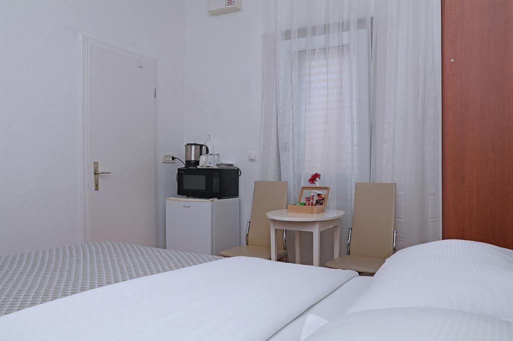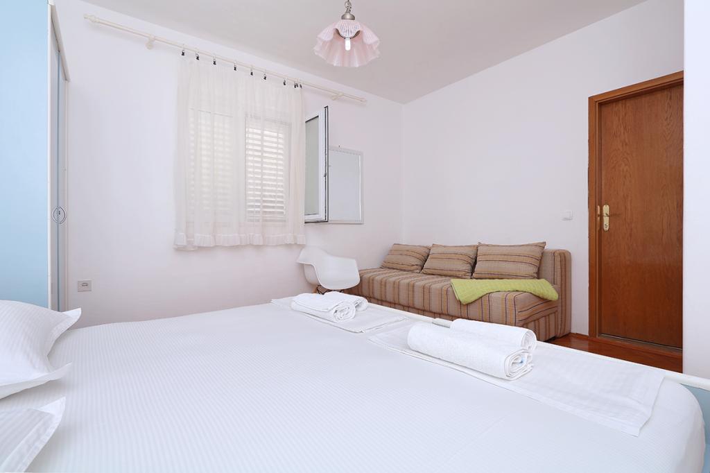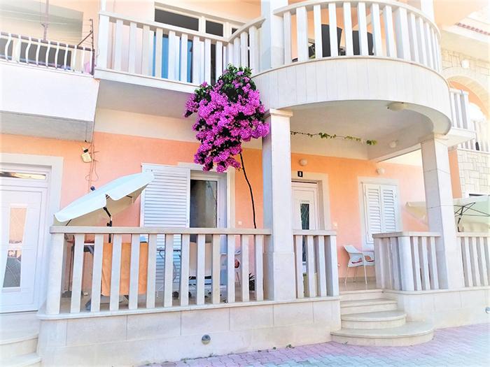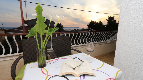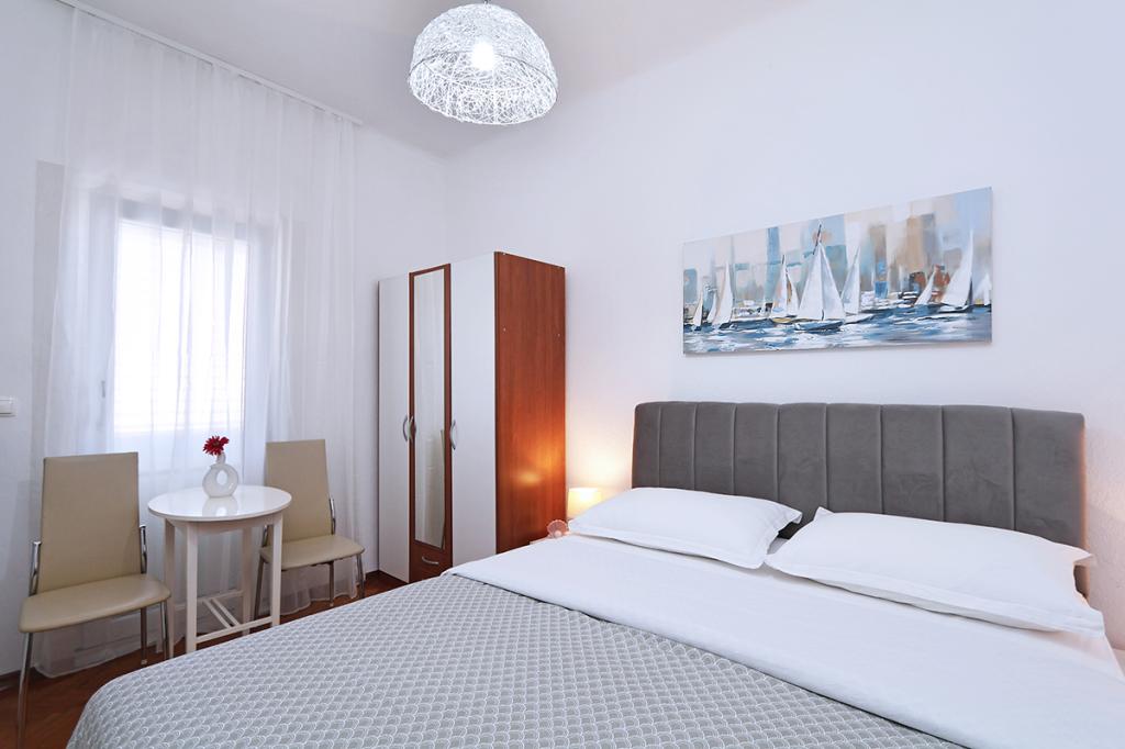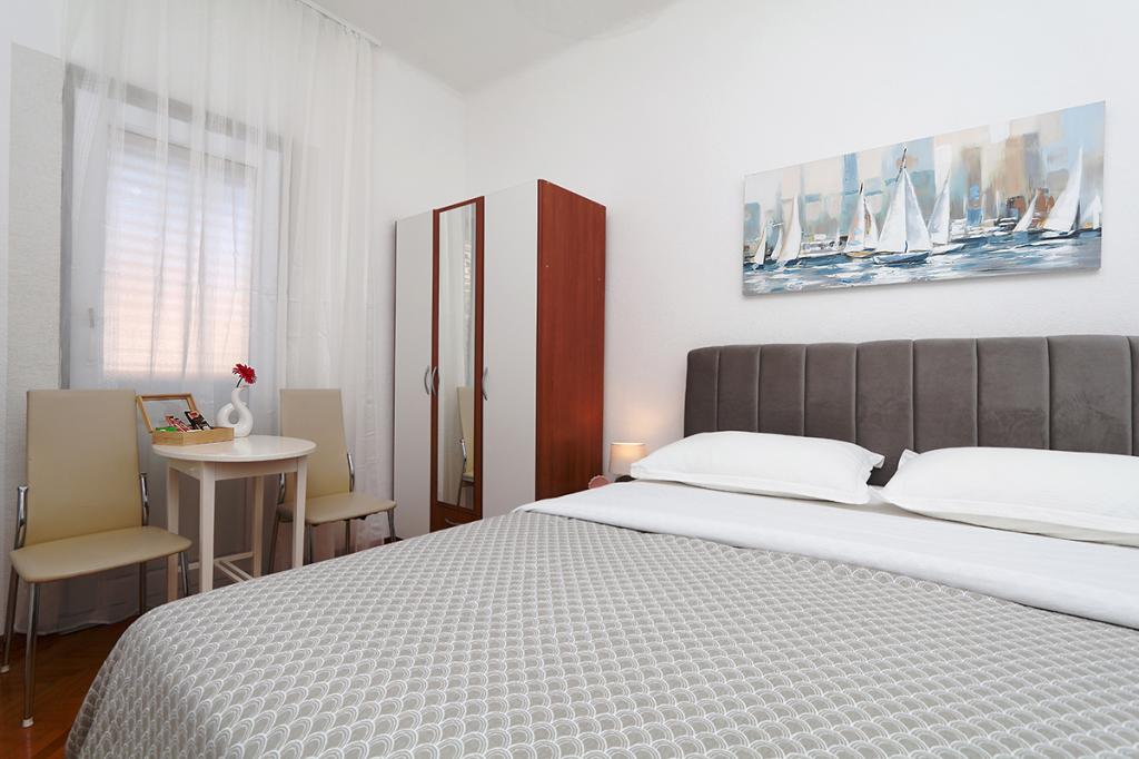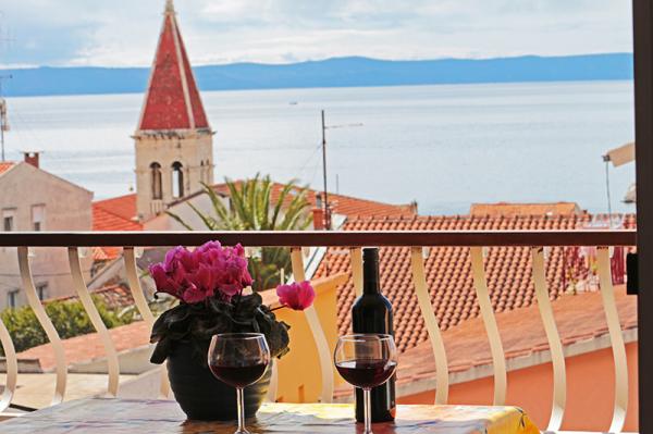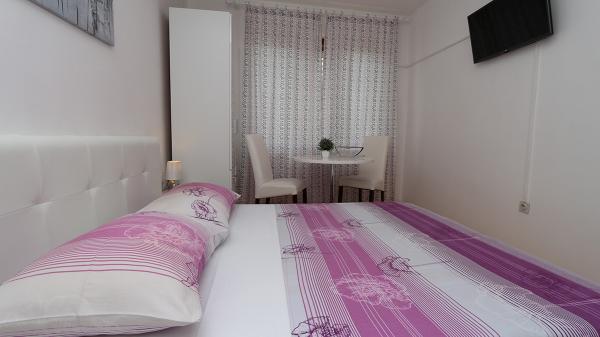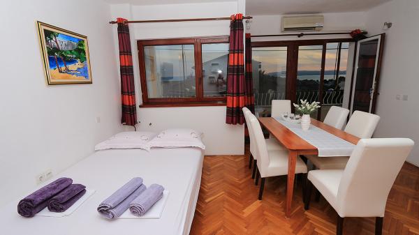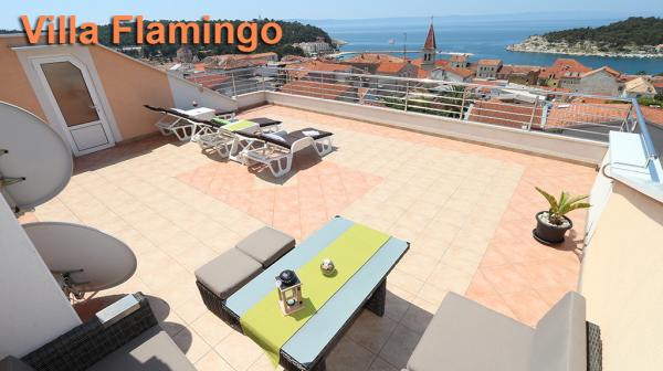 Lejlighederne og værelserne Villa Flamingo ligger i byens centrum, væk fra hovedvejen, i rolige omgivelser med en stor have og parkering. Alt er beliggende i byens centrum, lejlighederne ligger 100 m fra hovedtorvet, 300 m fra havnefronten, 500 m fra stranden. Lejlighederne ligger væk fra hovedvejen, så vi garanterer en fredelig og rolig ferie. Foran huset, i haven, har vi en stor pejs, hvor I kan tilberede grillretter og spise aftensmad i den smukke have. Balkonen har udsigt over havet og byens havn samt øerne Brač og Hvar. Alle lejligheder har aircondition, satellit-tv og WiFi. Efter aftale med gæsterne arrangerer vi transport fra lufthavnen til lejligheden. Lejlighederne har trådløs internetadgang. Øverst i huset har vi en stor terrasse med storslået udsigt over havet og byen, til brug for alle gæster. Det er muligt at arrangere morgenmad, frokost og aftensmad på en nærliggende restaurant.