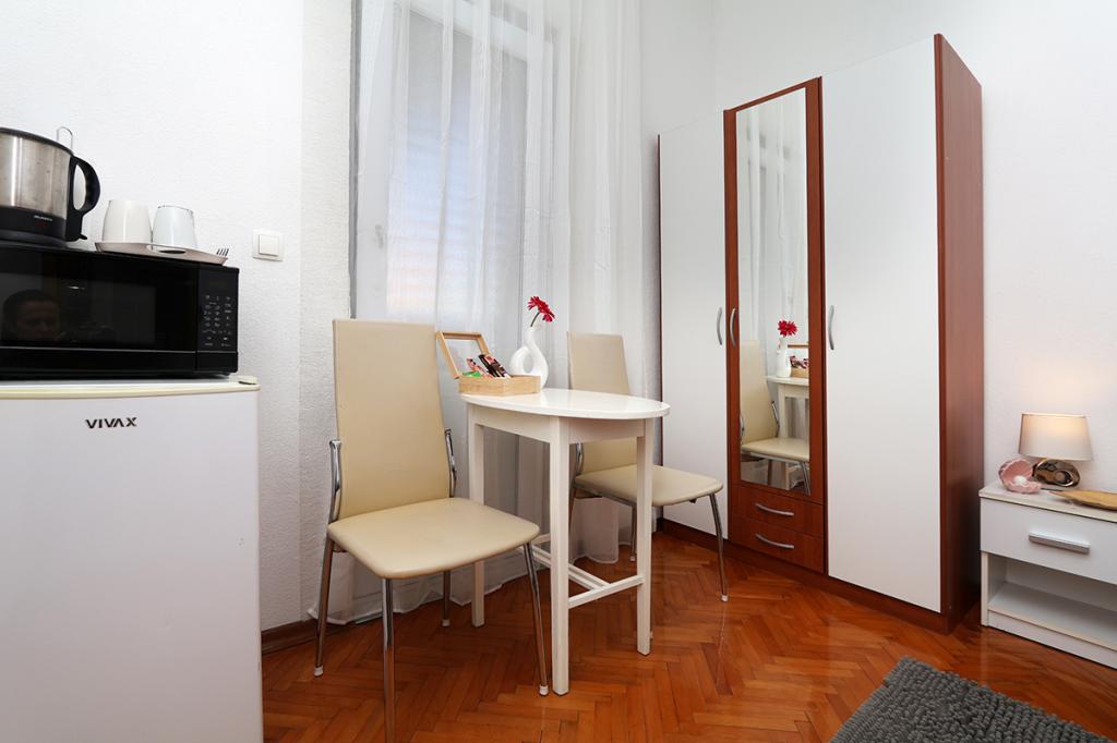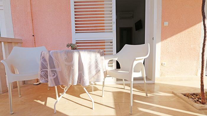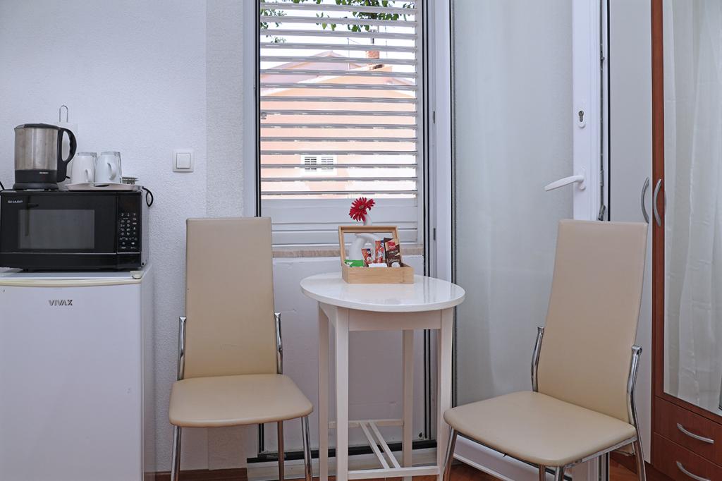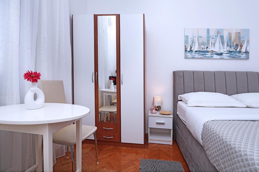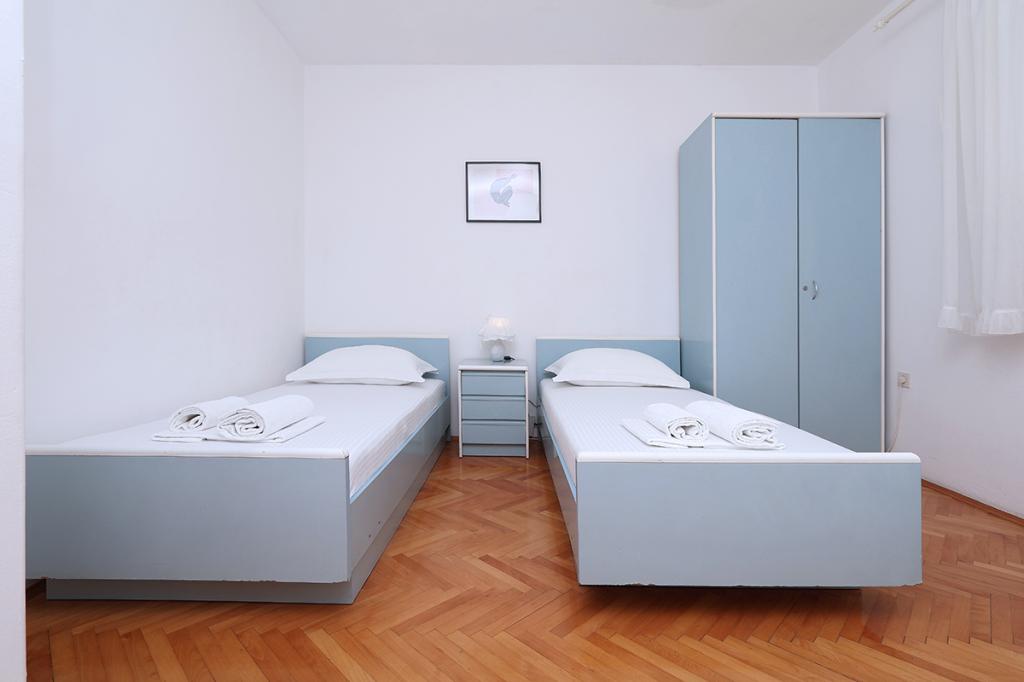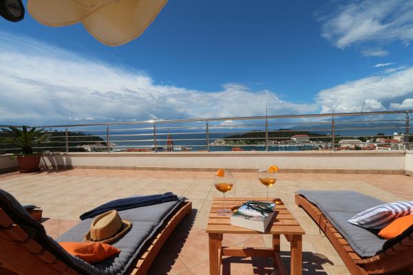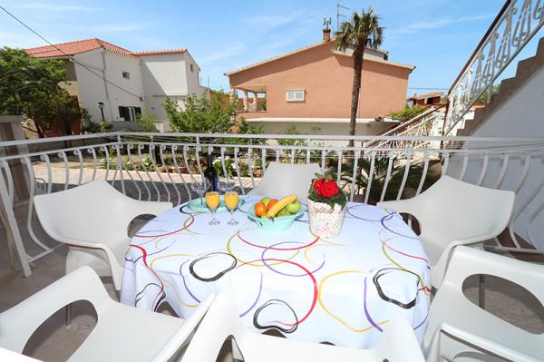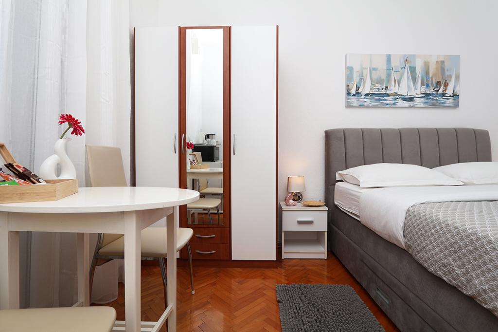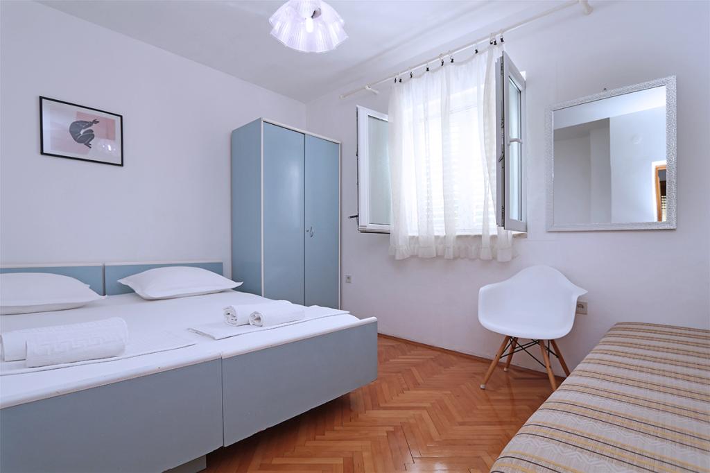 Lejlighederne og værelserne Villa Flamingo ligger i byens centrum, væk fra hovedvejen, i rolige omgivelser med en stor have og parkering. Alt er beliggende i byens centrum, lejlighederne ligger 100 m fra hovedtorvet, 300 m fra havnefronten, 500 m fra stranden. Lejlighederne ligger væk fra hovedvejen, så vi garanterer en fredelig og rolig ferie. Foran huset, i haven, har vi en stor pejs, hvor I kan tilberede grillretter og spise aftensmad i den smukke have. Balkonen har udsigt over havet og byens havn samt øerne Brač og Hvar. Alle lejligheder har aircondition, satellit-tv og WiFi. Efter aftale med gæsterne arrangerer vi transport fra lufthavnen til lejligheden. Lejlighederne har trådløs internetadgang. Øverst i huset har vi en stor terrasse med storslået udsigt over havet og byen, til brug for alle gæster. Det er muligt at arrangere morgenmad, frokost og aftensmad på en nærliggende restaurant.