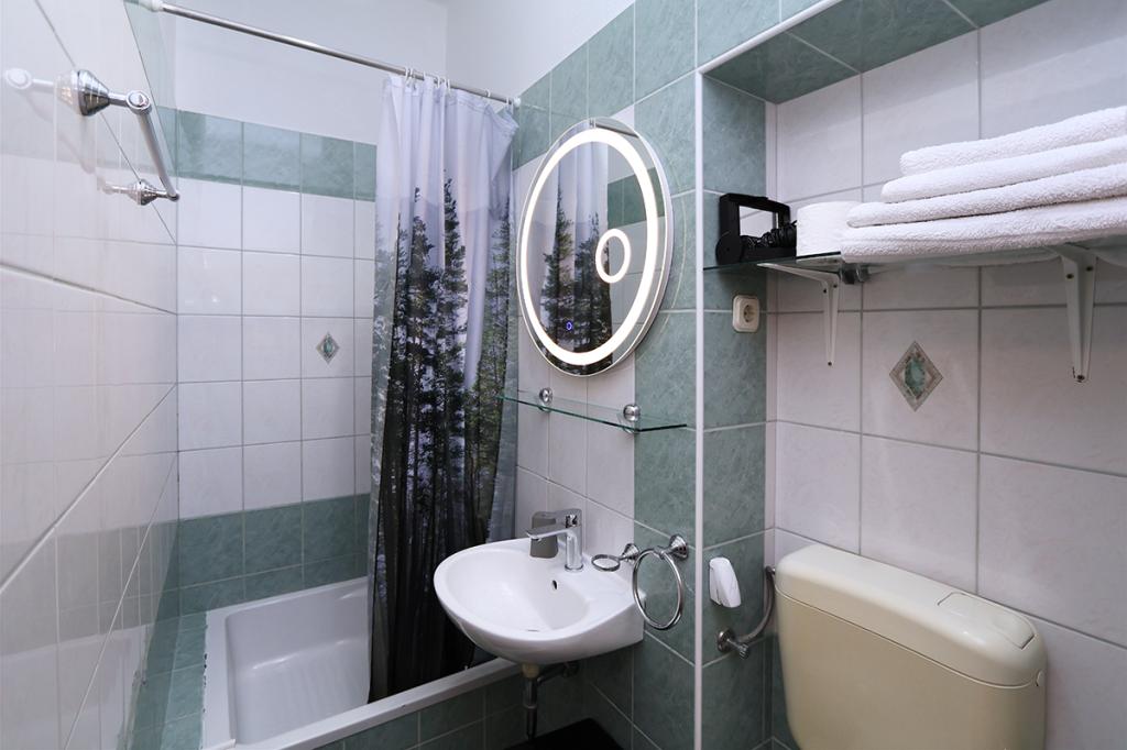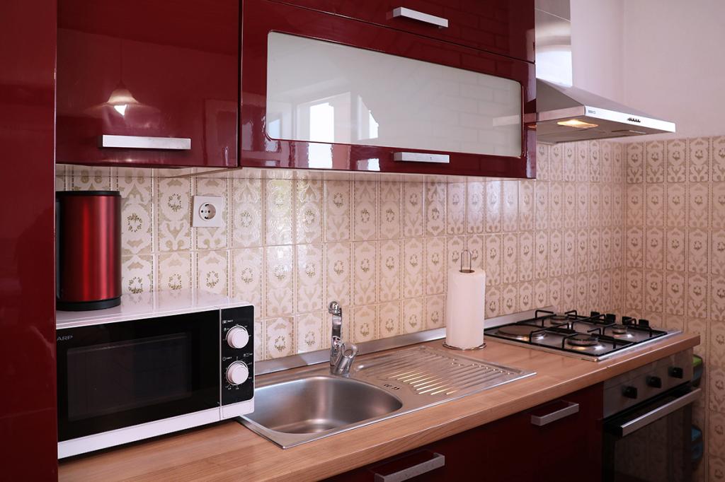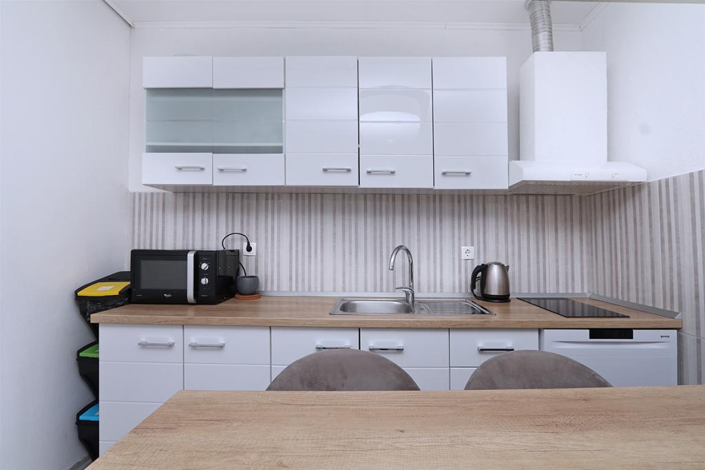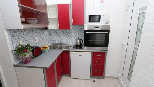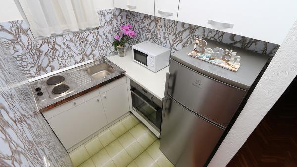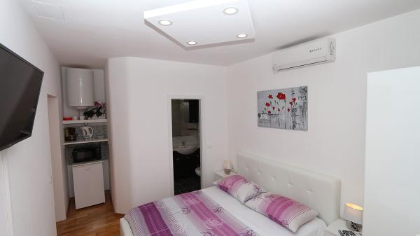 Indkvarteringen var meget behagelig for vores familie (2 voksne og en 16 -årig søn), stor nok og veludstyret. Køkkenet er moderne og indeholder alt hvad du har brug for (komfur, mikroovn, kedel, vask og tallerkener), det fungerer direkte som en stue med et stort værelse og samtidig et soveområde til vores voksne. Soveværelset stilles til rådighed som et separat værelse - ergonomisk og kompakt: med en dobbeltseng og et klædeskab. Soveværelset er på den skyggefulde side af lejligheden og tilbyder et køligt rum. Badeværelset er stort og har et stort badekar med bruser. Der er en fuldt funktionel vaskemaskine der, og der er endda en hårtørrer. Desværre bemærkede vi kun en fejl: klimaanlægget fungerer ikke korrekt. Dette er placeret på gangen og skal afkøle hele lejligheden, bare ventiler. Lejligheden har sin egen terrasse, som er smuk. I boligkomplekset på øverste niveau er der en stor terrasse til alle gæster, som byder på en fantastisk udsigt over havet, den gamle bydel og byen som helhed. Bare meget praktisk til at beundre solnedgange. Vi er på ferie i Makarska for 5. gang og kan derfor sammenligne med tidligere indkvarteringer: det var en TOP lejlighed med meget venlige værter og en smuk central beliggenhed i hjertet af den gamle by.