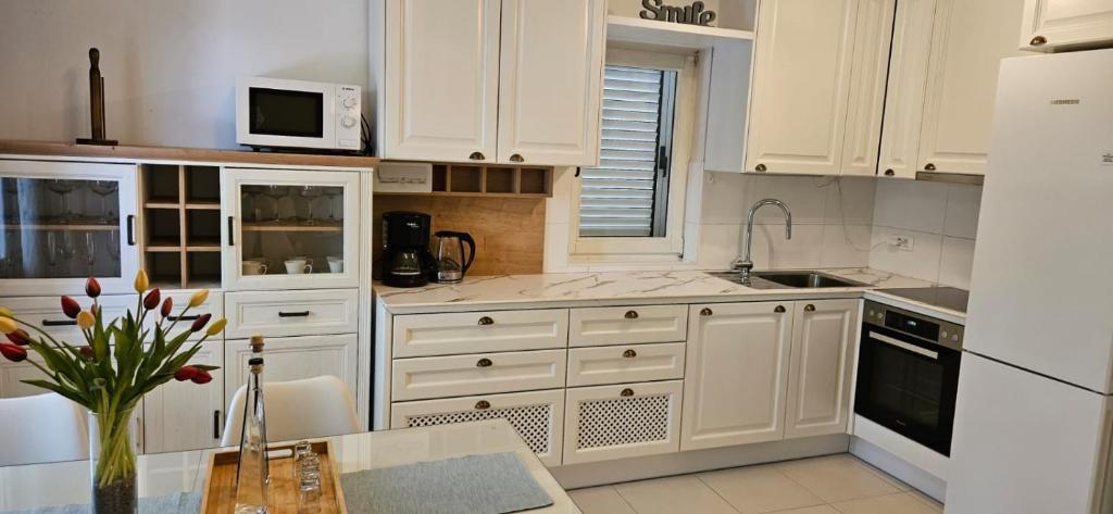 Villa Branka er et charmerende hus med fem separate boligenheder, ideelt til en afslappende ferie i naturen. Omgivet af grønne områder og beliggende i en unik beliggenhed med udsigt over Adriaterhavet på den ene side og det storslåede Biokovo-bjerg på den anden. Det ligger i en usædvanlig rolig del af Makarska Riviera, på en blid bakke, væk fra turistmængder og støj - perfekt til fuldstændig afslapning og privatliv. Samtidig ligger villaen kun 2 minutters kørsel fra stranden og 5 minutters kørsel fra centrum af Makarska, en malerisk turistby med et rigt udbud af faciliteter, restauranter og smukke strande. Den perfekte kombination af fred, natur og nærhed til alle vigtige faciliteter.