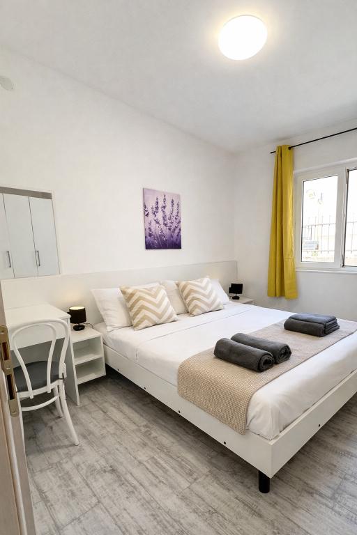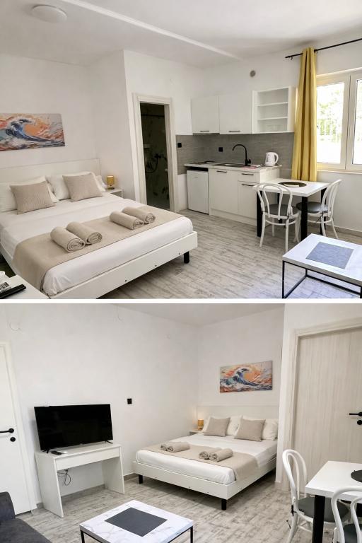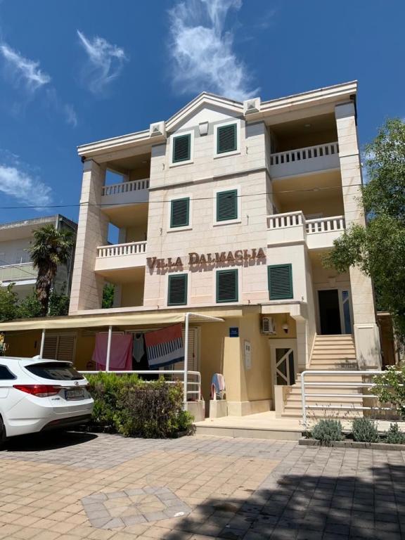 Villa Dalmacija ligger i Makarska, kun 2 minutters gang fra stranden, med en gratis parkeringsplads. Alle studios og lejligheder har aircondition, et lille køkken med komfur og basisudstyr, et lille køleskab, eget badeværelse og satellit-tv. Studie 2+1: et studie med en fransk seng og en sovesofa til 1 person, balkon (studiet på første sal har ikke balkon). Studio 3+1: et soveværelse med en fransk seng og en udtrækssofa til 1 til 2 personer, lukket hems, høj stueetage. Lejlighed 2+2: soveværelse med dobbeltseng og stue med sovesofa til 2 personer, terrasse. Lejlighederne ligger i øverste stueetage, på 2. eller 3. sal. Wi-Fi og parkering er gratis.