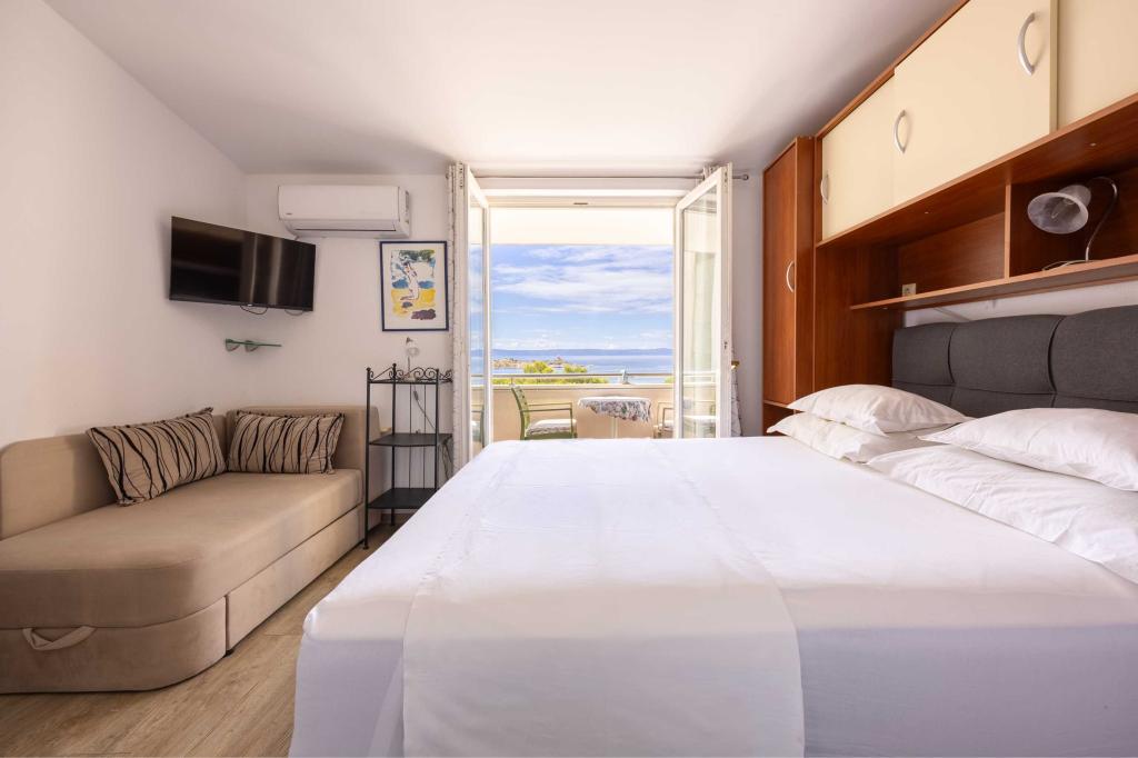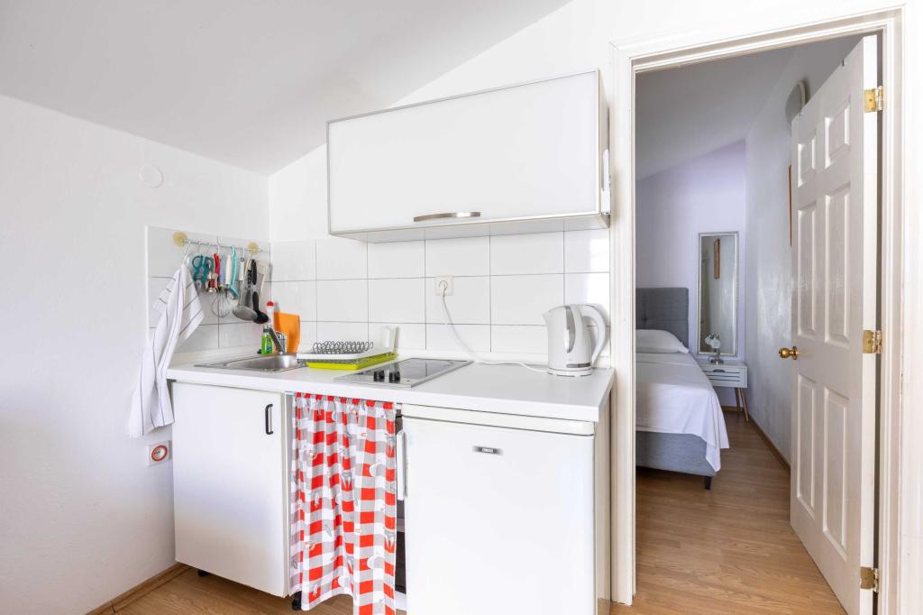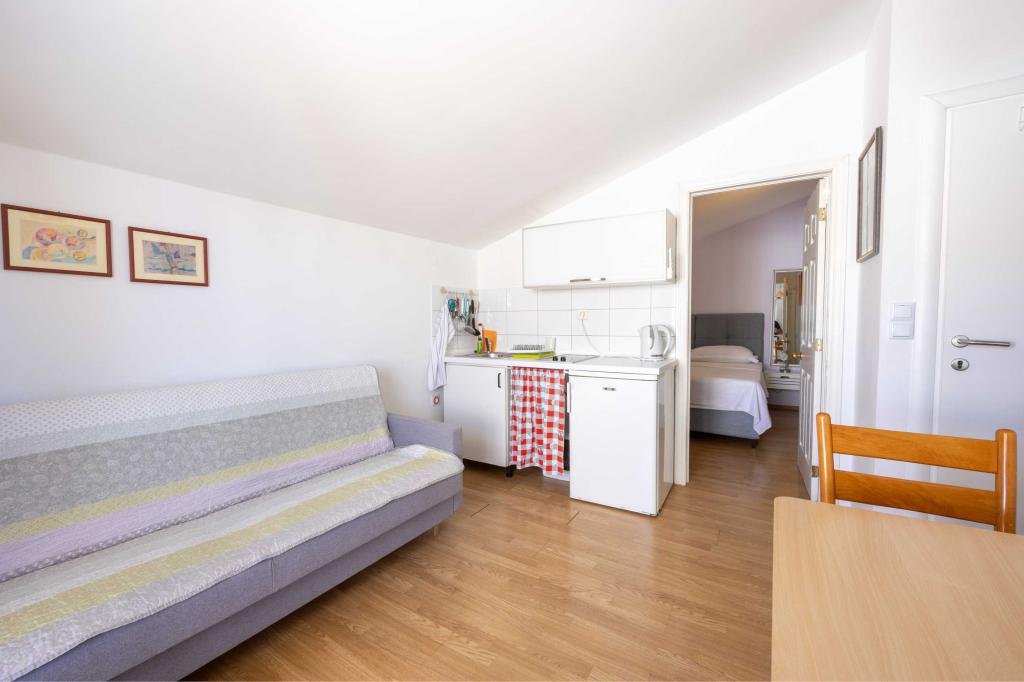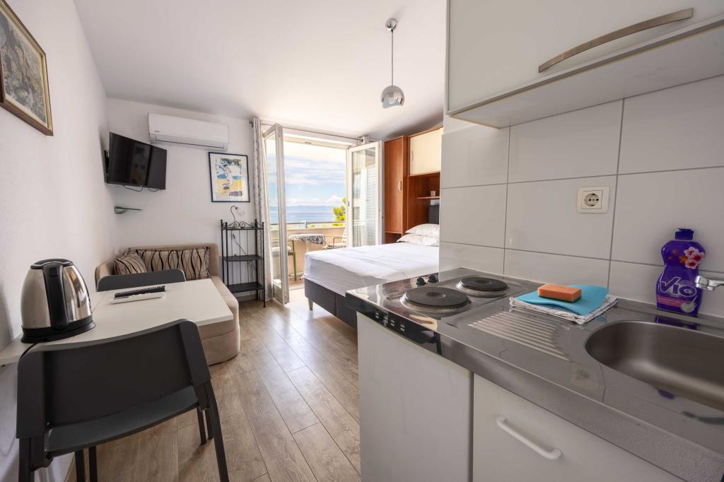 Tæt på Makarska strand - 70 meter fra hovedstranden (ca. 1 minuts gang) Gratis parkering Gratis wi-fi Gratis brug af aircondition Vores lejligheder: V1 - lejlighed til 5 personer, stueetage, en stor seng og en enkeltseng på værelset og en sovesofa i stuen V2 - studiolejlighed til 3 personer, tredje sal, en stor seng og en enkeltseng, balkon med havudsigt V3 - studiolejlighed til 3 personer, tredje sal, en stor seng og en enkeltseng, balkon med havudsigt V4 - lejlighed til 4 personer, tredje sal, en stor seng på værelset og en sovesofa i stuen, balkon med havudsigt V5 - lejlighed til 5 personer, tredje sal, en stor seng og en lille sovesofa på værelset og en stor sovesofa i stuen, balkon med havudsigt, køkken, badeværelse/toilet Alle lejligheder har eget køkken og badeværelse/toilet. For priser og andre forespørgsler kan du kontakte os.