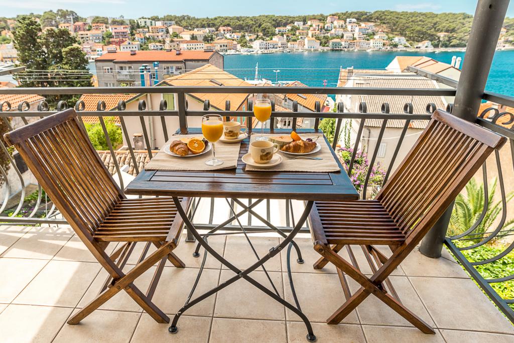 Læs mere IndkvarteringsenhederHver lejlighed er registreret til 4 personer. Der er ingen ekstra senge eller personer. Ved booking betales et depositum på 20% af det samlede beløb, minimum €100. Ved udeblivelse eller afbestilling af reservationen refunderes depositummet ikke. Resten af beløbet for den reserverede indkvartering betales på ankomstdagen til indkvarteringen til udlejers bankkonto eller kontant (afhængigt af gæstens ønsker). Ved tidlig afrejse fra den reserverede periode er der ingen refusion, hele beløbet for den reserverede periode betales. Slutrengøring engangsbeløb 35 euro. +50% tillæg for én nat +30% tillæg for ophold op til 3 dage Ankomst fra kl. 15.00, afrejse senest kl. 10.00 (tidligere ankomst mulig, hvis lejligheden er klar til den næste gæst). Mulighed for at efterlade bagage efter at have forladt indkvarteringen, hvis gæsten har en senere afrejse fra øen, f.eks. med båd, katamaran, bus osv. Brug af enhver form for grill er strengt forbudt af sikkerhedsmæssige årsager. Barneseng og højstol tilbydes gratis efter anmodning.
