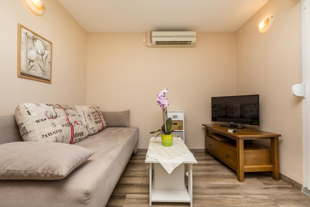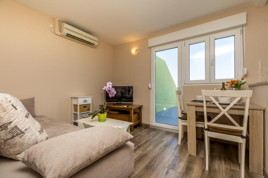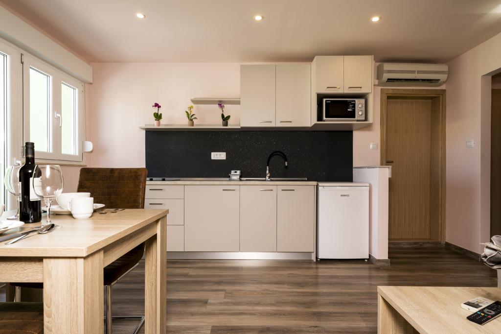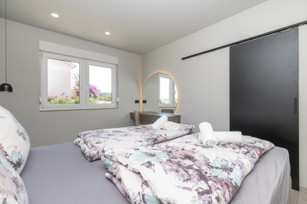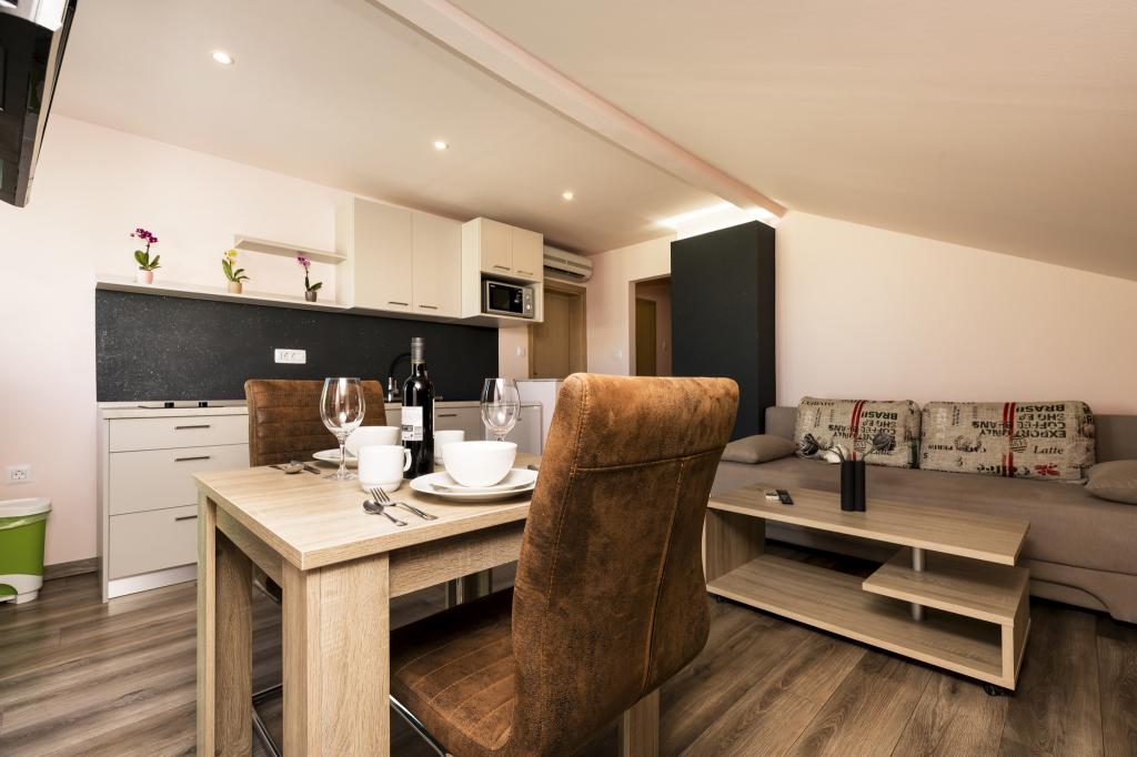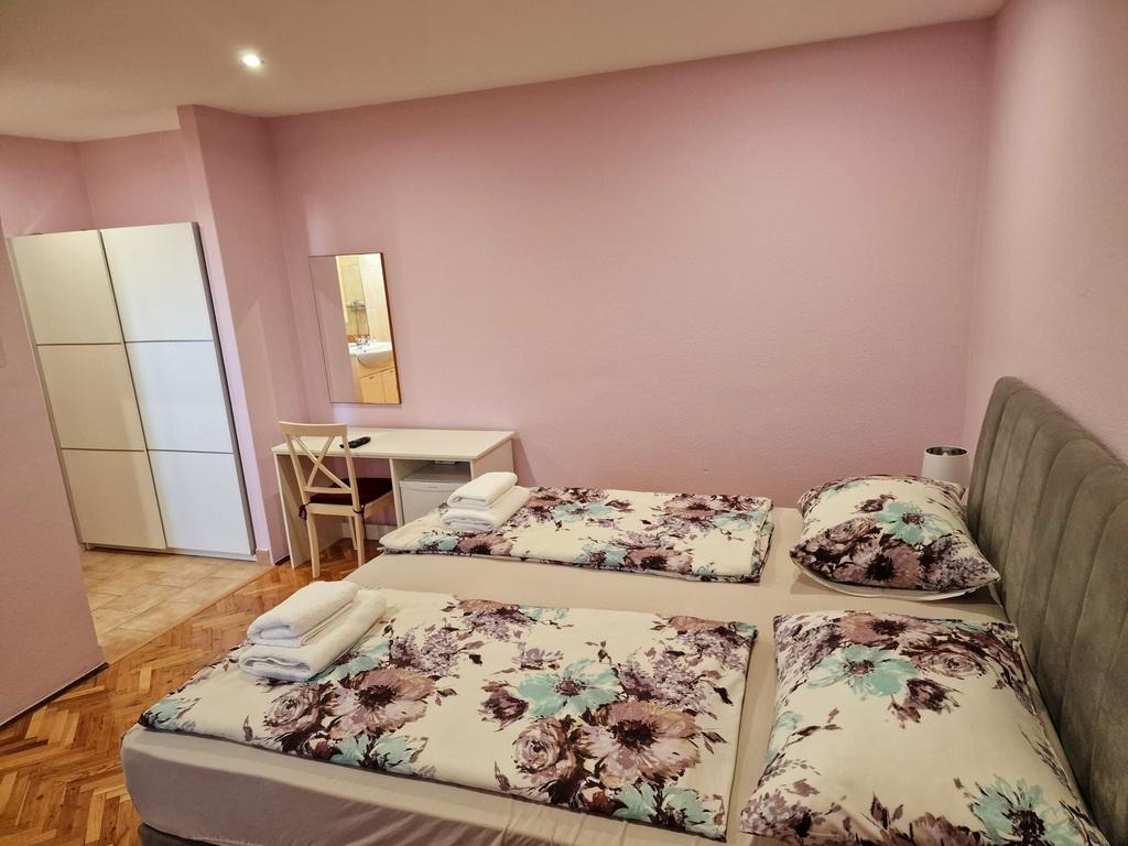 Værten Adı modtog os meget venligt og tog sig godt af os. Værelset, vi havde, var enkelt, men godt udstyret med alt, hvad vi havde brug for. Pænt og rent. Lejlighederne ligger lige ud til hovedvejen og er dermed let tilgængelige i bil, der er ingen "trængsel" i de smalle gader, plus parkeringspladsen er rummelig. På trods af at lejlighederne ligger tæt på vejen, er der stadig stille, kun fårekyllinger kan høres. Morgenmaden på den smukke terrasse er ekstremt rig og varieret. Hovedtorvet kan nås til fods gennem en række trapper, som tager 5-6 minutter at nå Čikat-bugten med dens smukt anlagte strand. Mange tak endnu en gang for din gæstfrihed. Vi nød det virkelig.