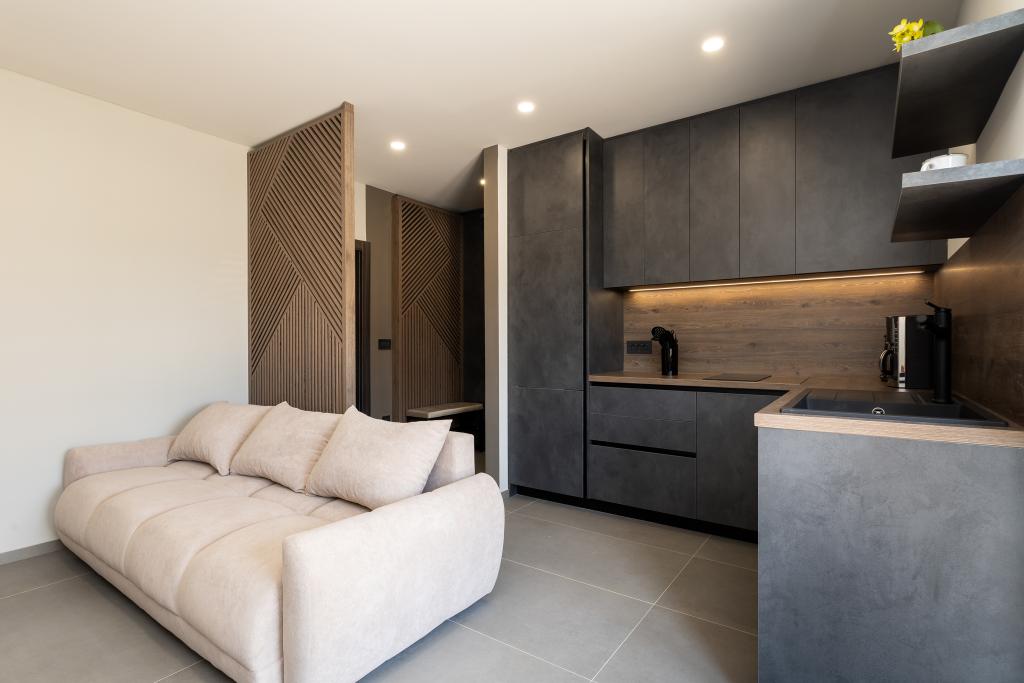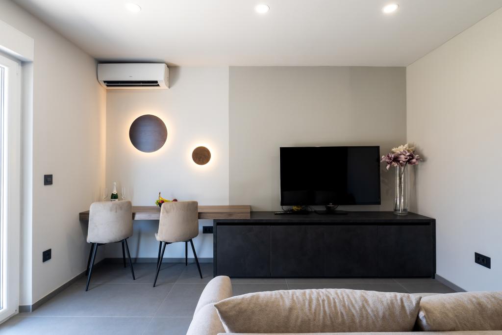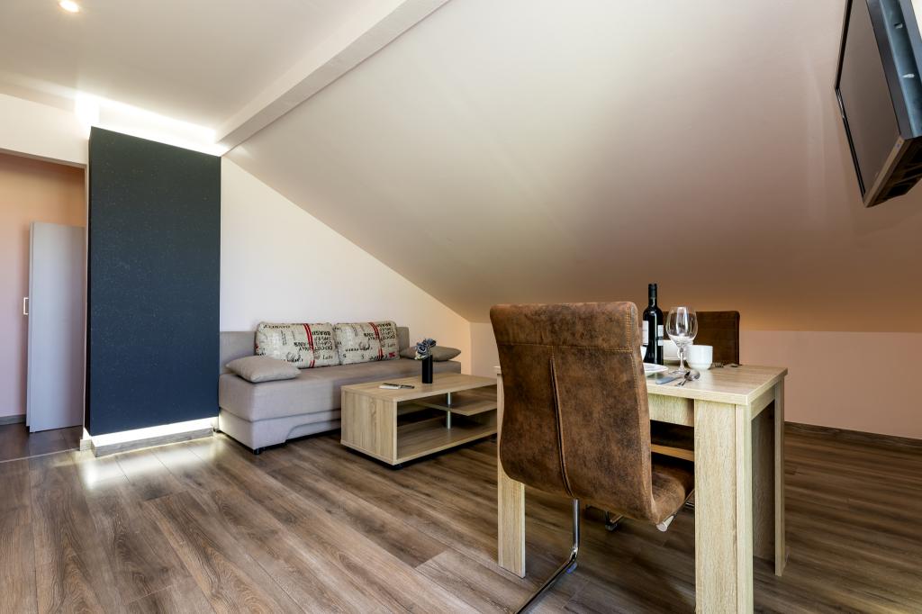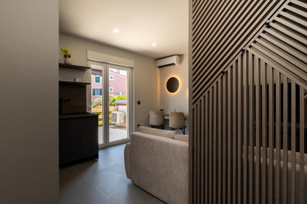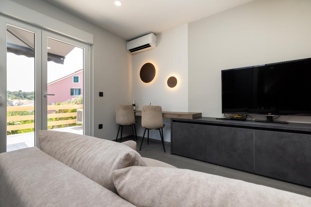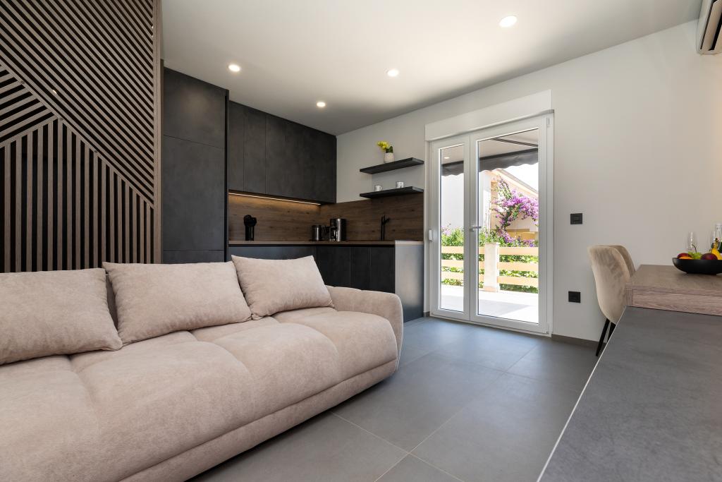 Værten Adı modtog os meget venligt og tog sig godt af os. Værelset, vi havde, var enkelt, men godt udstyret med alt, hvad vi havde brug for. Pænt og rent. Lejlighederne ligger lige ud til hovedvejen og er dermed let tilgængelige i bil, der er ingen "trængsel" i de smalle gader, plus parkeringspladsen er rummelig. På trods af at lejlighederne ligger tæt på vejen, er der stadig stille, kun fårekyllinger kan høres. Morgenmaden på den smukke terrasse er ekstremt rig og varieret. Hovedtorvet kan nås til fods gennem en række trapper, som tager 5-6 minutter at nå Čikat-bugten med dens smukt anlagte strand. Mange tak endnu en gang for din gæstfrihed. Vi nød det virkelig.