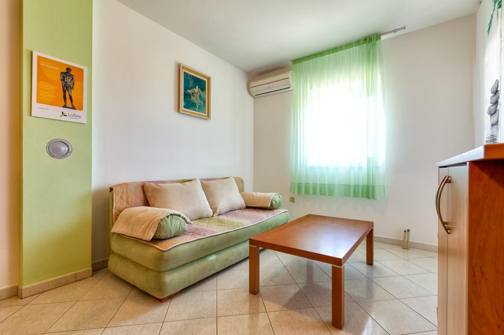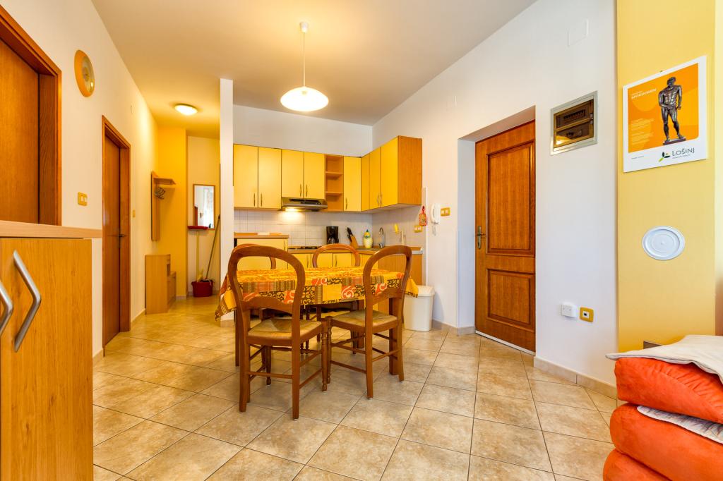 Der er 3 fuldt udstyrede lejligheder til rådighed. Lejlighed 1 til fire personer ligger i stueetagen, lejlighed 2, også til fire personer, ligger på anden sal, samt lejlighed 3 til to personer. Lejlighedens pris inkluderer yderligere fordele uden beregning: et barn under 3 år er gratis, grill i haven, brug af vaskemaskinen i det fælles vaskerum i stueetagen, hvor der er strygebræt og strygejern til rådighed. På afrejsedagen fra lejligheden tilbyder vi bagageopbevaring, hvis gæsten har en senere afrejse fra øen, samt transport til busstationen og færgehavnen i Mali Lošinj. Der er parkering til din bil foran huset, og i haven er der plads til cykler, motorcykler ... Yderligere tillæg; slutrengøring engangs 40 EUR og kæledyr efter anmodning mod et ekstra gebyr. Vi vil med glæde professionelt og hurtigt imødekomme eventuelle yderligere ønsker, anmodninger og behov på dine vegne før din ankomst og under dit ophold.
