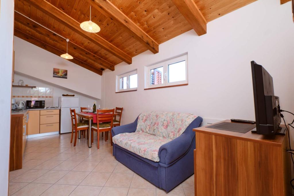Nyd din familieferie! Apartments Prica tilbyder 3 lejligheder (1/4 & 1/4 & 1/4 +1) med en smuk udsigt, mulighed for at nyde terrassen og en sikker parkeringsplads. Book nu! Moderne og komfortabelt interiør, perfekt til et roligt familieophold. Rummelige soveværelser udstyret med kvalitetssenge og linned, køkken med køleskab, komfur, mikrobølgeovn, kaffemaskine og andre fornødenheder gør det nemt at tilberede måltider. Spisestue og opholdsstue med aircondition skaber en behagelig atmosfære, og der er gratis WiFi i alle lejligheder. Badeværelserne er moderne indrettede med basale toiletartikler.