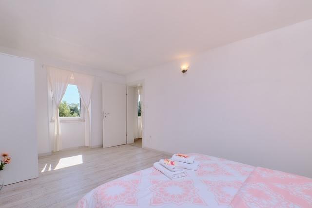 Beliggende i Ćunsko tilbyder dette charmerende lille sted den perfekte balance mellem natur, stilhed og komfort. Her går tiden langsommere, og hverdagens stress forsvinder med naturens lyde og frisk landluft. Ideelt for par, familier eller alle, der søger fred og privatliv. Nyd din morgenkaffe med udsigt over det grønne og aftener under stjernerne - dit lille paradis på landet venter på dig. Landstedet er fordelt på 3 etager: stueetage, første sal og loftsrum, ideelt til 6 personer, består af to soveværelser med en dobbeltseng og et soveværelse med to enkeltsenge, et fuldt udstyret køkken og stue, tre badeværelser med bruser, en rummelig terrasse med grill og havemøbler. For en komplet atmosfære på din ferie er huset udstyret med vaskemaskine, opvaskemaskine, pengeskab, 3 airconditionanlæg, WIFI og privat parkering til 3 biler.