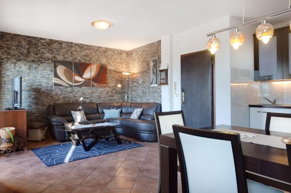 Læs mere IndkvarteringsenhederReservationen af lejligheden bekræftes ved en forudbetaling på 20% af det samlede beløb til ejerens konto, og det resterende beløb betales til lejer ved ankomst til lejligheden. I tilfælde af annullering af reservationen tilbagebetales forudbetalingen ikke. Det ideelle tidspunkt for gæsterne at ankomme er omkring kl. 14.00 - 16.00, og afgang fra lejligheden om morgenen senest kl. 10.00. Op til 7 personer kan bo i lejligheden. Hvis der bor mere end 5 personer i lejligheden, betales et ekstra beløb på 10 euro pr. person.