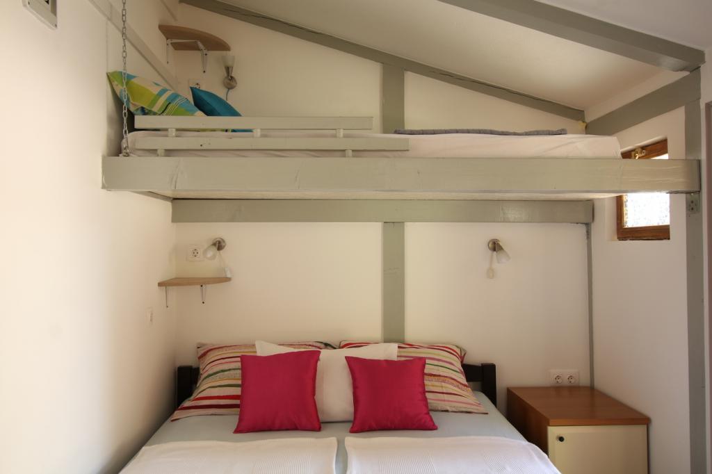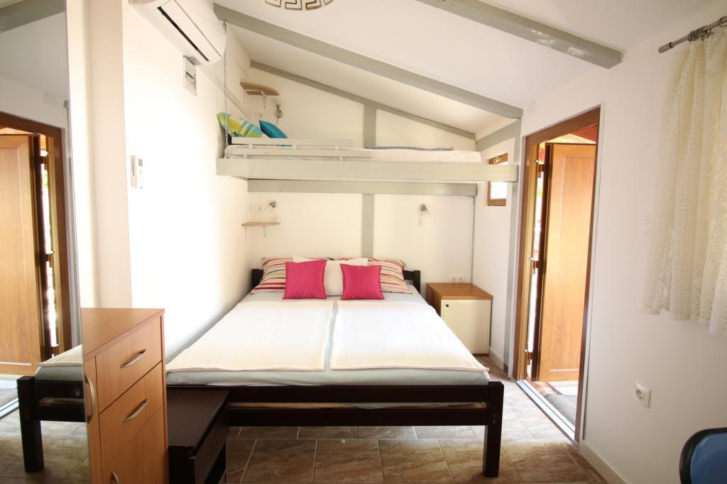I en rolig del af Sveti Vido, for enden af gårdhaven i et privat dobbelthus med lejligheder, ligger et lille træstudiehus til 2 personer + et barn op til 50 kg. Indenfor er der et lille køkken og et lille badeværelse, et tv. Aircondition, turistskat, registrering, slutrengøring, sengelinned, håndklæder, køkkenrulle, vaskemidler, svampe, toiletpapir og sæbe er inkluderet i prisen, og parkering og Wi-Fi er gratis. I gården er der et stort bord med bænke og en grill. Parkering er i gården foran huset. Det er 15 minutter til Malinska centrum og 20 minutters gang til stranden. Der er mange smukke strande, strandpromenader og cykelstier i området. For dem, der leder efter sjov, er der også natklubben Diamant i nærheden (ca. 2 km). YDERLIGERE OMKOSTNINGER: - Kæledyr = €5/dag - 1 hund - Vaskeri = €3, - opvarmning fra €4-6/dag - 1 nat er 30% DYRERE - Fra 10.7. - Fra 1. til 25. august er minimum 7 nætter muligt, undtagen for at udfylde huller mellem reservationer. - Fra 1. til 9. juli og fra 25. til 31. august kan der bookes minimum 5 nætter.