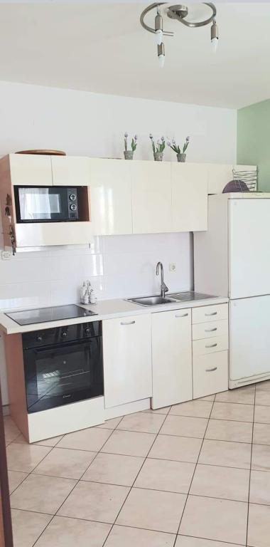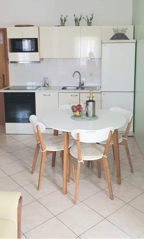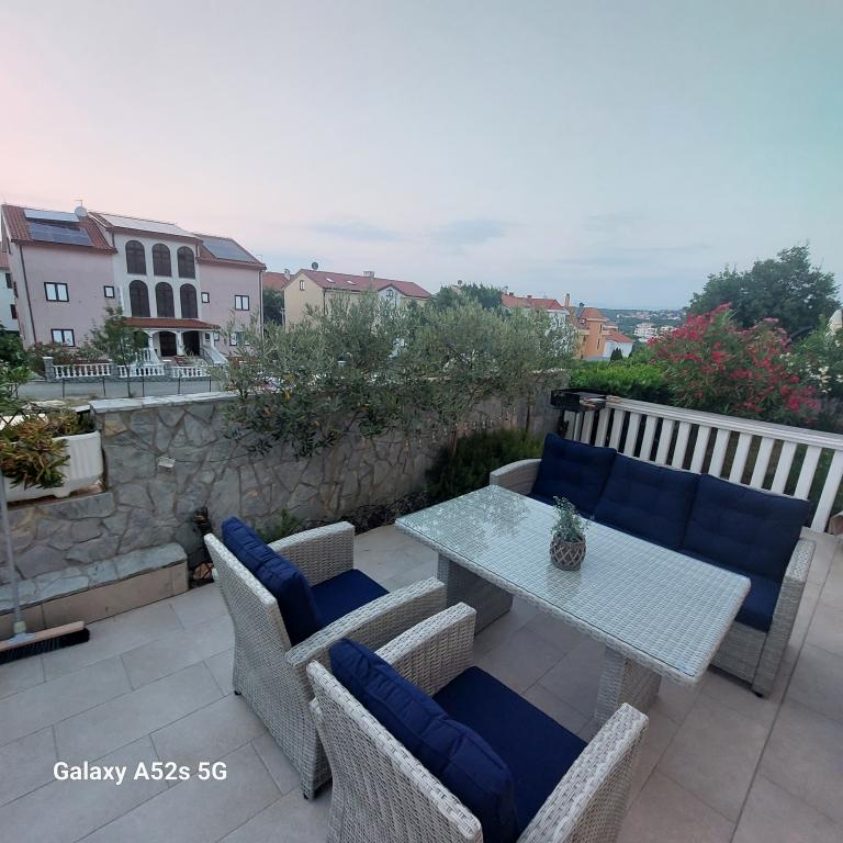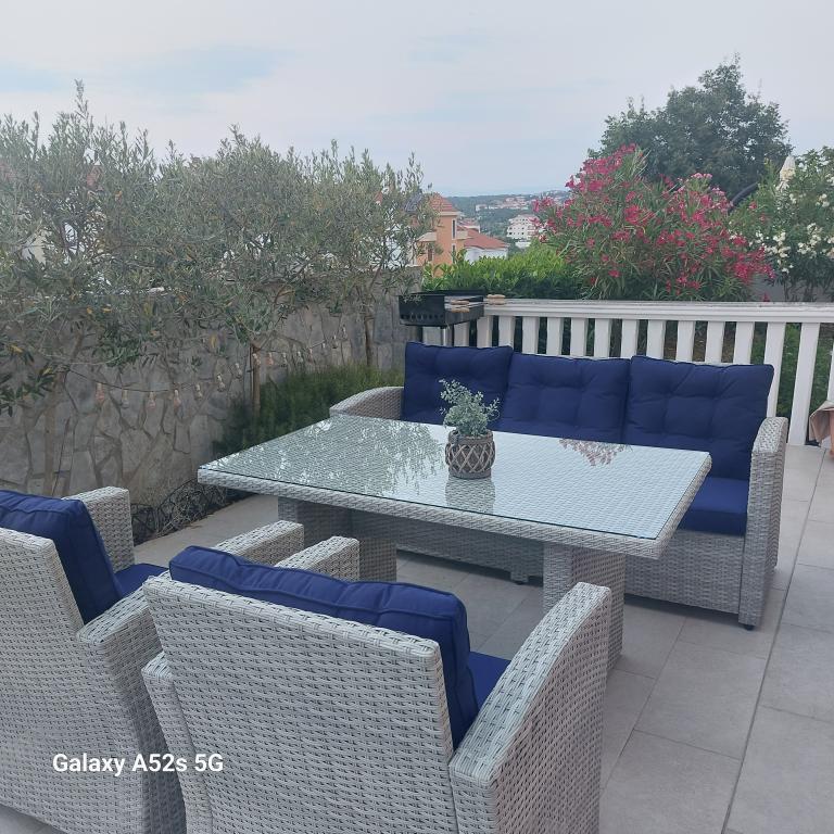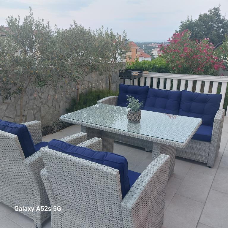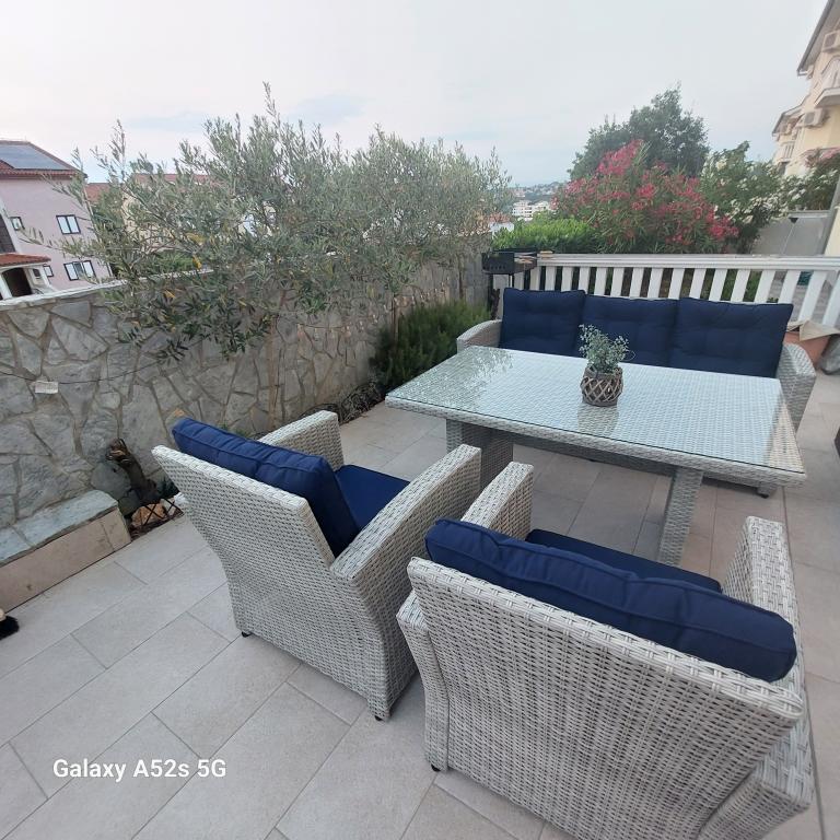 Lejligheden er beliggende i den smukke lille by Malinska på øen Krk. Det ligger i stueetagen. Den består af et soveværelse med en stor dobbeltseng (sengelinned inkluderet, skiftes hver 7. dag) og en stue med en udtrækssofa til to. Rummet er åbent, så spisestuen og stuen er forbundet. Udstyret med to fjernsyn - det ene i stuen med en mini-linje og det andet i soveværelset. Lejligheden har et badeværelse med bruser (3 håndklæder pr. Person), vaskemaskine og køkken med mikroovn, komfur, kaffemaskine og stort køleskab med fryser på 50 liter og opvaskemaskine. Parkering foran lejligheden. Den mest værdifulde del af lejligheden er en stor terrasse (35m2) med komfortable stole og liggestole, hvor du kan nyde eftermiddagshvilen. Når du går ud på terrassen, skal du gå gennem et specielt hjørne med et bord og to stole (loggia), hvis du vil drikke kaffe med en åben udsigt over terrassen og en delvis havudsigt, skjult for solen.