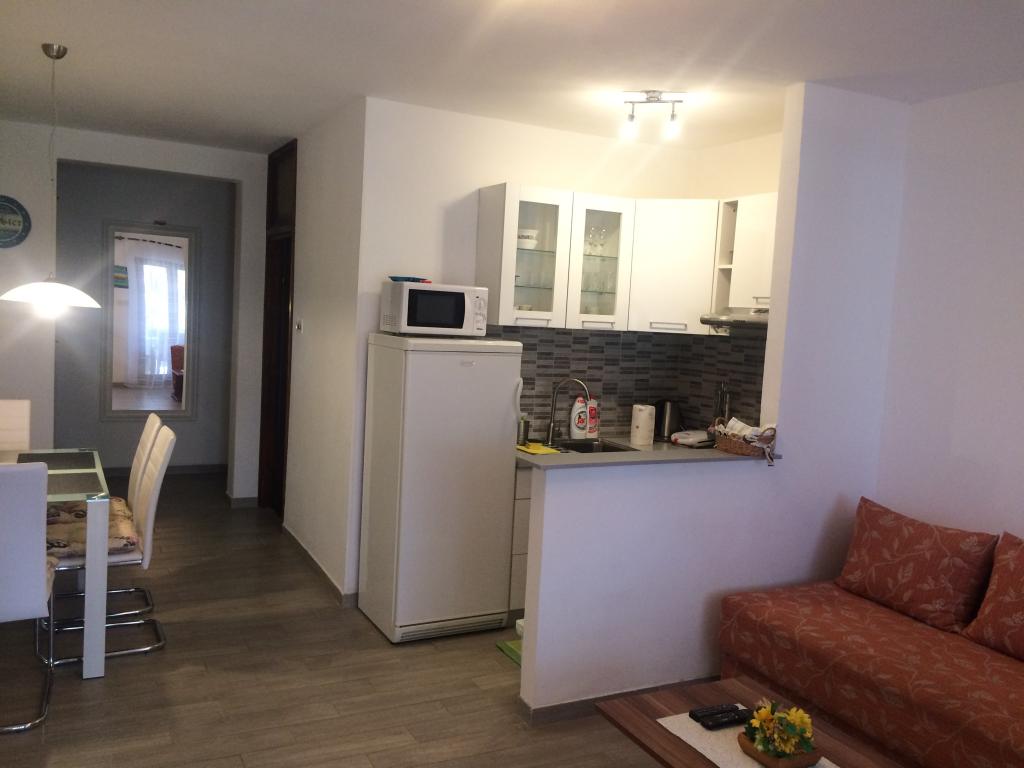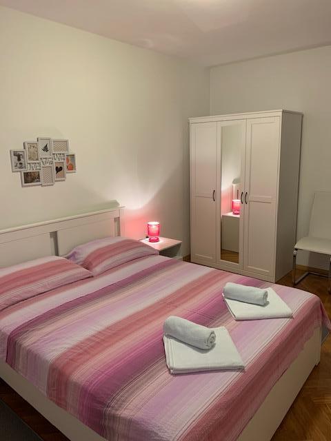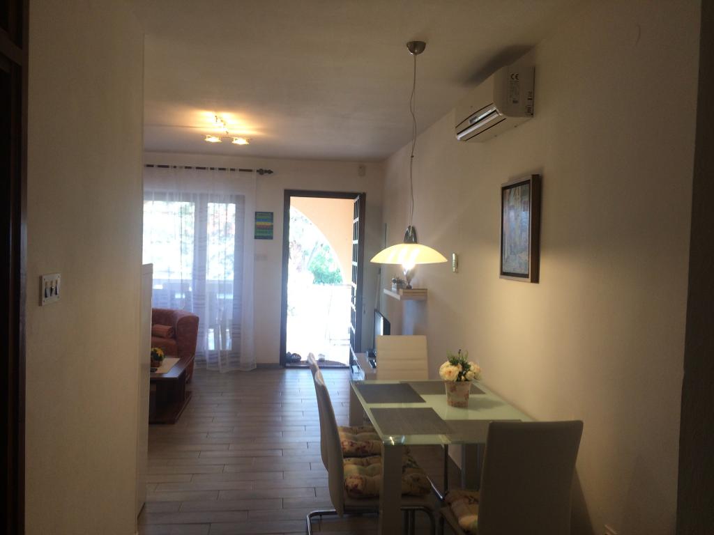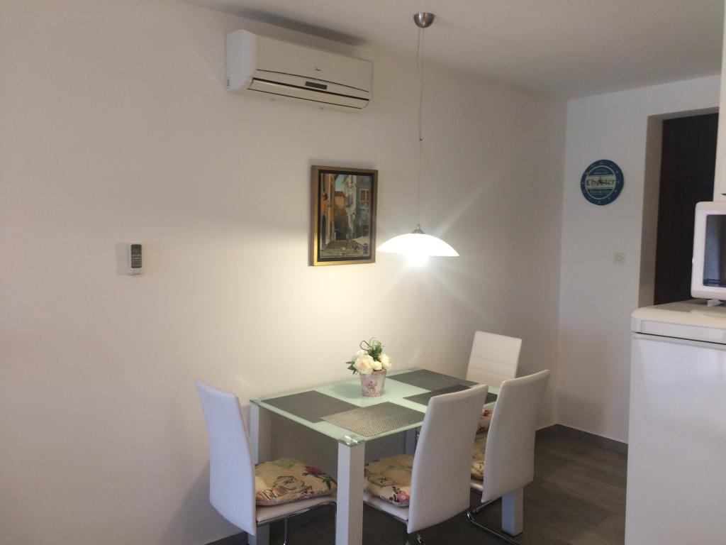 Moderne, fuldt møblerede lejligheder i et familiehus i en meget rolig del af Malinska. Huset ligger nær byens centrum, kun 5 minutter fra byens marked og centrum. Langs kysten er der arrangerede badeområder, sten-, sand- og betonstrande, der er velegnede til børn og voksne. Afslapningsbugterne langs Paradise Path giver også en særlig følelse af en kombination af en skovklædt kyst og klart hav. Hver lejlighed har soveværelser, en stue med køkken, et badeværelse med toilet, en terrasse - loggia, en indhegnet parkeringsplads og en cykelgarage. I lejlighedens store have er der to griller og en pavillon. Alle lejligheder har alt nødvendigt køkkenudstyr, sengetøj, markiser, aircondition og varme. Alle lejligheder har LED-tv med Netflix-forbindelse. Alle lejligheder har internetadgang.