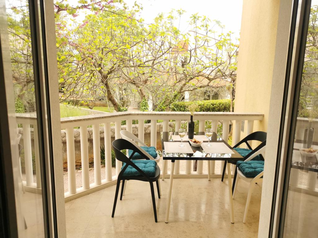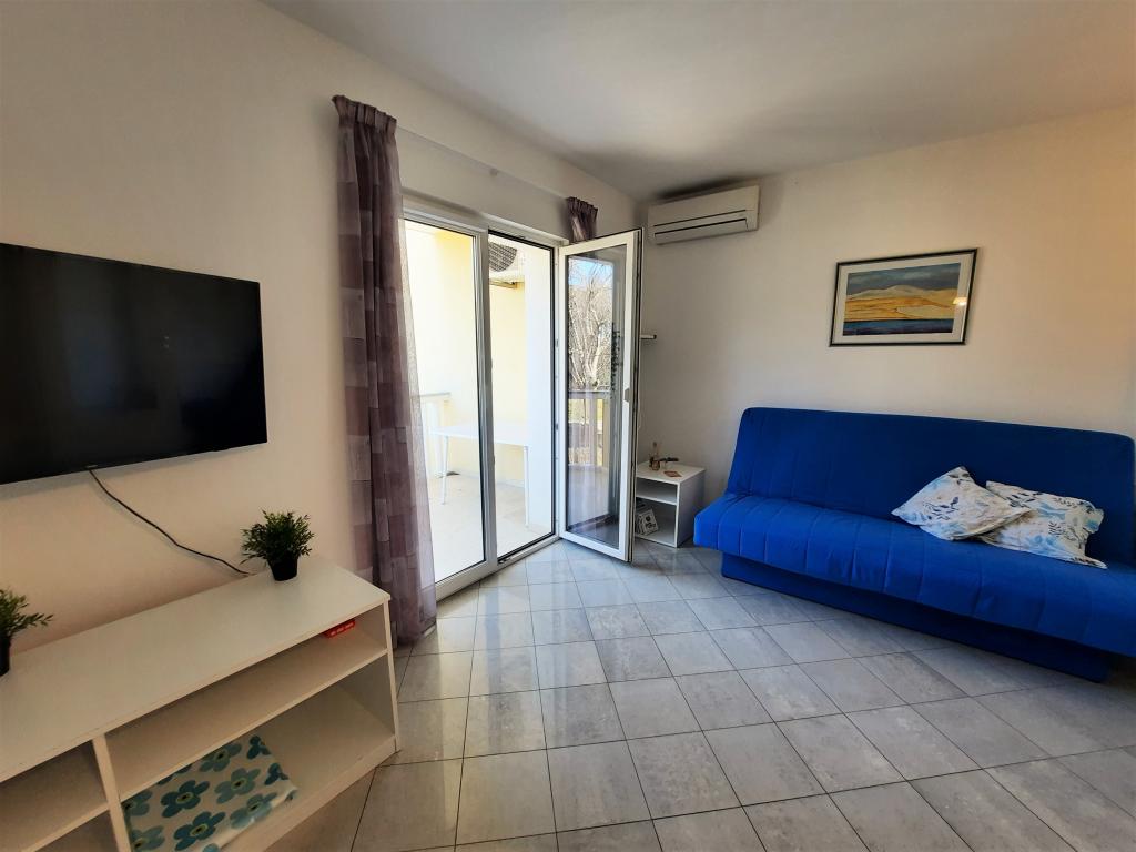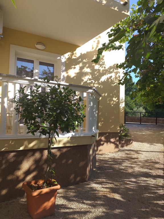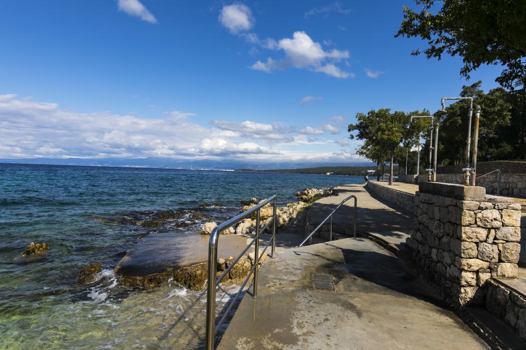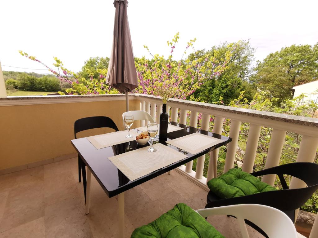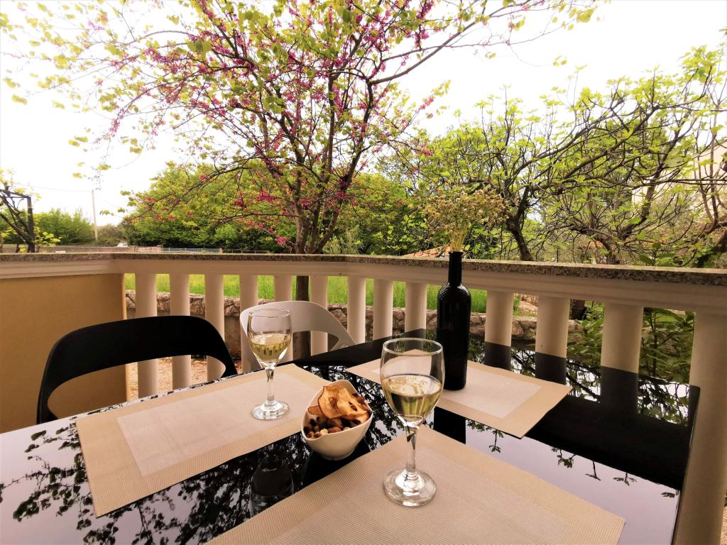 To fuldt møblerede lejligheder med separate indgange og sikrede parkeringspladser i egen lukket gårdhave og naturlig skygge. Hver lejlighed har aircondition og terrasse. Begge har WiFi, satellit-programmer, mikroovn, køleskab med fryser, brødrister, filter kaffemaskine, vandvarmer, hårtørrer, med sengelinned og håndklæder. Alle værelser har myggenet på vinduerne. Det er 10 minutters gang til den nærmeste strand og 40 minutters gang til centrum af Malinska. Lejlighederne er en del af et familiehus i en rolig del af Malinska og er omgivet af grønne områder.