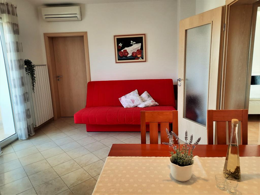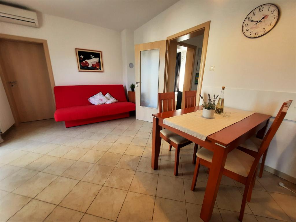 Yderst fredeligt miljø, venlig og frem for alt venlig vært fru Vesna. Lejligheden var smukt duftende, bogstaveligt talt alt lugtede i en uge, rent udstyret med alt hvad du behøver. Jeg følte, at jeg var hjemme, hun tog også imod os med en hund, hvilket mange lejere ikke ønsker. Egen parkering sikret og altid i skygge. Jeg anbefaler det helt klart fra bunden af mit hjerte.