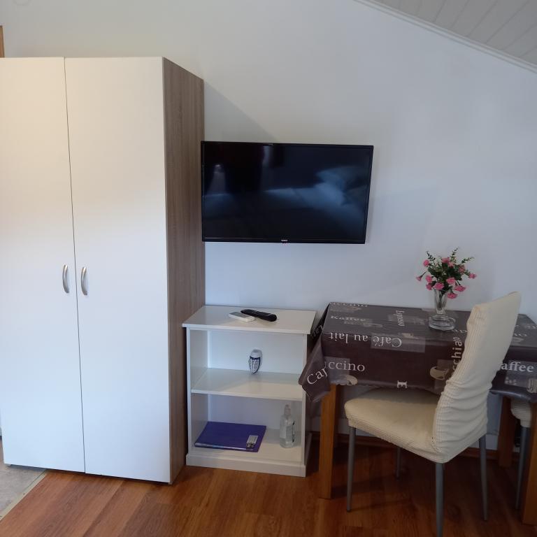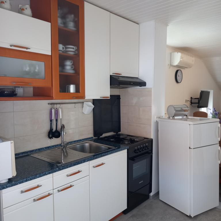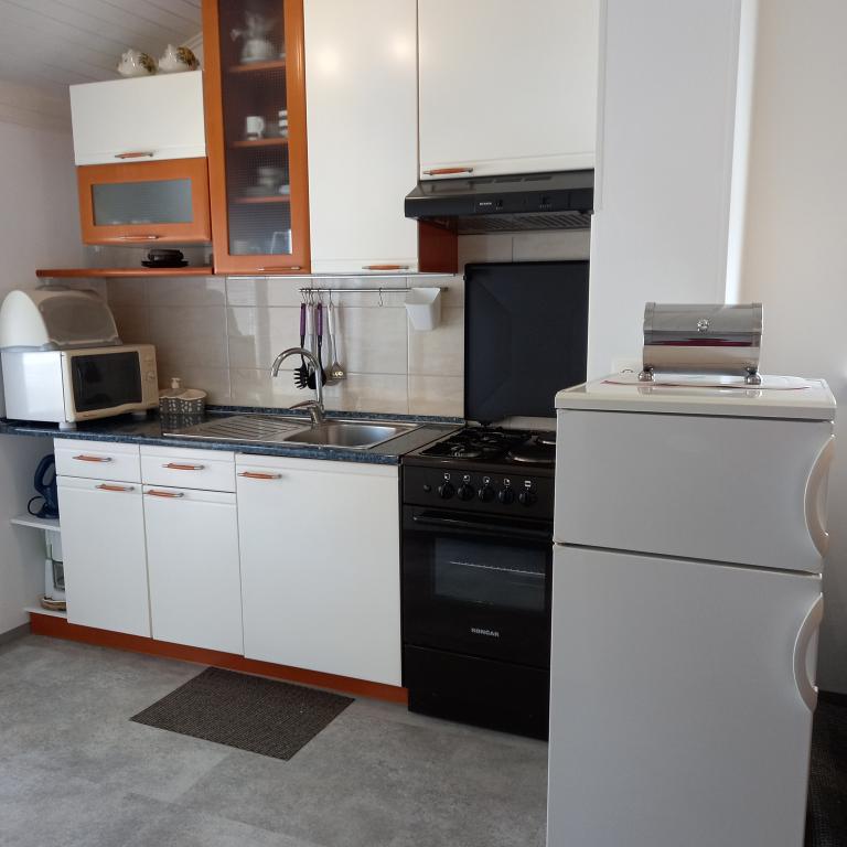 Super facilitet, pæne rene lejligheder, udstyr som beskrevet, stor have og en dejlig dame, ejer. Lejligheden ligger i et roligt område og tæt på butikker og stranden, hvilket var en bekvemmelighed for vores familie. Masser af plads til børn at lege. Jeg anbefaler dette sted at tilbringe din ferie.