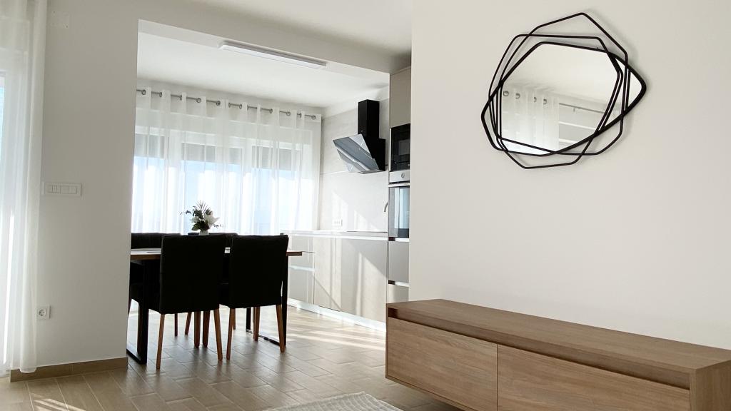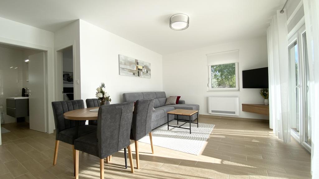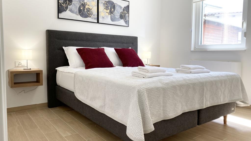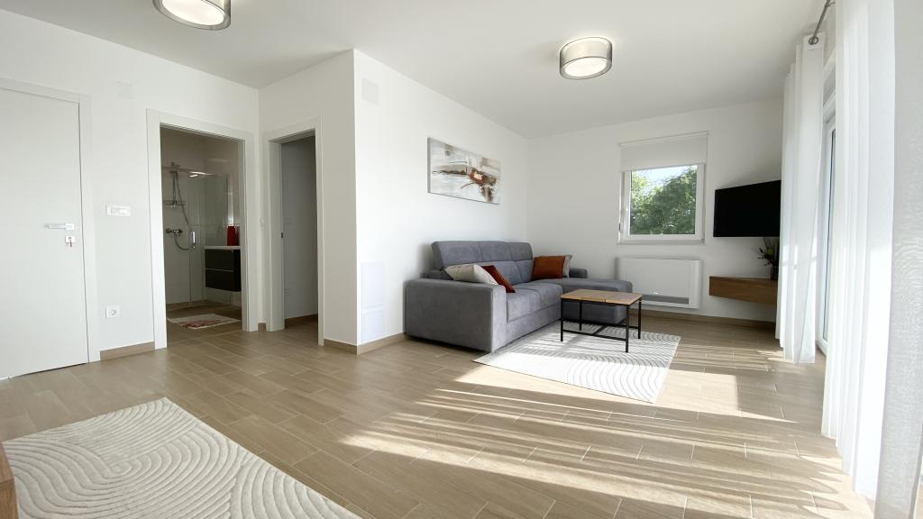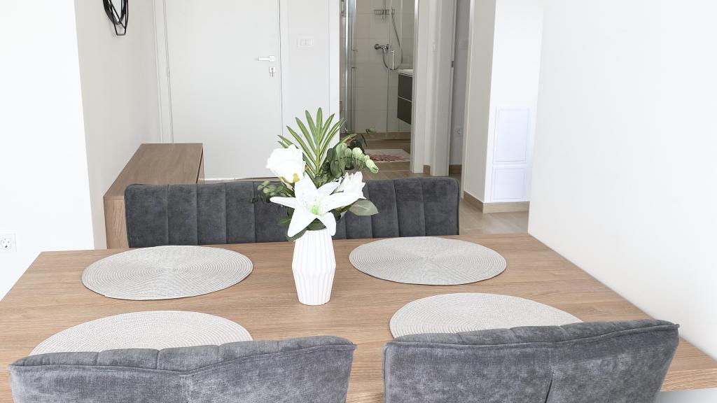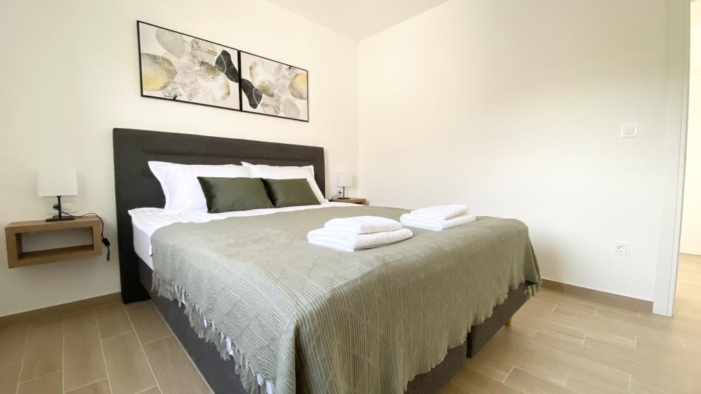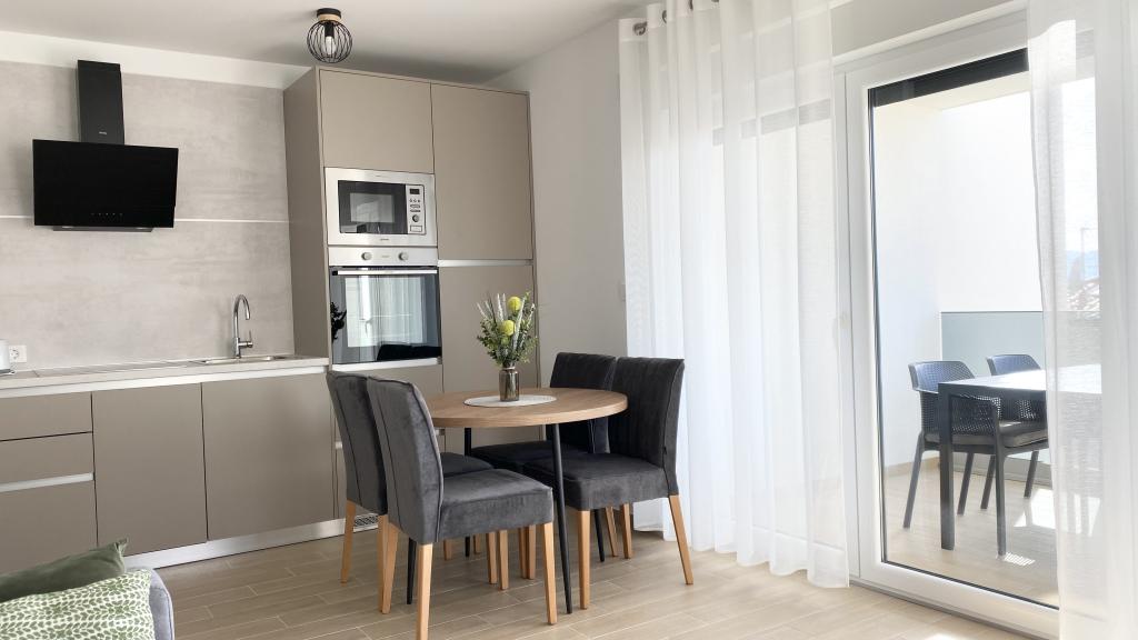 Villa Malina er et nyt lejlighedskompleks beliggende i en rolig del af landsbyen. Det har tre moderne udstyrede lejligheder på 50, 55 og 60 m2 med separate indgange og sikre parkeringspladser i gården. Hver lejlighed har en stue, soveværelse, badeværelse, køkken og en overdækket terrasse. I stuen er der en sovesofa, der kan bruges som en ekstra seng til to personer. Køkkenet er udstyret med service, køkkenrulle, ovn, mikrobølgeovn, køleskab med fryser, elkedel, elektrisk komfur, brødrister og opvaskemaskine. Yderligere udstyr inkluderer internetforbindelse, aircondition i alle værelser, støvsuger, vaskemaskine, hårtørrer og myggenet i alle vinduer. En gratis babyseng er tilgængelig efter anmodning. Ved ophold på 10 dage eller mere tilbydes 10% rabat.