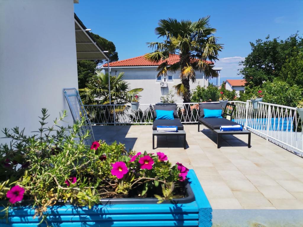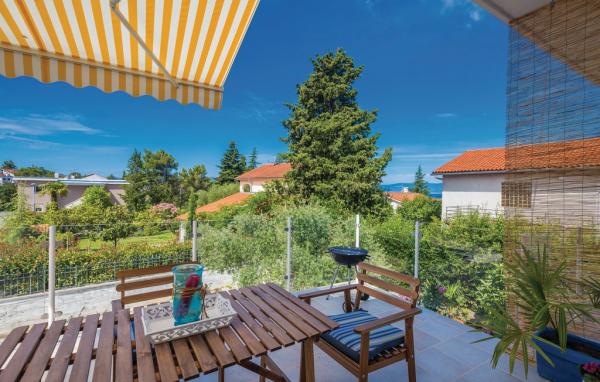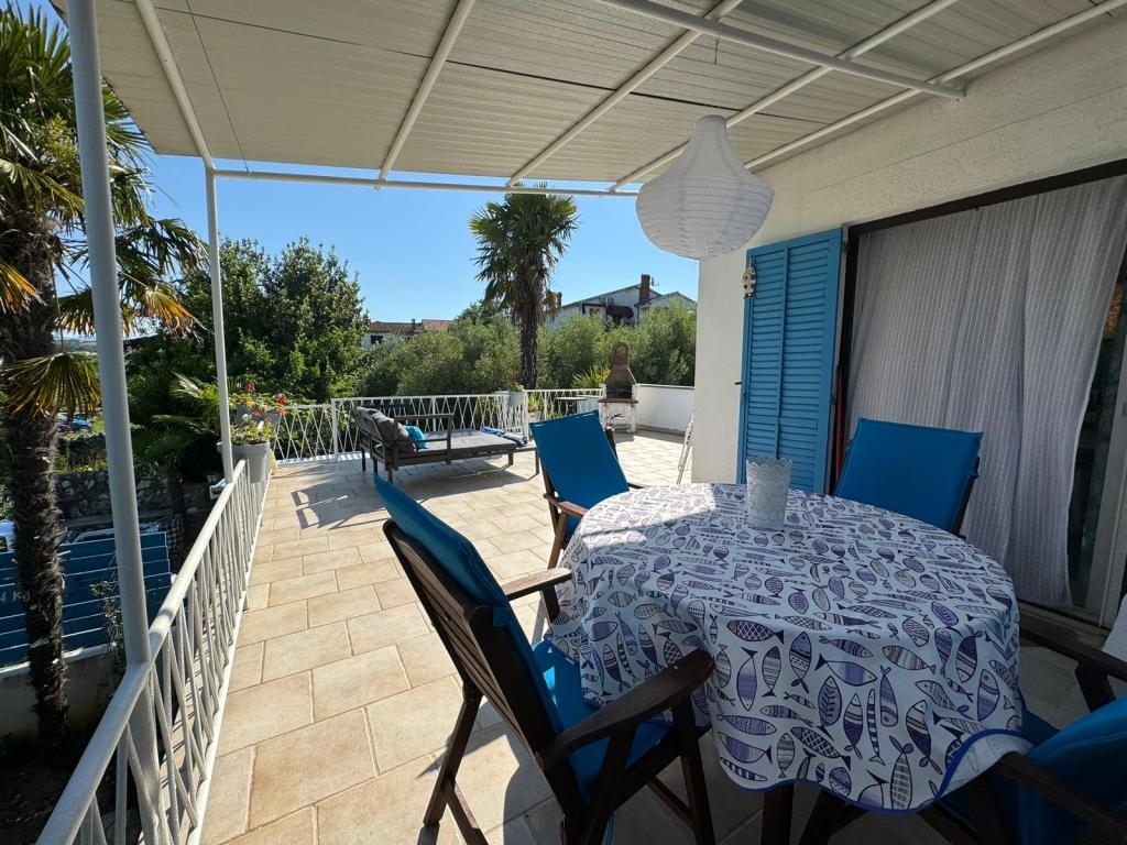 Lejligheden ligger på første sal i et familiehus i en stille del af Malinska. Huset er omgivet af grønne områder, centrum og butikker er tætte (ca. 10 minutters gang). Lejligheden består af et soveværelse (dobbeltseng ekstra seng), stue med køkken, badeværelse og stor terrasse. Sikker parkering på gården.