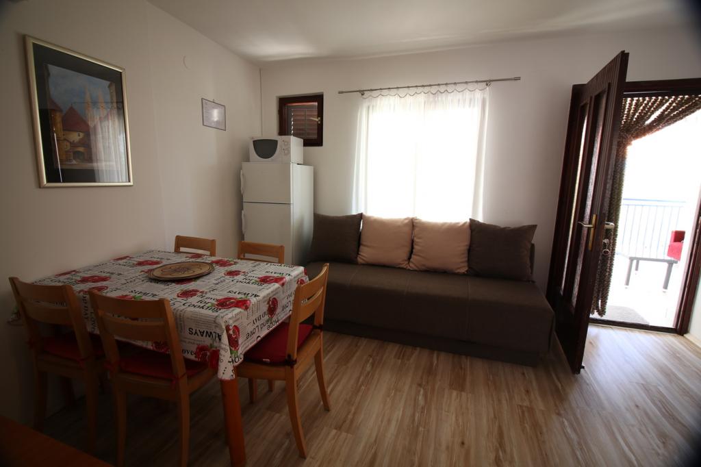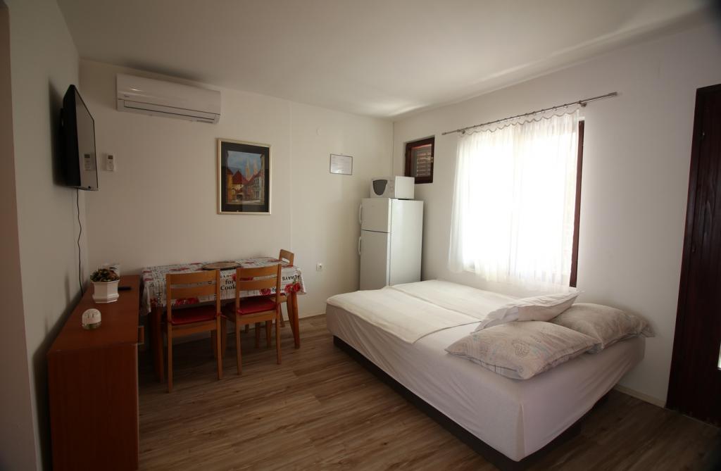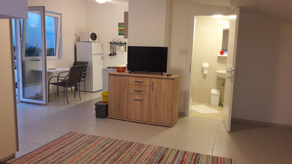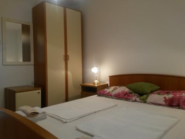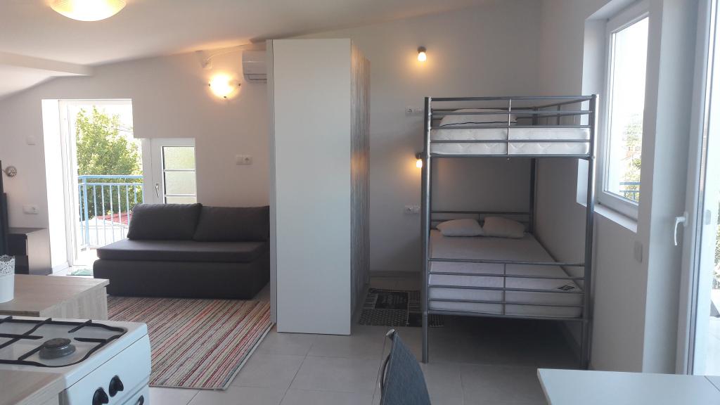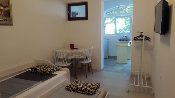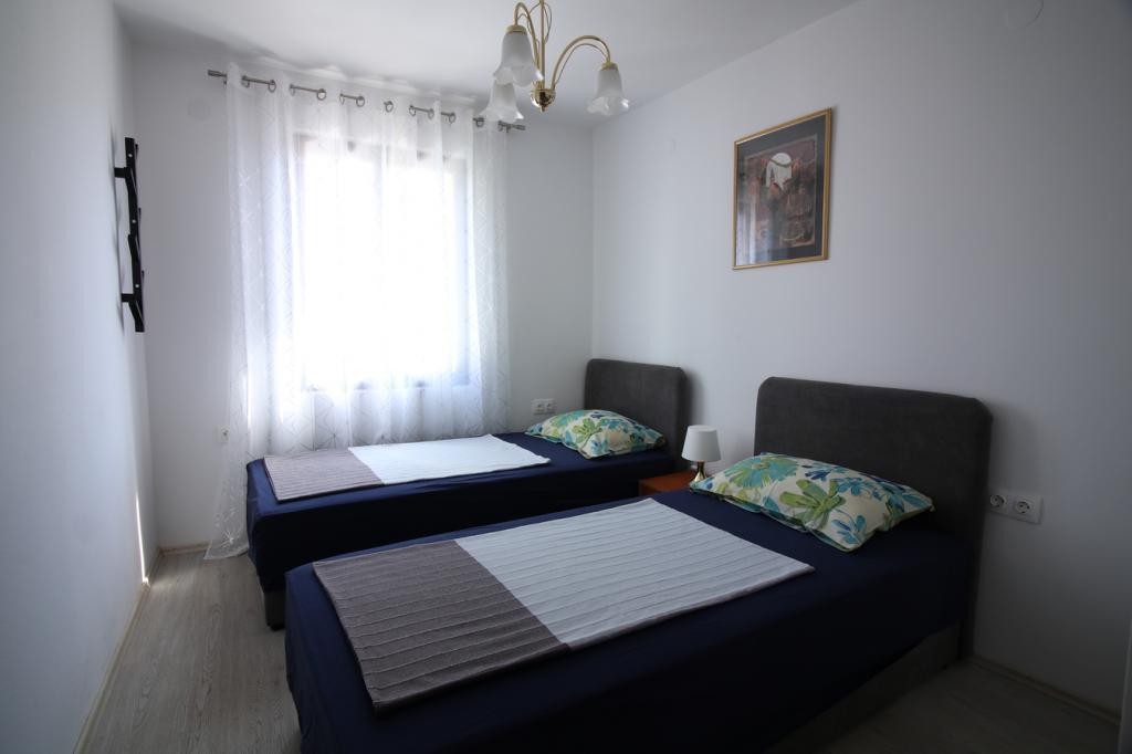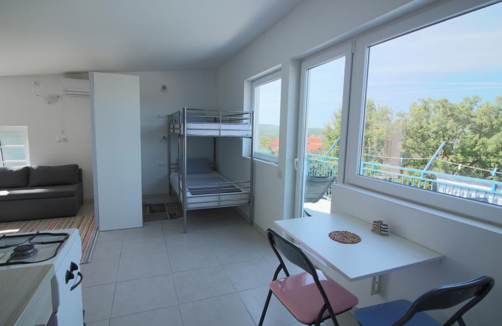 I en rolig del af Sveti Vid ligger et privat dobbelthus med funktionelt udstyrede lejligheder til 2-6 personer. Alle har deres egne terrasser, hvorfra man kommer ind i boligen. Ejerne bor i husets stueetage. I gården er der et stort bord med bænke og en grill. Parkering er i gården. Det er 15 minutter til Malinska centrum og 20 minutters gang til stranden. Der er mange smukke strande, strandpromenader og cykelstier i området. For dem, der leder efter sjov, er der også natklubben Diamant i nærheden (ca. 2 km). Aircondition, turistskat, registrering, slutrengøring, satellit-tv, sengelinned, håndklæder, køkkenruller, vaskemidler, svampe, toiletpapir og sæbe er inkluderet i prisen, og parkering og Wi-Fi er gratis. YDERLIGERE OMKOSTNINGER: - Kæledyr = €5/dag - 1 hund - Vaskeri = €3, - opvarmning fra €4-6/dag - 1 nat er 30% DYRERE - Fra 10.7. til 25.8. Minimumsophold på 7 nætter er muligt, undtagen for at udfylde huller mellem reservationer - Fra 1.-9. juli og fra 25.-31. august er det muligt at booke et minimumsophold på 5 nætter.