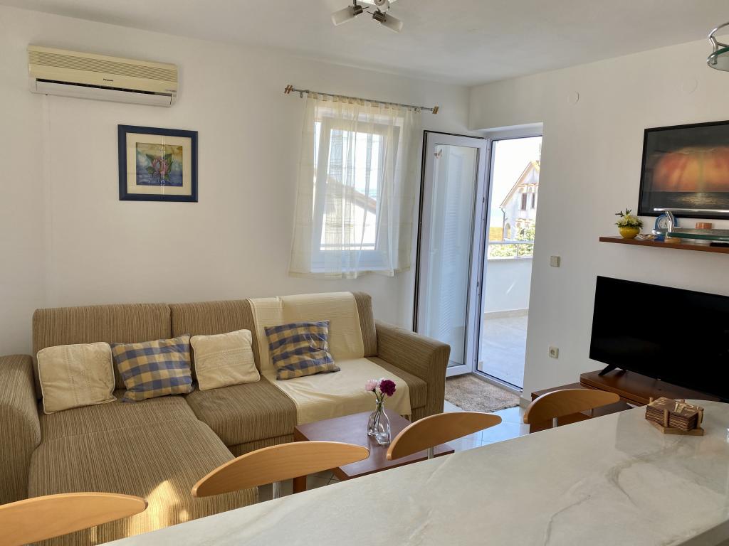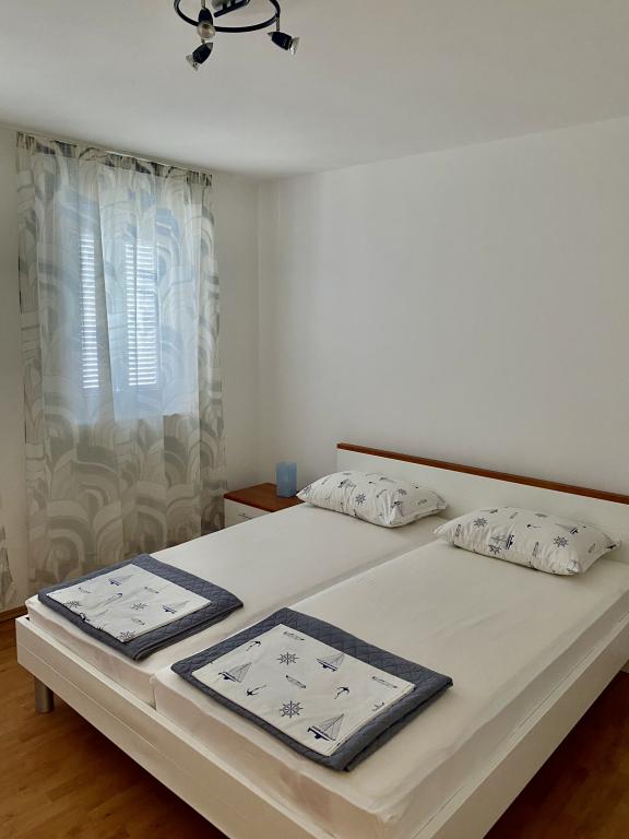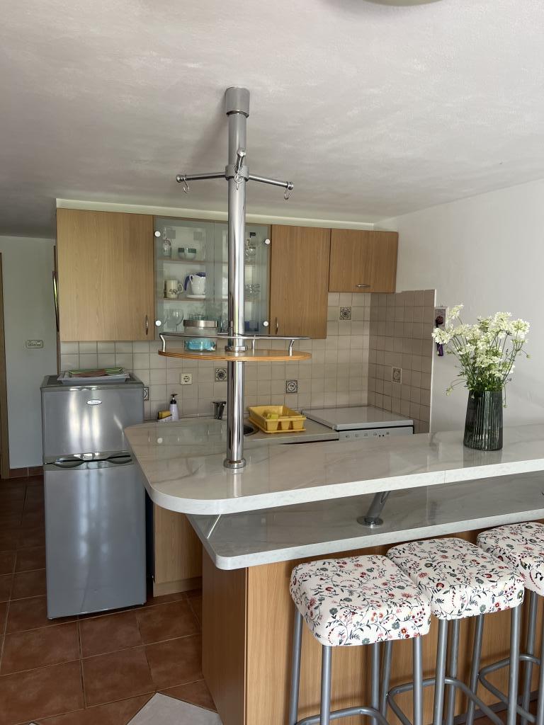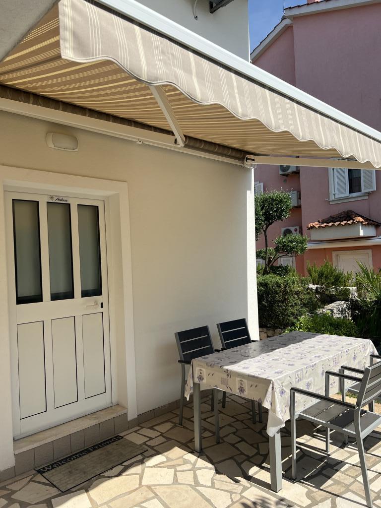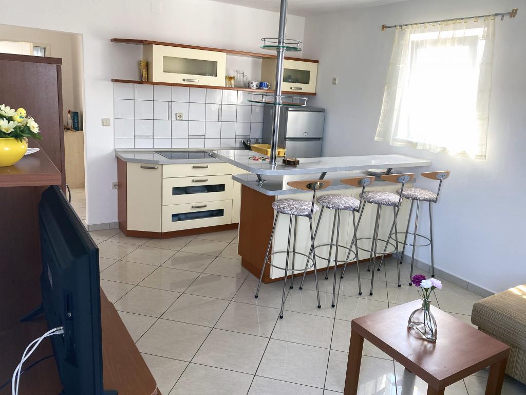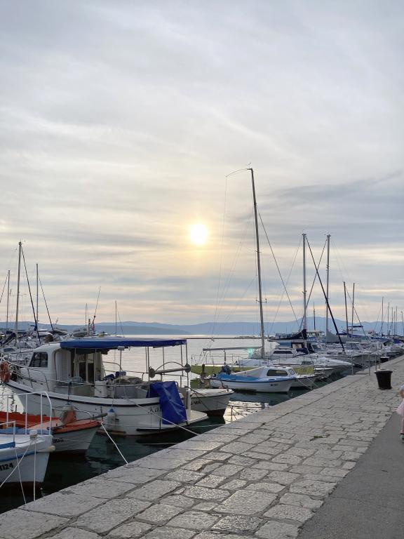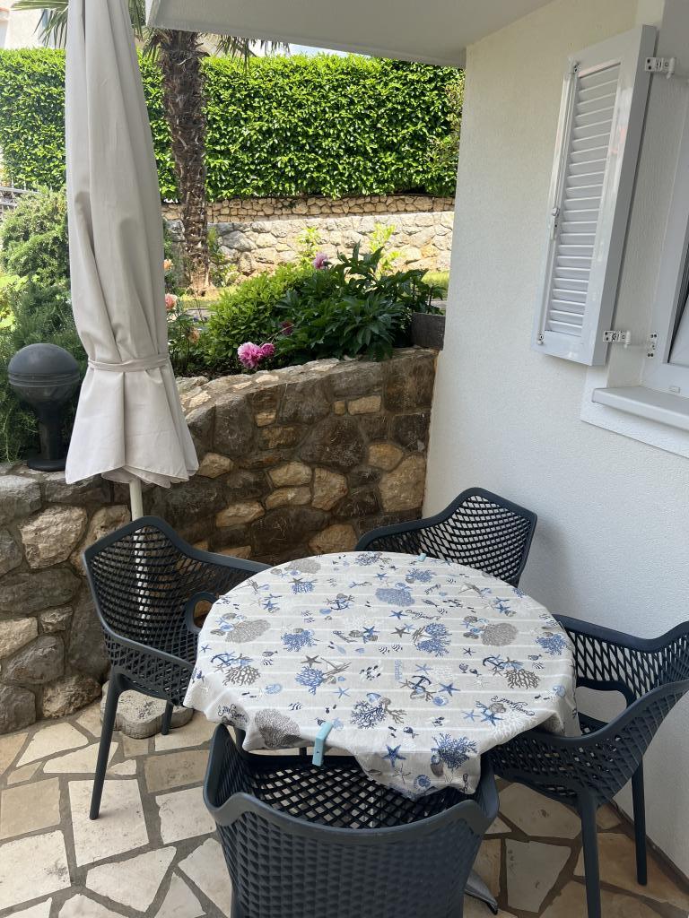 Moderne og rigt indrettede lejligheder i et familiehus i en meget rolig del af Malinska. Huset er beliggende nær bymidten, afstanden er kun 5 minutter fra byens marked og bymidten. Langs kysten i Malinska, helt fra centrum, er der indrettede og udstyrede badeområder; sten- og sandstrande, velegnet til små børn eller afsondrede bugter til afslapning; alle tilbydes et valg. Alle vores lejligheder er designet til 4 personer (5. person på forespørgsel). De har et separat soveværelse, stue, køkken, toilet, entre og balkon eller terrasse. Lejlighederne i stueetagen har udgang til haven, og lejlighederne på husets 1. sal har en stor altan med udsigt til havet. I haven er der en grill og et lysthus, som kan bruges. Alle lejligheder har sikret parkering for alle gæster. Lejligheder på første sal i huset er udstyret med aircondition, ligesom lejlighed ID 3470 i stueetagen. Alle lejligheder har LCD SAT TV, samt gratis wifi. Lejlighederne i stueetagen har opvaskemaskine. En vaskemaskine er tilgængelig efter anmodning og mod et tillægsgebyr.
