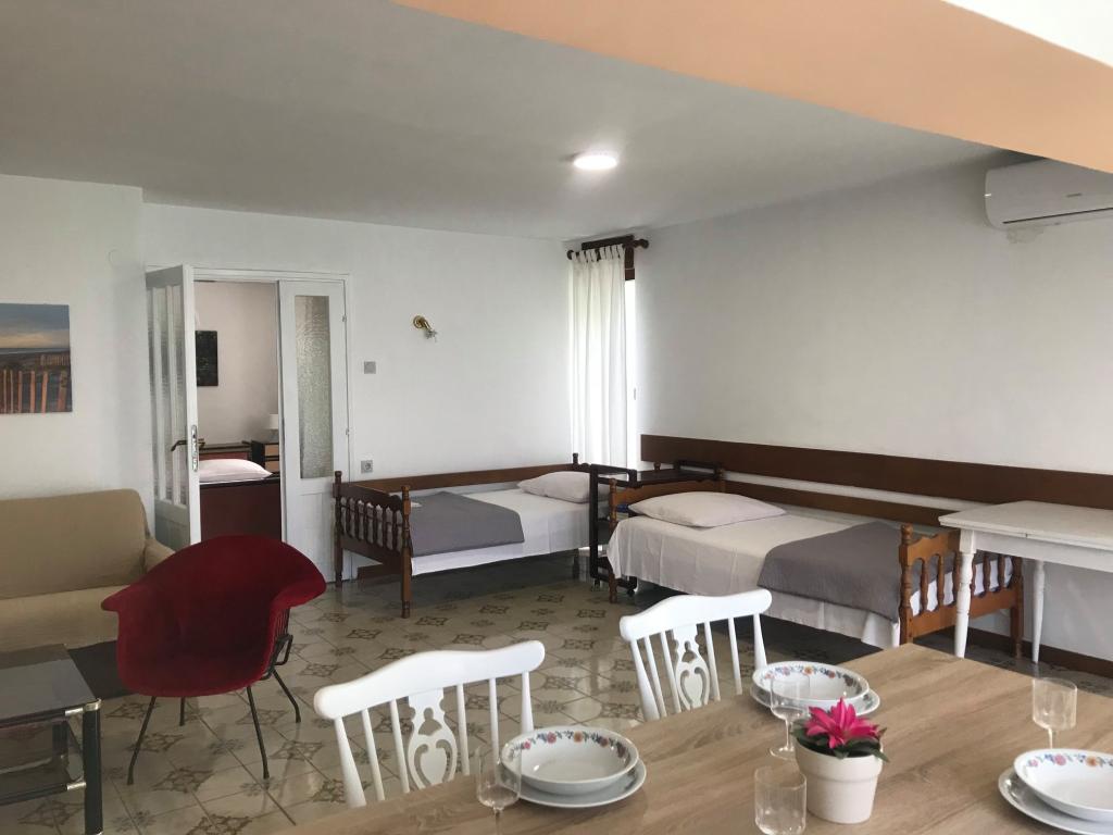 Petrak Apartments ligger i et fritliggende familiehus med to lejligheder, der hver har sin egen etage, hvilket sikrer privatliv for hver af brugerne af de enkelte lejligheder. Huset er omgivet af et hegn, der omslutter haven med en gårdhave og gratis parkering til i alt 4 biler på gaden og en indhegnet have bag huset. Der er mulighed for at leje hele huset efter anmodning (begge lejligheder samtidig), hvilket er særligt praktisk for to eller tre familier, der holder ferie sammen. Huset ligger ca. 250 m fra Malinska centrum og ca. 300 m fra bystranden. Butikken og tankstationen ligger ca. 150 m væk, ligesom den nærmeste restaurant. Grillen er placeret i husets gårdhave og deles af begge lejligheder. Lejlighederne har gratis Wi-Fi og satellit-tv. Der er aircondition til køling og opvarmning i begge lejligheder.