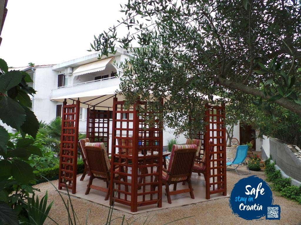 Lejligheder Schreng ligger i et familiehus i en rolig del af Malinska omgivet af grønne områder. Stedet er ideelt til din ferie, fordi det tilbyder dig alt hvad du behøver for et behageligt ophold væk fra støj. Huset tilbyder indkvartering i to lejligheder. 1. med et soveværelse med dobbeltseng og en komfortabel lejlighed med tre soveværelser. Hver lejlighed har separat indgang og parkeringsplads. Tre værelses lejlighed ligger på første sal og har en terrasse på 20 m2, mens den ene soveværelse ligger i stueetagen og har en rummelig terrasse på 20 m2. Alle lejligheder har: satellit-tv, internet, aircondition og vaskemaskine efter anmodning. I den rummelige og smukt anlagte have er der en grill og havepavillon, der alle er tilgængelige for gæsterne. Ejendommen ligger 15 minutters gang fra centrum og markedet og den største havnefront med caféer og restauranter langs kysten. Gæster elsker det, fordi det ligger i det bedst bedømte område i Malinska. Det er velegnet til større grupper af gæster. På grund af den aktuelle situation med COVID-19-pandemien bemærker vi, at hver lejlighed har helt separate indgange og
