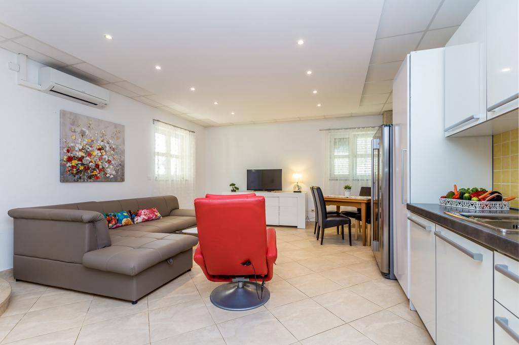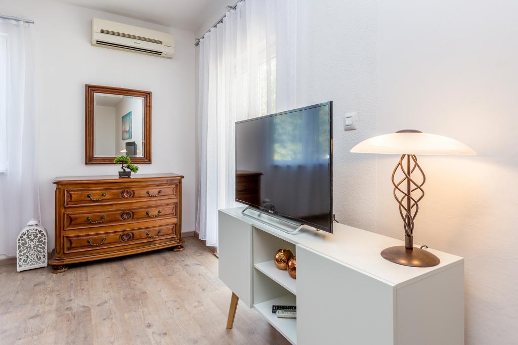 Velkommen til Villa Antonella - en grøn oase til at slappe af og nyde din velfortjente ferie i komfortable lejligheder. Nyd den rummelige grønne have, mens du slapper af ved den krystalklare og opvarmede swimmingpool. Socialt samvær omkring den fælles grill er altid en mulighed, hvilket skaber en varm og venlig atmosfære, der gør hvert øjeblik af dit ophold specielt, når du udforsker al den charme, som Villa Antonella har at byde på. Derudover kan du nyde dit privatliv på dine rummelige altaner eller terrasser. Udforsk de smukke strande og steder på øen, enten ved at cykle på over 500 km afmærkede stier, gå langs havet, gennem skoven og landsbyerne, stand-up padling på stranden, leje en speedbåd eller organiserede dagsture med båd. Hvor end du går, vil du møde autoktone stenhuse, stenmure, lokale mennesker og vigtigst af alt smuk natur, duften af Middelhavet og det perleklare hav. Vi er stolte af en vurdering på 9,8 på BC, hvilket bekræfter vores dedikation til fuld tilfredshed for vores kære gæster, som vender tilbage ofte.