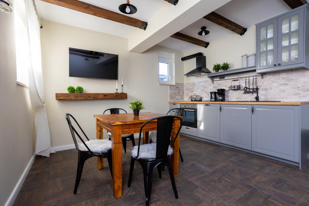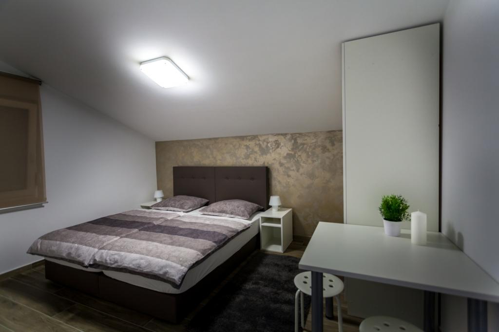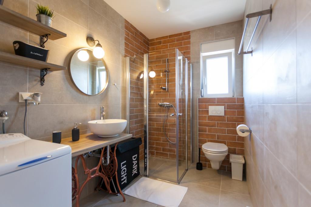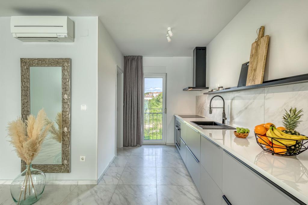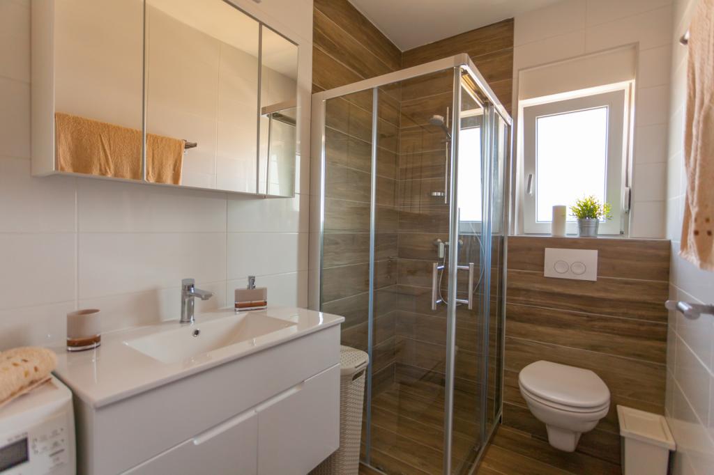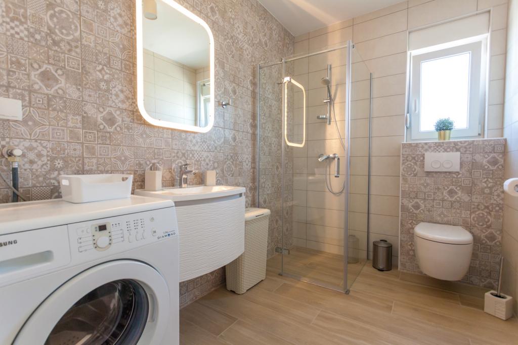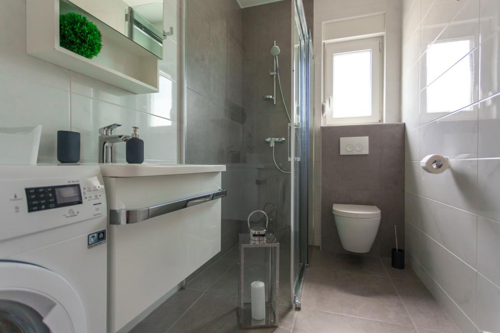 Villa FE tilbyder moderne og elegant indrettede lejligheder med en smuk havudsigt, beliggende i en rolig og attraktiv del af Malinska - Rova, kun 300 meter fra stranden. Villaen består af fem moderne udstyrede lejligheder, en i kælderen, to på første sal og to på anden sal. Lejlighederne på de øverste etager har en privat balkon, der er ideel til afslapning med udsigt over Adriaterhavet. Interiøret er indrettet i en moderne stil med omhyggeligt udvalgte møbler, der sikrer et komfortabelt og behageligt ophold, mens gæsterne har adgang til aircondition i fællesområder og soveværelser, et tv og hurtig og gratis WiFi i hele ejendommen. Takket være sin fremragende beliggenhed nær strande, restauranter og lokale faciliteter er Villa FE det perfekte valg til en romantisk ferie, familieferie eller en afslappende ferie ved havet.