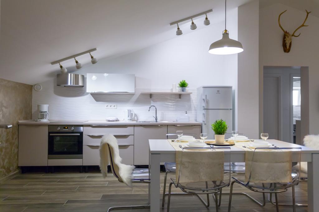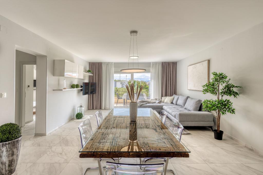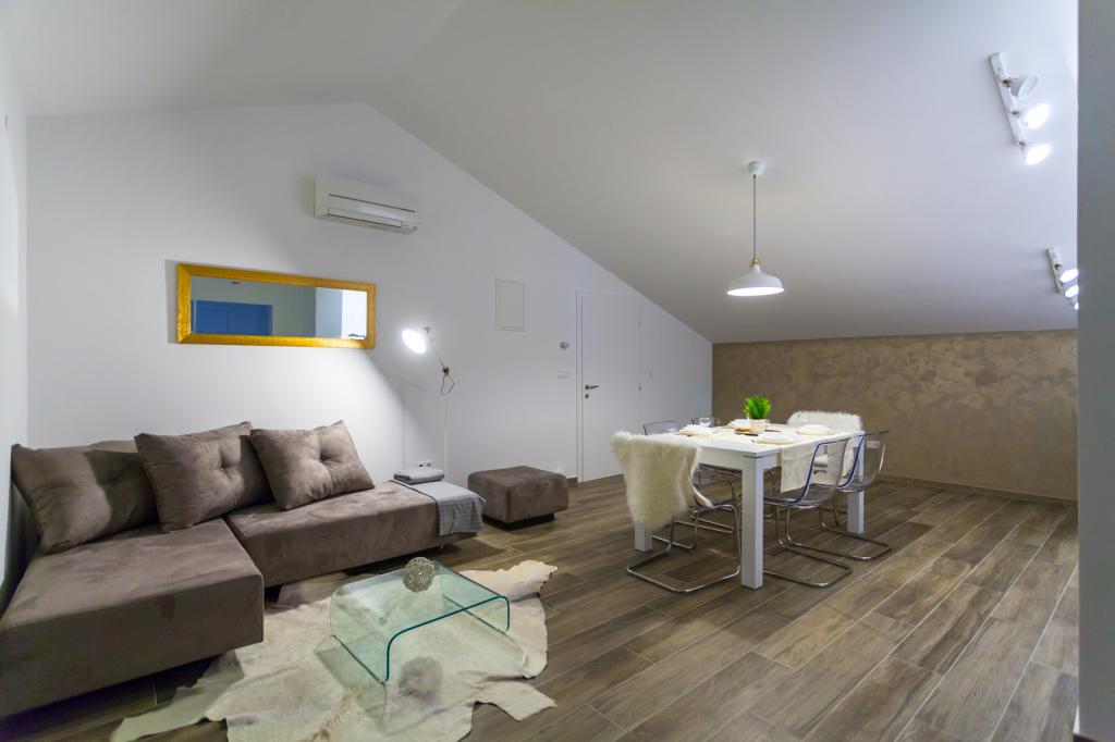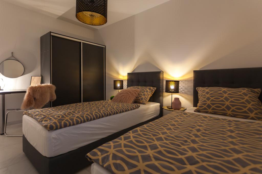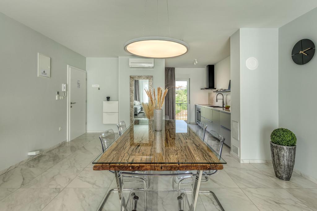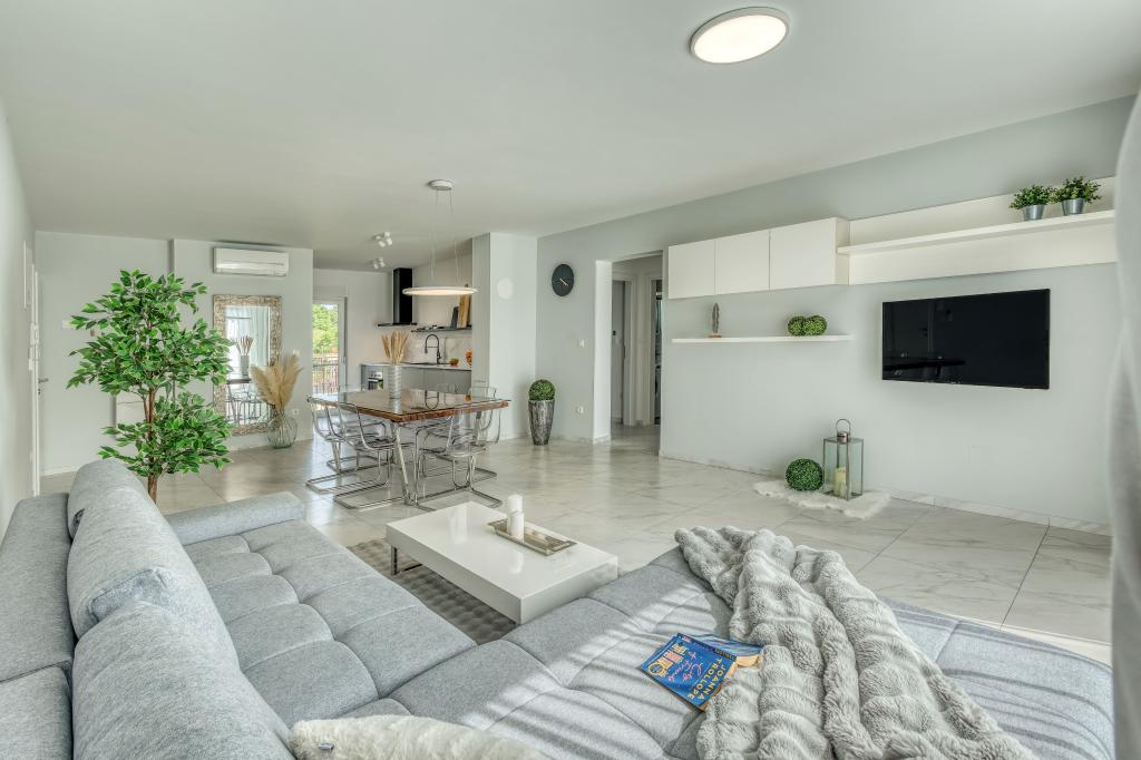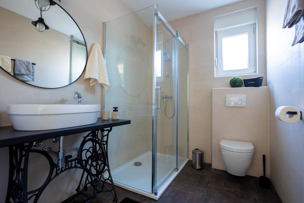 Villa FE tilbyder moderne og elegant indrettede lejligheder med en smuk havudsigt, beliggende i en rolig og attraktiv del af Malinska - Rova, kun 300 meter fra stranden. Villaen består af fem moderne udstyrede lejligheder, en i kælderen, to på første sal og to på anden sal. Lejlighederne på de øverste etager har en privat balkon, der er ideel til afslapning med udsigt over Adriaterhavet. Interiøret er indrettet i en moderne stil med omhyggeligt udvalgte møbler, der sikrer et komfortabelt og behageligt ophold, mens gæsterne har adgang til aircondition i fællesområder og soveværelser, et tv og hurtig og gratis WiFi i hele ejendommen. Takket være sin fremragende beliggenhed nær strande, restauranter og lokale faciliteter er Villa FE det perfekte valg til en romantisk ferie, familieferie eller en afslappende ferie ved havet.