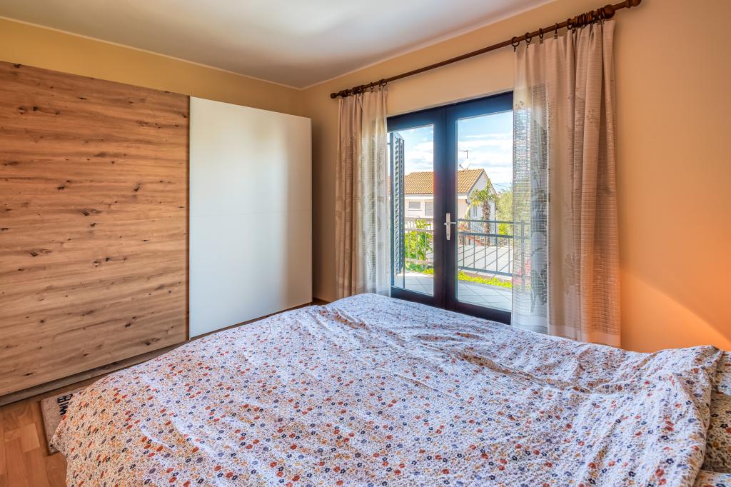 Fuldt udstyret fire-værelses duplex lejlighed med privat parkering og have. Den består af en terrasse, balkon, køkken, stue, toilet / badeværelse og to soveværelser. Lejligheden er beliggende for enden af ​​gaden, der ikke er optaget. Afstand fra stranden og restauranter, fem minutters gang fra byens centrum 20 minutters gang langs strandpromenaden.