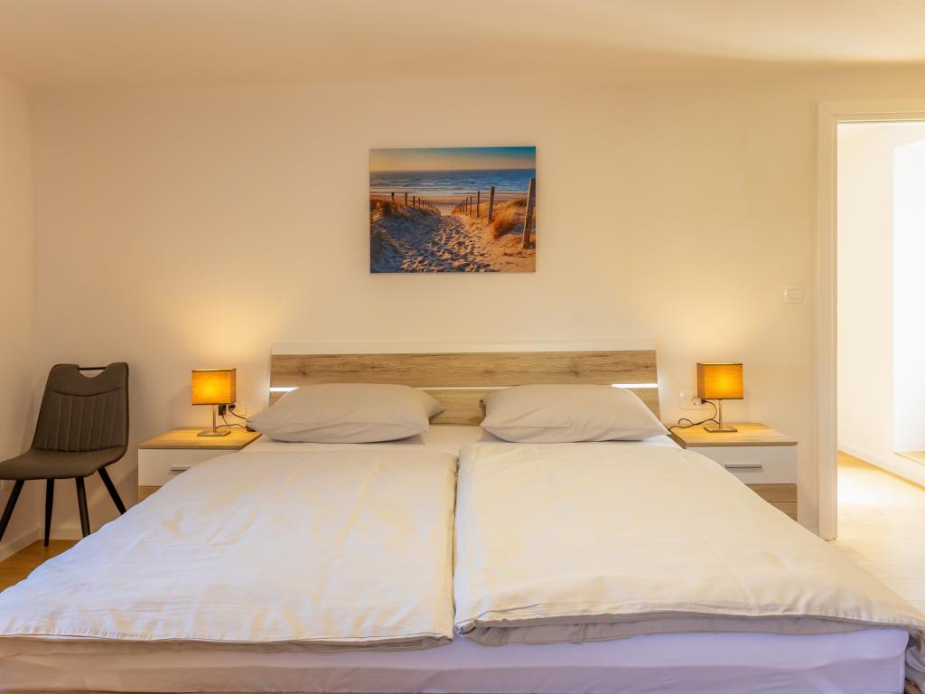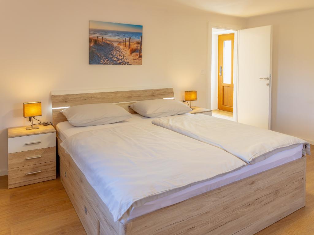 Nyrenoveret sommerhus med havudsigt. Det kan rumme 6 personer i 4 soveværelser. Stueetagen er domineret af en stor åben stue, spisestue og fuldt udstyret køkken. På samme etage er der soveværelse med dobbeltseng og 2 badeværelser. Trappen fører til øverste etage, hvor der er 3 soveværelser, et soveværelse med dobbeltseng og 2 soveværelser med en enkeltseng. Udenfor er der en grill med et ekstra bord og stole. Der er parkering til 2 biler i gården. Der er en legeplads i nærheden.