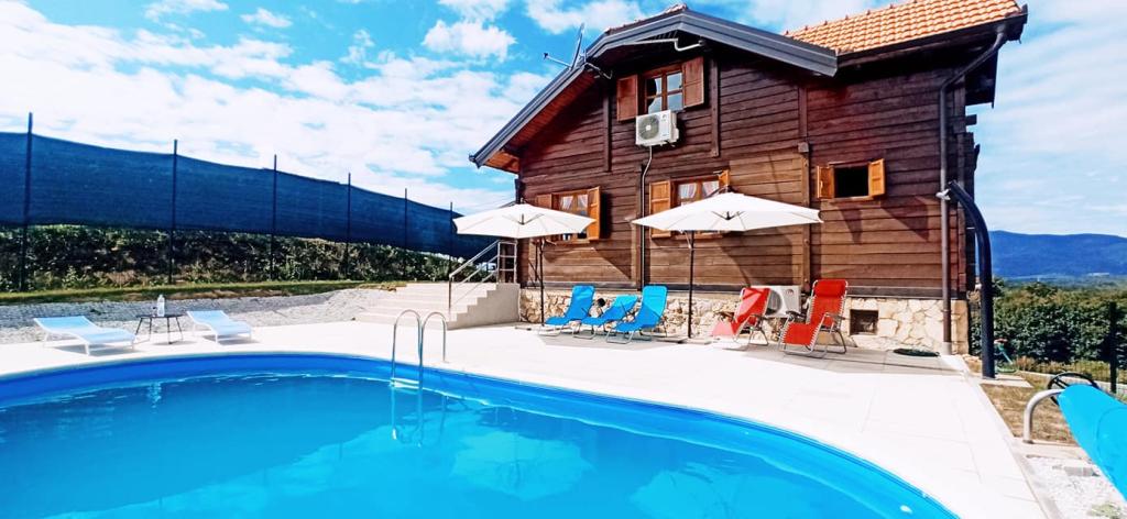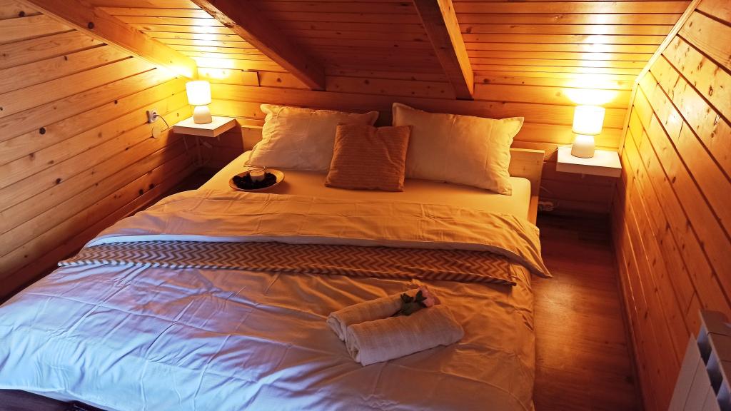 Holiday Home King's Lodge er et egetræshus beliggende i Hrvatsko Zagorje med udsigt over Ivanščica-bjerget ... Til din rådighed: - 3 separate soveværelser - 2,5 badeværelser - rummelig stue med pejs - sauna - grill med overdækket terrasse - plads til socialt samvær og leg (dart, billard, PS, brætspil...) - udendørs pejs - legeplads - børnehjørne og læsehjørne
