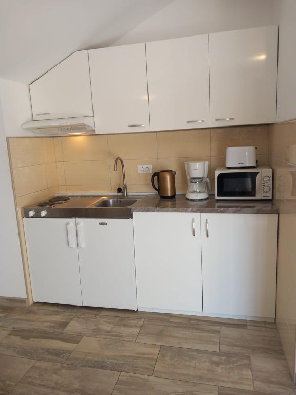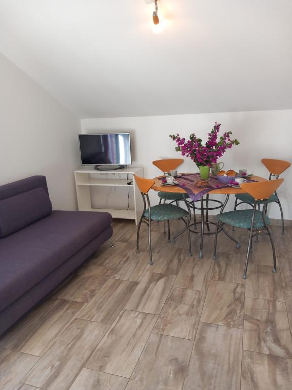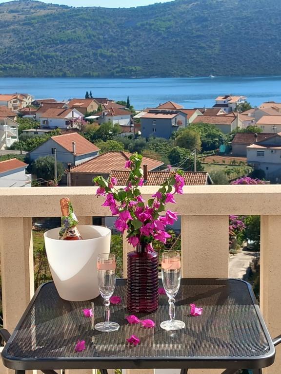 Fuldt udstyret og moderne lejligheder i en rolig del af Poljica med en smuk udsigt over havet og Marina Bay. Til din rådighed en stor lejlighed til 2-8 personer med Velka balkon med udsigt direkte til havet fra den sydlige side og en stor terrasse på nordsiden, som også har havudsigt og er udstyret med havemøbler, liggestole og parasoller, ideel til frokost og eftermiddag ferie. Terrassen er forbundet direkte til parkeringspladsen, som er gratis og en lille basketballbane. Lejligheden har tre soveværelser med en dobbelt-dobbelt senge, hvoraf det ene værelse har et ekstra badeværelse. Stor rummelig entre, badeværelse, køkken og stue. I haven er der en pejs -gril som du kan bruge til enhver tid. Lille lejlighed til 2 personer har en ekstra indgang og privat terrasse omgivet af blomster og grønne områder, der tilbyder en betagende udsigt over havet ... Begge lejligheder er beliggende i et roligt sted, så du kan nyde den fred og ro ...