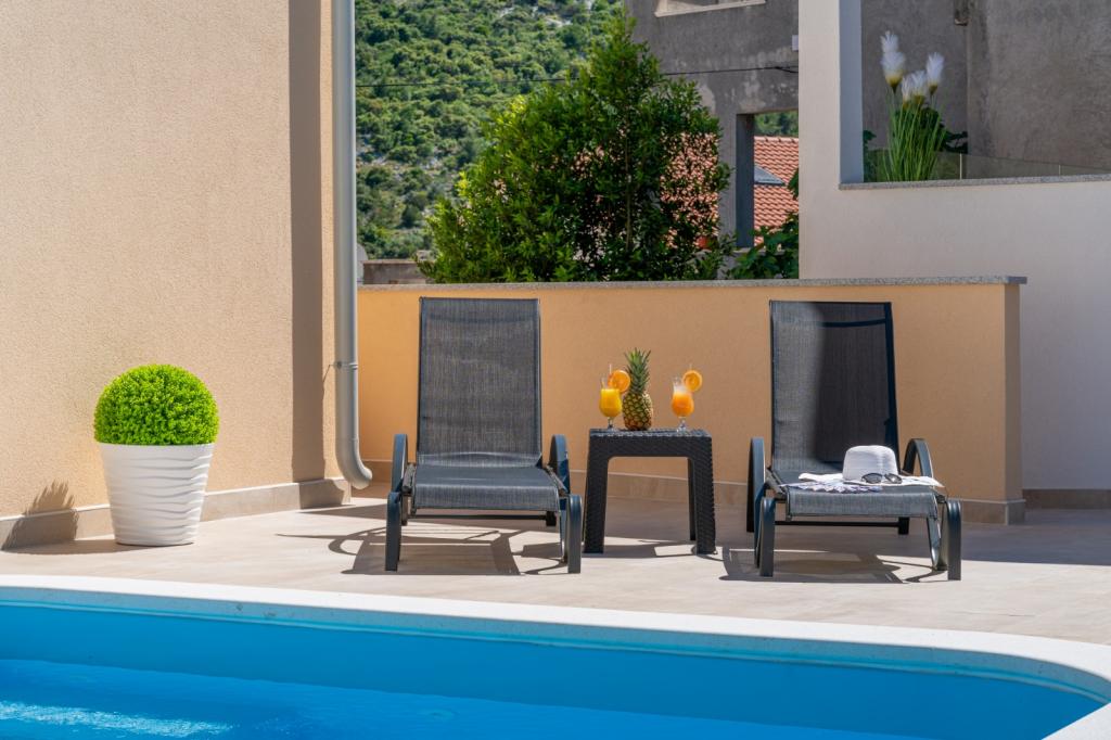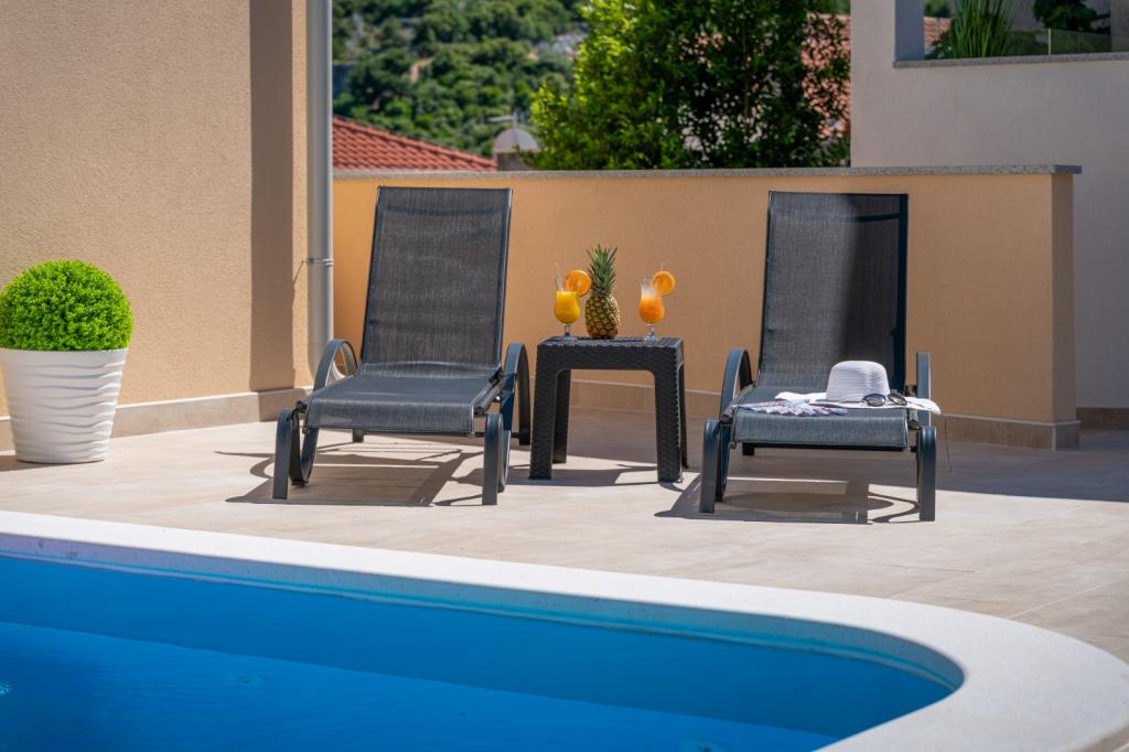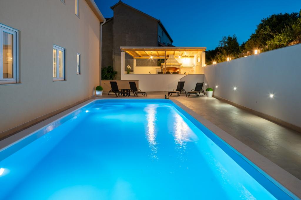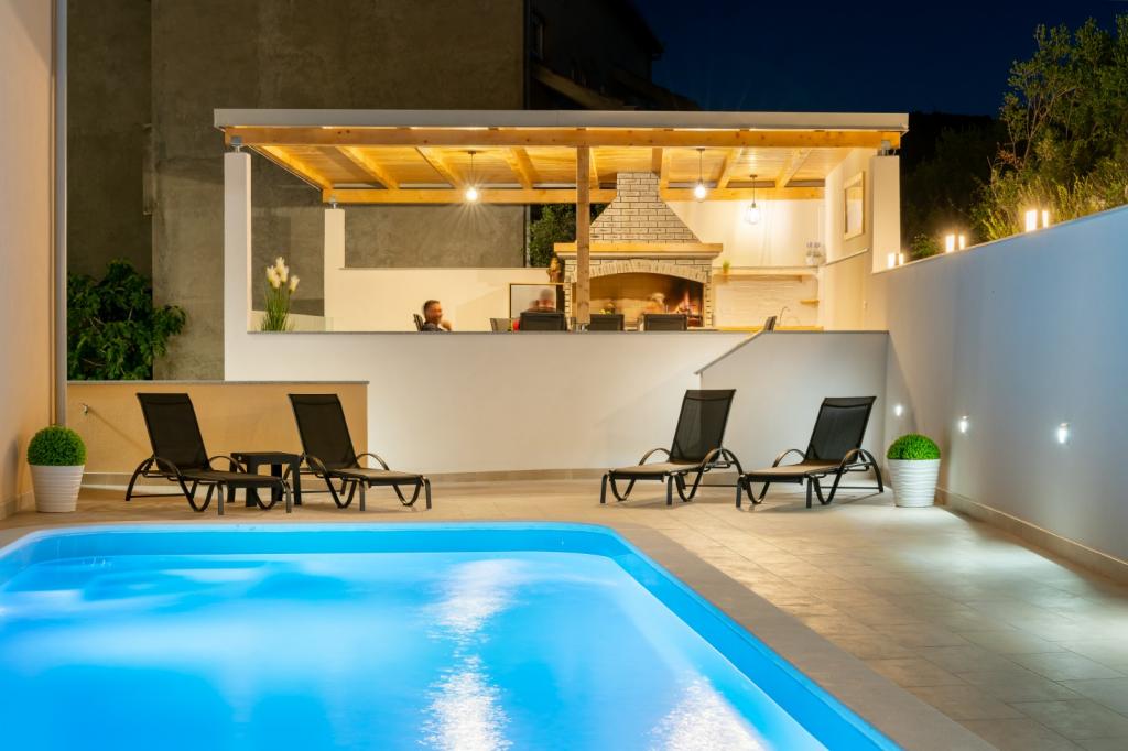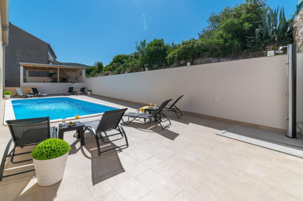 Sandsynligvis en af de bedste indkvarteringer i CRO. Alt er meget velholdt, fuldt udstyret, moderne og har aircondition. Der er en terrasse med en fuldt udstyret grill ved poolen. Der er liggestole ved poolen, et brusebad og et toilet. Udsigten fra villaen er fantastisk. Ejeren, Marina, er en vidunderlig og varm person. Hun var meget hjælpsom og bød os endda velkommen med lokalt kød, ost og brød. Stranden (stenstrand) er bogstaveligt talt to minutter væk. Jeg kan varmt anbefale det! Vi vender gerne tilbage.