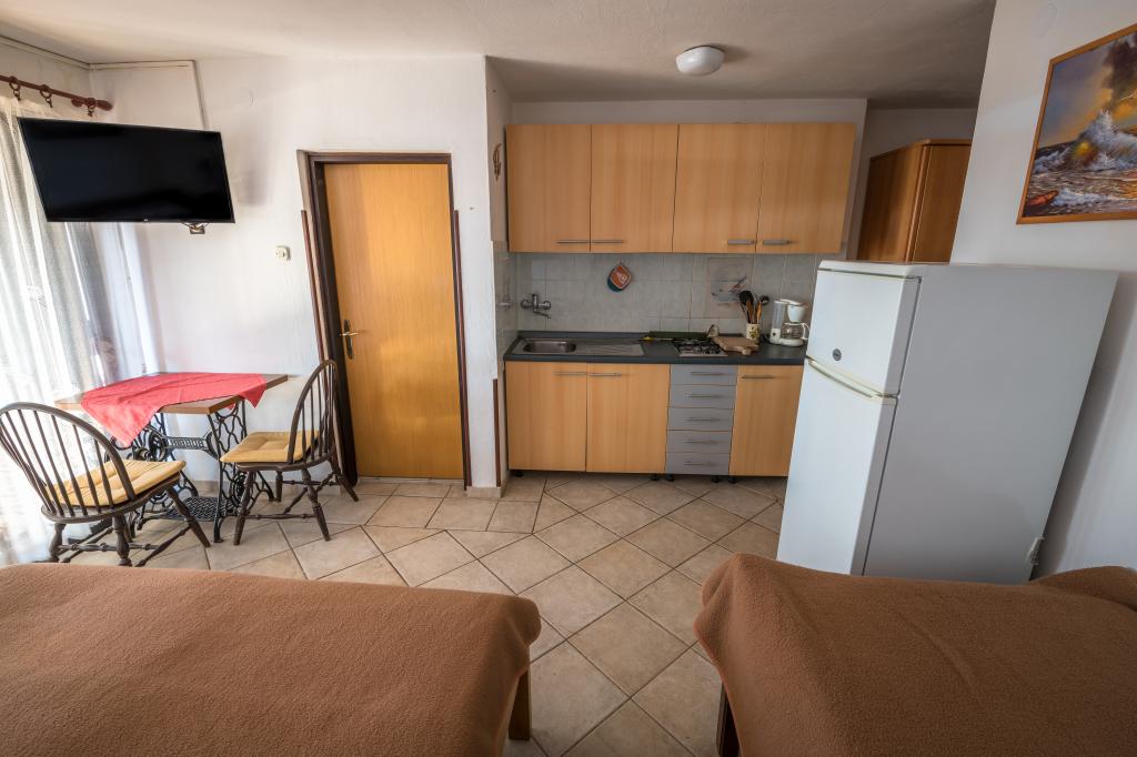 Turistskat er inkluderet i prisen.Vores gæster Villa Goga tilbyder gratis indhegnet parkering foran villaen, gratis brug af Goga Club Grill, hvor gæsterne kan bruge en gas- eller trægrill og vælge et af bagerierne, hvor de kan bage kød eller hjemmebagt brød efter gamle opskrifter. Goga Club Grill er overdækket og lukket, så den giver gæsterne mulighed for at hygge sig selv i regnvejr. Hver villalejlighed har fuldt udstyret køkken, møblerede senge med sengelinned og håndklæder, badeværelse med bruseniche, håndvask og toilet Hver lejlighed har egen terrasse med udsigt over havet eller olivenlunde, afhængigt af beliggenheden. Desuden er alle lejligheder villaer, der er dækket af trådløst internet, hvilket er helt gratis for gæster. NY!! Alle husets gæster har adgang til den nybyggede ladestander til elbiler placeret i husets gård. Ladestationen har en Type 2-forbindelse med en ladehastighed på 11 KW. Forbrug opkræves yderligere.