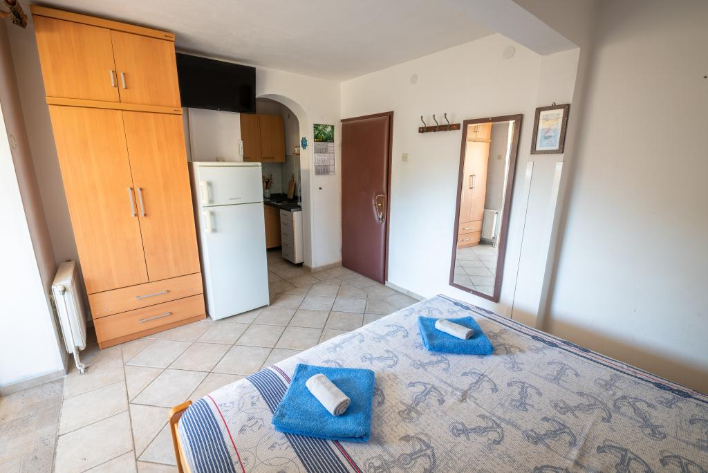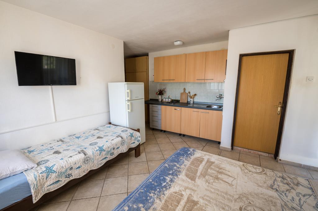 Byen Miholašćica sporer sine rødder tilbage til oldtidens romertid. Det ligger på den tammeste del af Cres-kysten, ved siden af en rummelig bugt åben mod sydvest. Den smukt anlagte by Miholašćica og nabobyen Martinšćica med masser af middelhavsvegetation er orienteret mod familie- og campingturisme. I dag er Miholašćica et turiststed, hvor du med udsigt over øen Žeča undgår menneskemængden og finder din ferie i fredelige omgivelser. Udover smukke strande byder uberørt natur på gode muligheder for et kvalitets- og aktivt ophold og ferie. Apartments Villa Goga er beliggende i centrum af Miholašćica, kun 5 minutters gang fra stranden. I kvarteret 300 m eller 10 minutters gang er der 2 restauranter, et supermarked og et turistbureau. Den naturlige stenstrand og det klare hav giver en uforglemmelig oplevelse for dine små, og en uerstattelig ferie for voksne. Der er en bar lige ved stranden, hvor I kan køle af med en kold drink eller underholde børnene med is fra det brede udvalg.