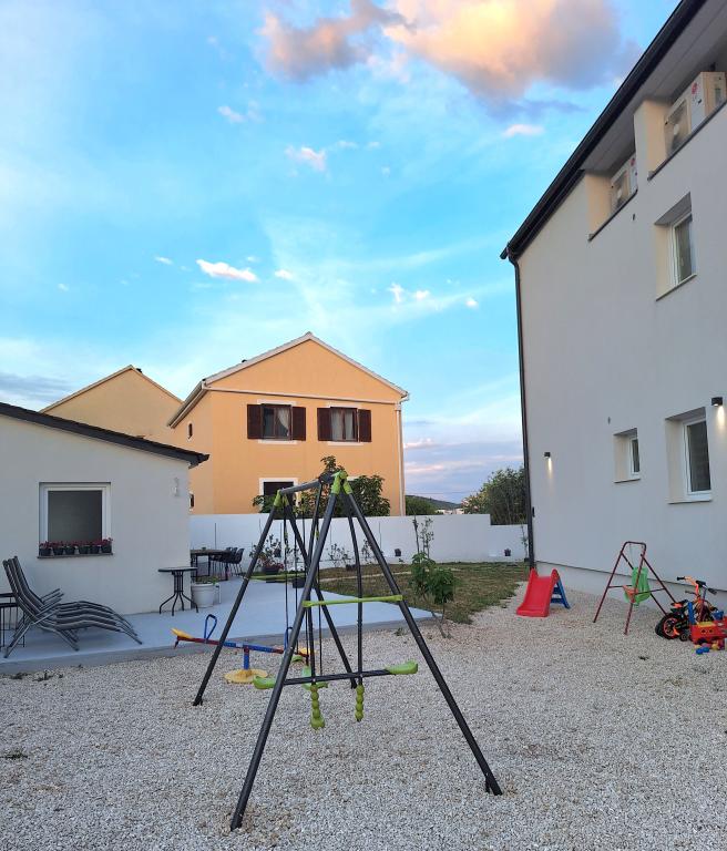 Moderne og fuldt udstyrede lejligheder i en rolig del af Maslenica. Anlægget er beliggende i centrum, 250 m gang til butikken, 900 m gang fra hovedstranden. På vej til stranden passerer du en legeplads, flere butikker, en grøntsags- og frugtbod og et bageri.