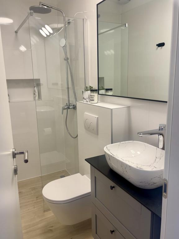 Jeg har tilbragt en fantastisk måned på ZB Apartman i Maslenica. Jeg må sige, at det ikke var aftalt på forhånd. Derfor blev jeg positivt overrasket dengang. For jeg opdagede, at det måske var den bedste beliggenhed i området. Det er midt i det hele. Det tager mindre end 1 minut at komme til stranden, 3 minutter til caféer over havet og omkring 6-7 minutter at handle og busstoppestedet. 2 minutters gang længere er supermarkedet. Okay, hvis du går langsomt, tager det dig nok 10 minutter at komme til supermarkedet. Og det er den lige vej. Næsten overalt i området er det op og ned. Det er ikke forfærdeligt, men når du har tasker med, er den lige vej en ekstra fordel. Lejligheden er virkelig pæn og pæn. Jeg havde to værelser, og der var en fantastisk udsigt over havet fra begge sider. Fra soveværelset er der en kæmpe terrasse med 2 chaiselonger med bløde betræk og en parasol og et bord med nogle stole. Og der er den bedste solnedgang, jeg nogensinde har set. Fra stuen har du en balkon med udsigt over havnen. Møblerne er i god stand. Køkkenet har en god ovn og fuldt køkkenudstyr og service. Selv blenderen. For folk, der foretrækker at lave mad selv (som jeg), er det virkelig godt at vide. Hvem foretrækker at gå ud - det er kun 5 minutter til caféen. De ligger alle på samme sted langs havet. Faktisk så jeg nogle lejligheder, som jeg havde set, da jeg scrollede gennem bookingen, og jeg var glad for, at jeg havde valgt Apartman ZB. Det er den bedste mulighed.