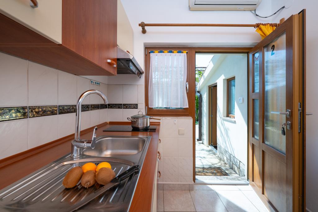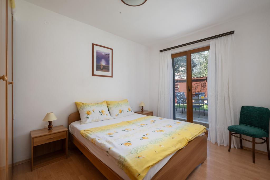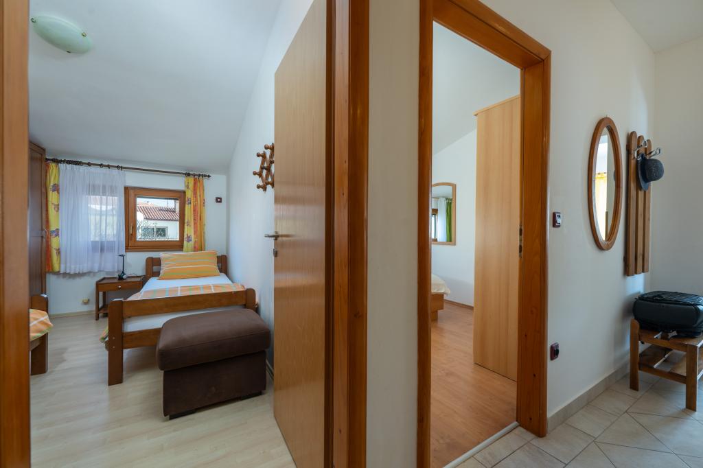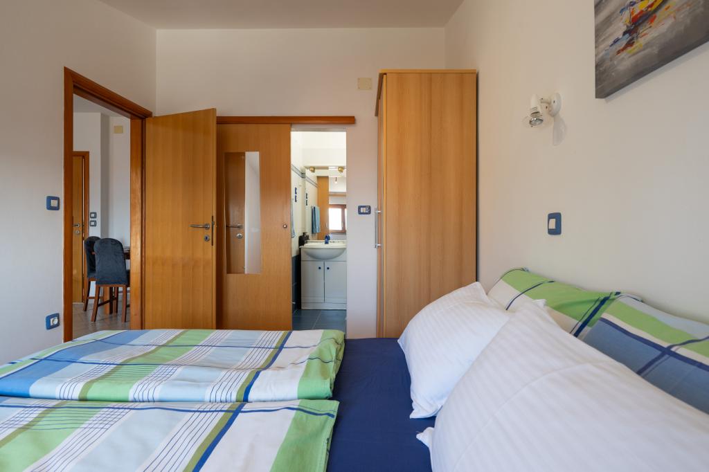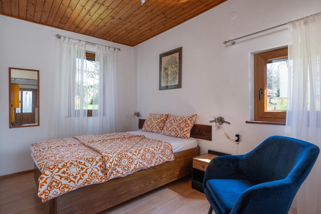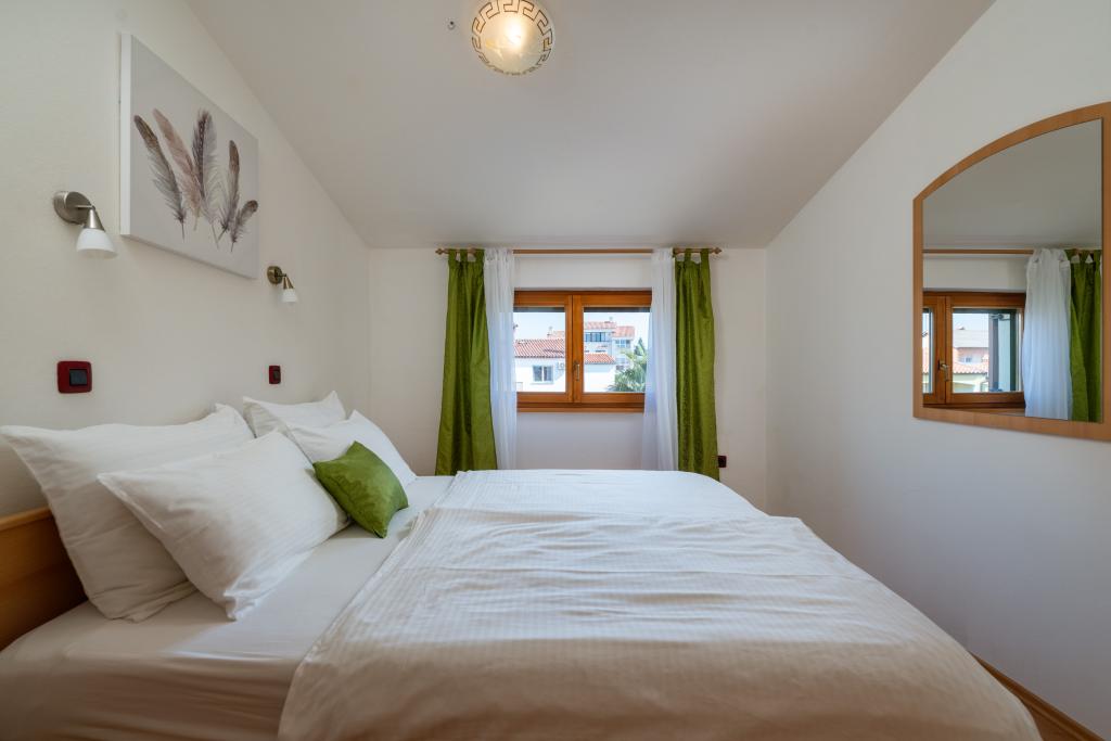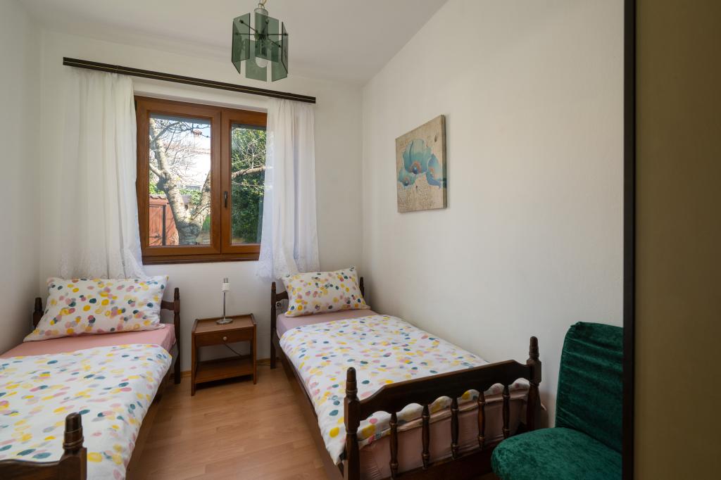 Huset ligger i en rolig del af Medulin, 250-300 m fra stranden, med en stor have og privat parkering. Der er 4 lejligheder til leje, fuldt og moderne udstyrede. 2 lejligheder er beliggende i stueetagen. Lejlighed nr. 1 med 2 soveværelser, køkken, stue, badeværelse, terrasse. Lejlighed nr. 2 med 1 soveværelse, køkken, badeværelse, haveterrasse. På 2. sal lejlighed nr. 3 med 2 soveværelser, køkken, stue, badeværelse, balkon. Lejlighed nr. 4 med 1 soveværelse, køkken med stue, badeværelse og balkon. Alle lejligheder har aircondition, trådløst internet, satellit-tv. Prisen inkluderer sengelinned, håndklæder, turistskat og registrering. Hver lejlighed har sin egen parkeringsplads, have og transportabel grill til rådighed. Vaskemaskineudlejning 5 euro, ekstra seng 10 euro. Parkering og gårdhave under videoovervågning.