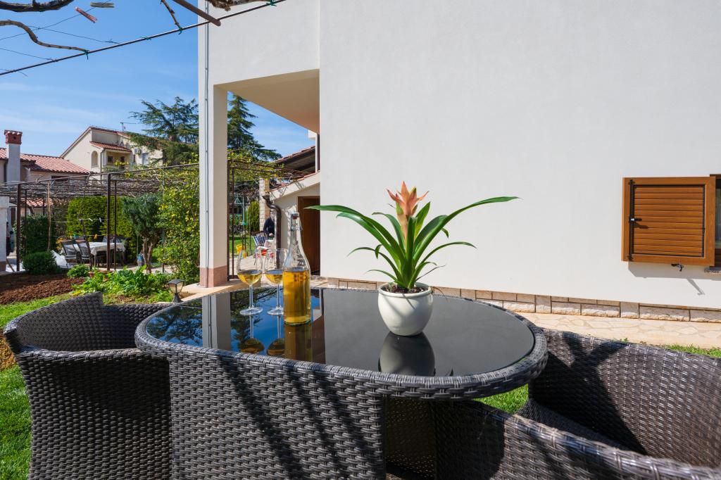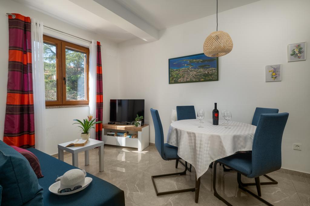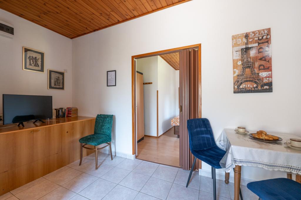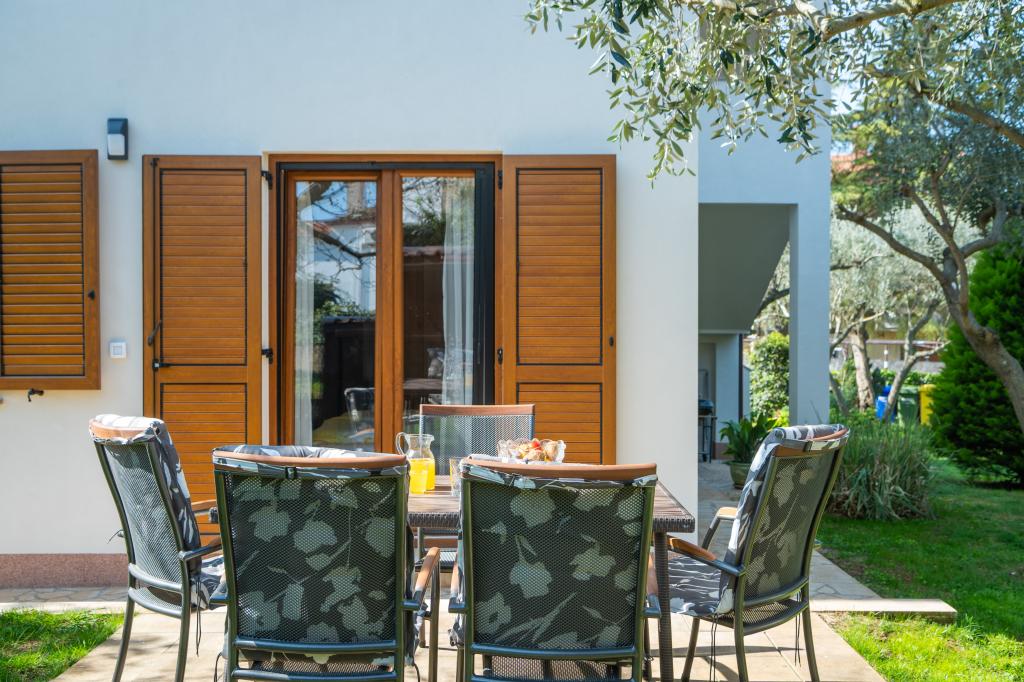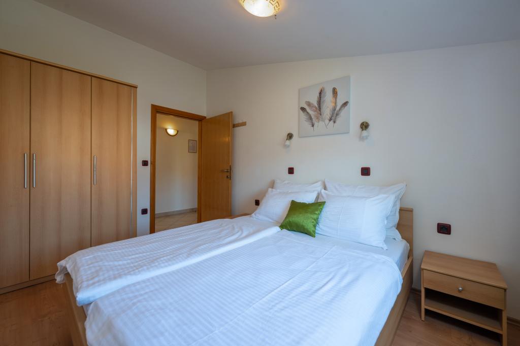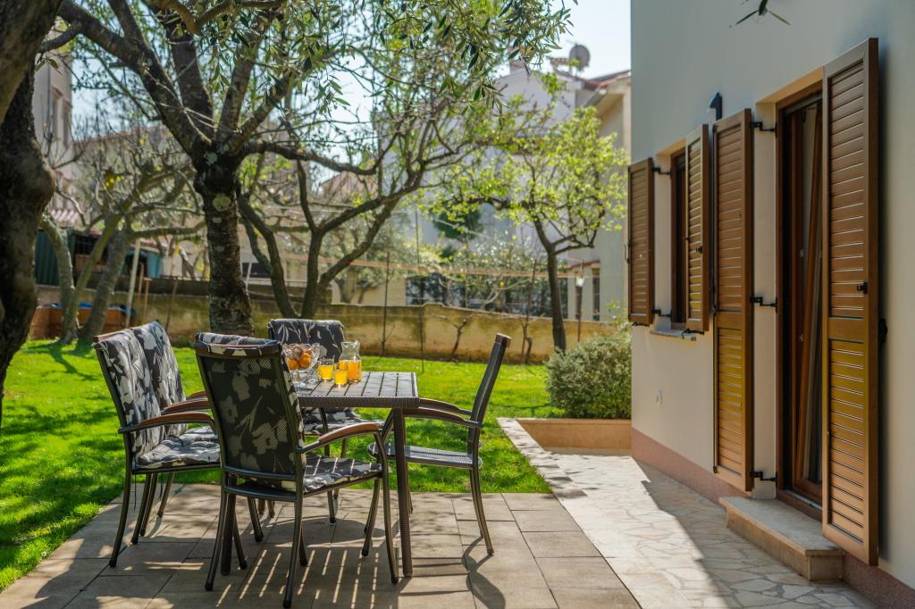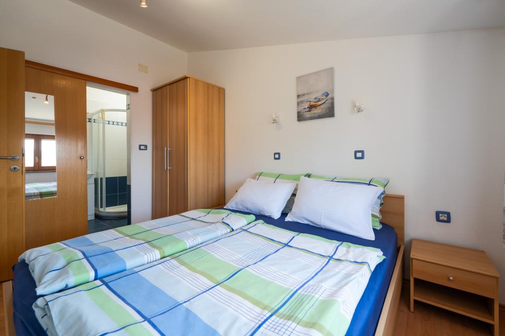 Huset ligger i en rolig del af Medulin, 250-300 m fra stranden, med en stor have og privat parkering. Der er 4 lejligheder til leje, fuldt og moderne udstyrede. 2 lejligheder er beliggende i stueetagen. Lejlighed nr. 1 med 2 soveværelser, køkken, stue, badeværelse, terrasse. Lejlighed nr. 2 med 1 soveværelse, køkken, badeværelse, haveterrasse. På 2. sal lejlighed nr. 3 med 2 soveværelser, køkken, stue, badeværelse, balkon. Lejlighed nr. 4 med 1 soveværelse, køkken med stue, badeværelse og balkon. Alle lejligheder har aircondition, trådløst internet, satellit-tv. Prisen inkluderer sengelinned, håndklæder, turistskat og registrering. Hver lejlighed har sin egen parkeringsplads, have og transportabel grill til rådighed. Vaskemaskineudlejning 5 euro, ekstra seng 10 euro. Parkering og gårdhave under videoovervågning.