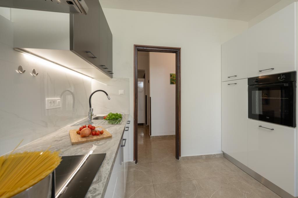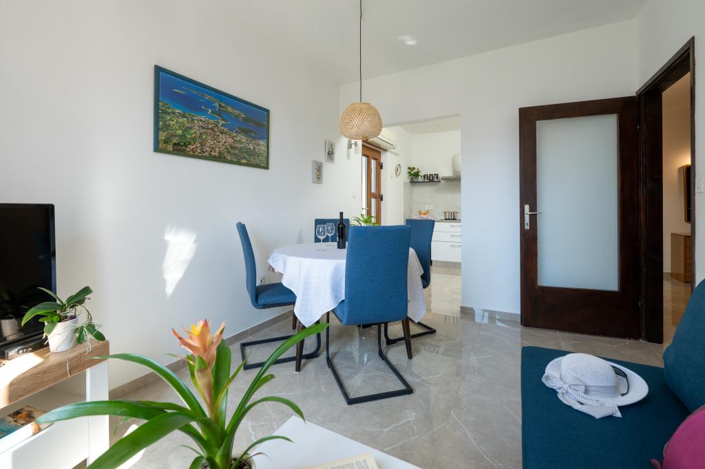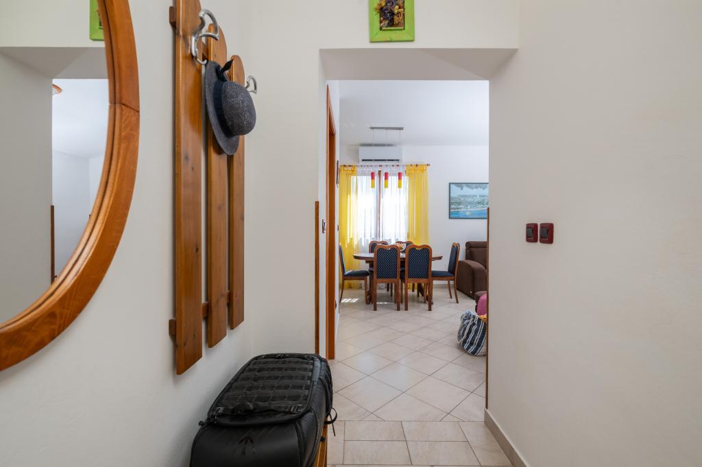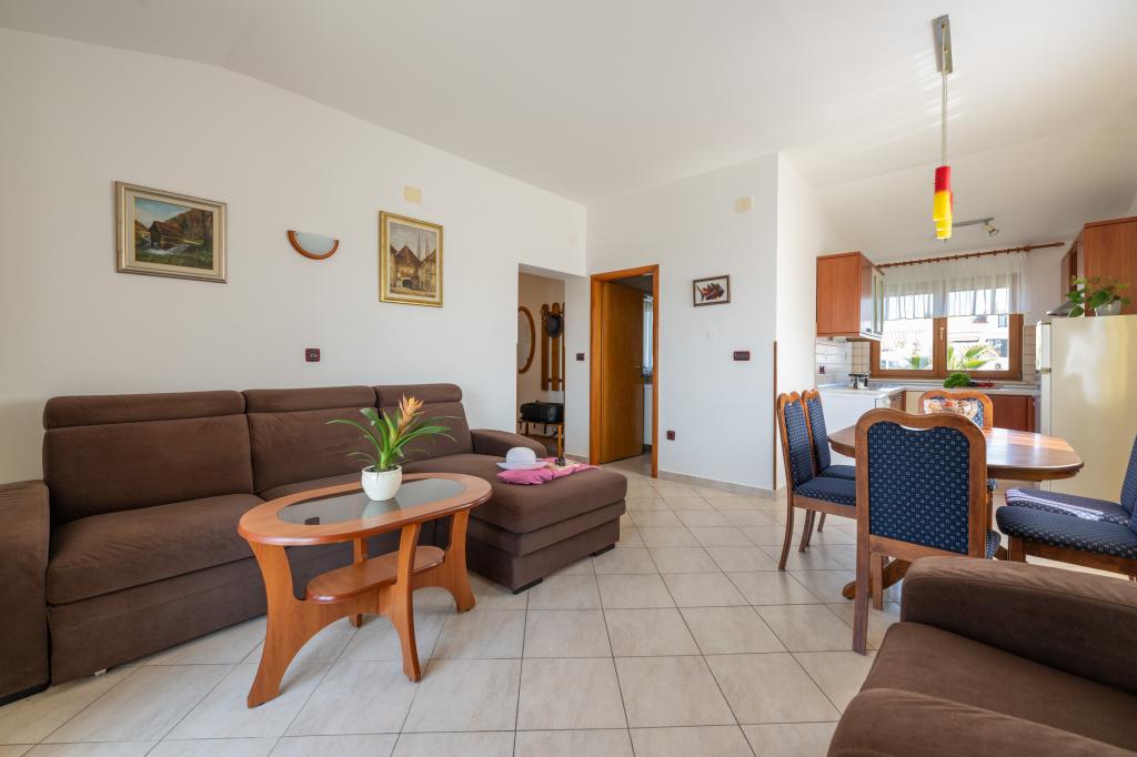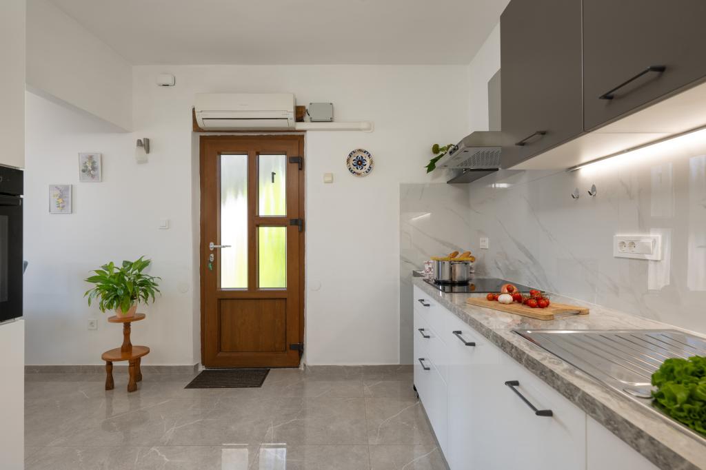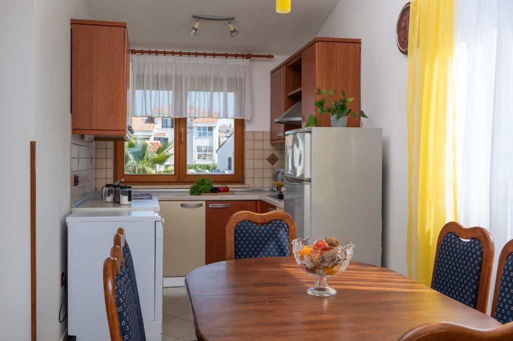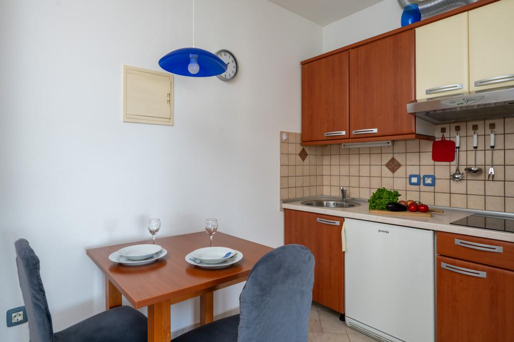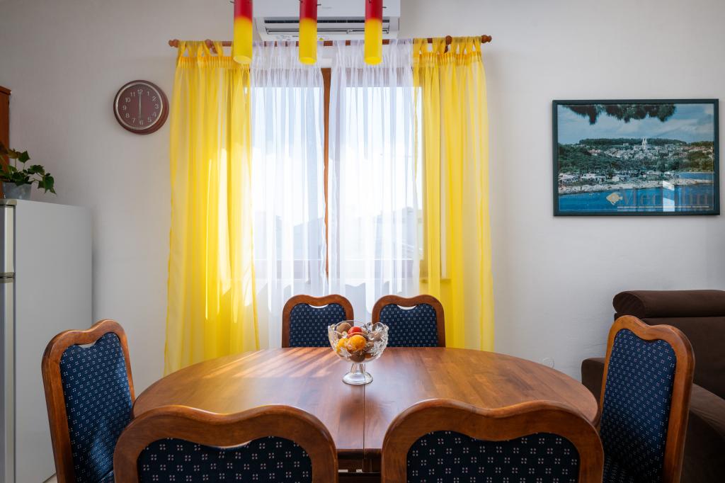 Huset ligger i en rolig del af Medulin, 250-300 m fra stranden, med en stor have og privat parkering. Der er 4 lejligheder til leje, fuldt og moderne udstyrede. 2 lejligheder er beliggende i stueetagen. Lejlighed nr. 1 med 2 soveværelser, køkken, stue, badeværelse, terrasse. Lejlighed nr. 2 med 1 soveværelse, køkken, badeværelse, haveterrasse. På 2. sal lejlighed nr. 3 med 2 soveværelser, køkken, stue, badeværelse, balkon. Lejlighed nr. 4 med 1 soveværelse, køkken med stue, badeværelse og balkon. Alle lejligheder har aircondition, trådløst internet, satellit-tv. Prisen inkluderer sengelinned, håndklæder, turistskat og registrering. Hver lejlighed har sin egen parkeringsplads, have og transportabel grill til rådighed. Vaskemaskineudlejning 5 euro, ekstra seng 10 euro. Parkering og gårdhave under videoovervågning.