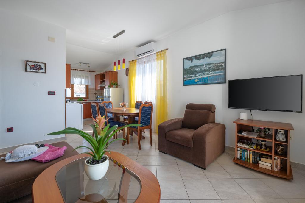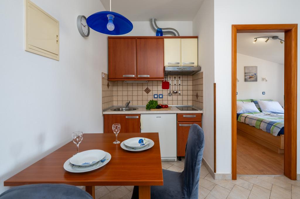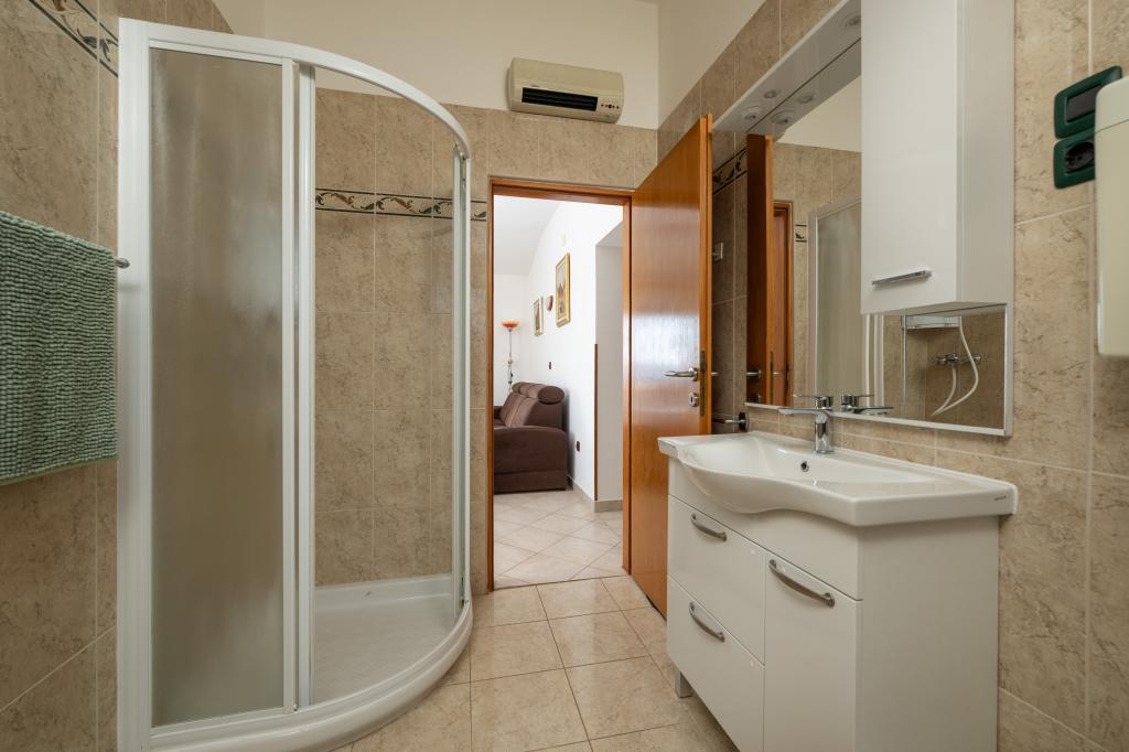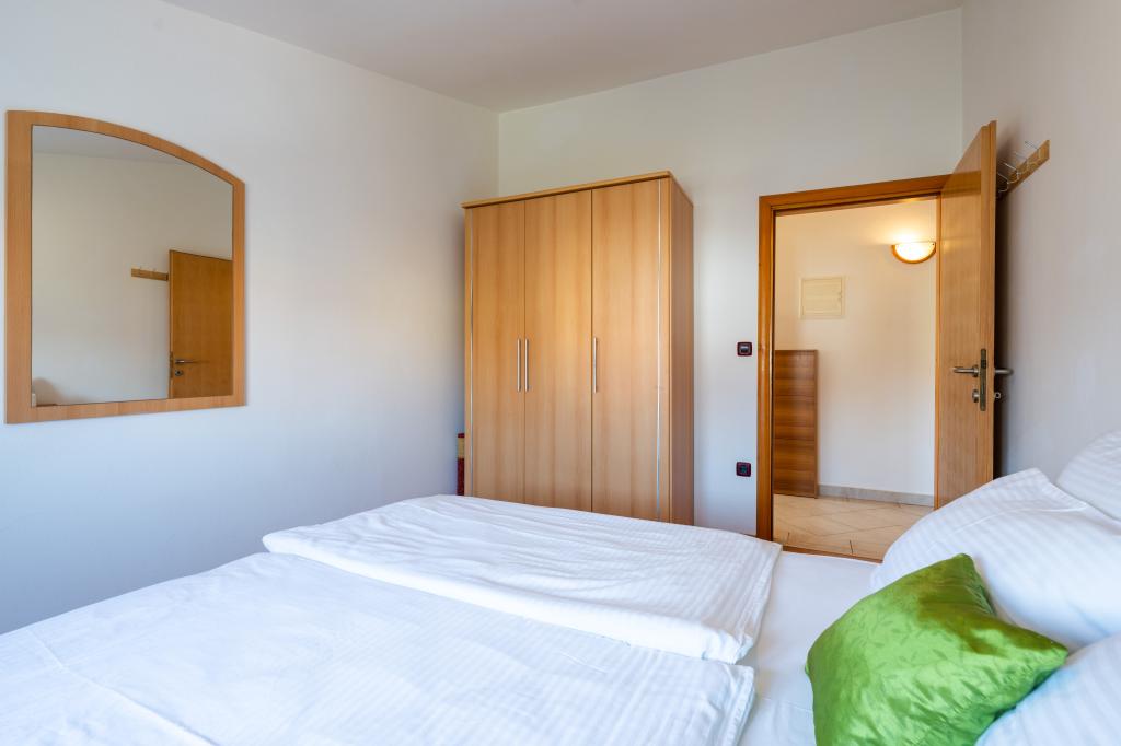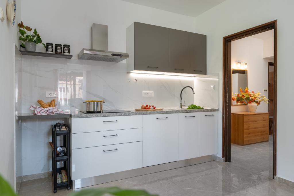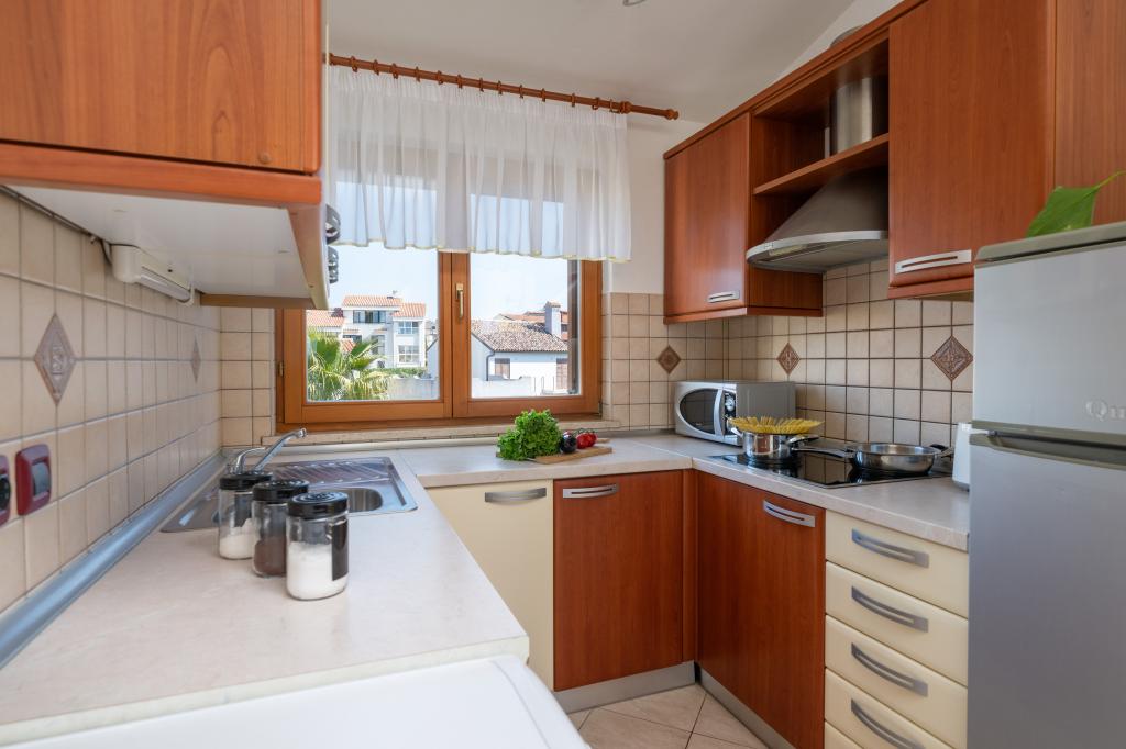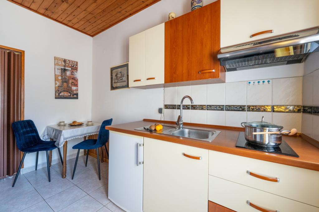 Huset ligger i en rolig del af Medulin, 250-300 m fra stranden, med en stor have og privat parkering. Der er 4 lejligheder til leje, fuldt og moderne udstyrede. 2 lejligheder er beliggende i stueetagen. Lejlighed nr. 1 med 2 soveværelser, køkken, stue, badeværelse, terrasse. Lejlighed nr. 2 med 1 soveværelse, køkken, badeværelse, haveterrasse. På 2. sal lejlighed nr. 3 med 2 soveværelser, køkken, stue, badeværelse, balkon. Lejlighed nr. 4 med 1 soveværelse, køkken med stue, badeværelse og balkon. Alle lejligheder har aircondition, trådløst internet, satellit-tv. Prisen inkluderer sengelinned, håndklæder, turistskat og registrering. Hver lejlighed har sin egen parkeringsplads, have og transportabel grill til rådighed. Vaskemaskineudlejning 5 euro, ekstra seng 10 euro. Parkering og gårdhave under videoovervågning.