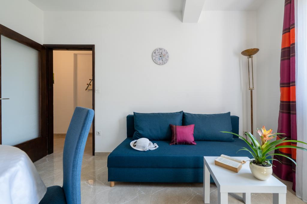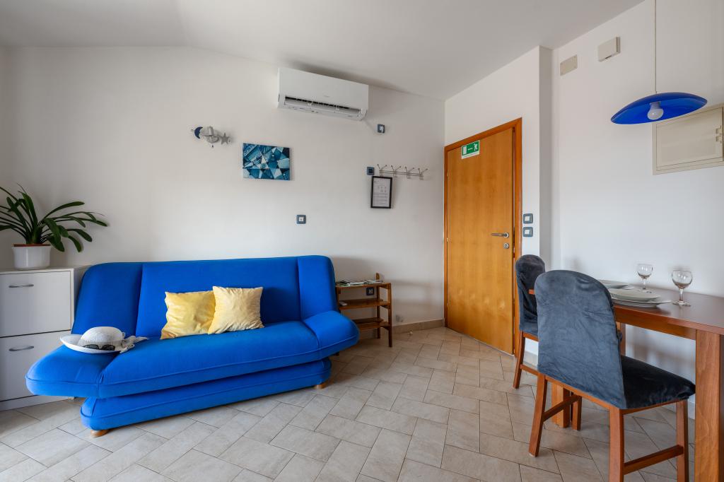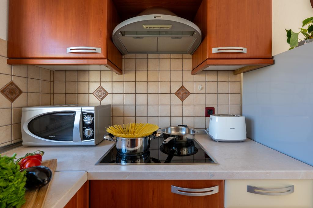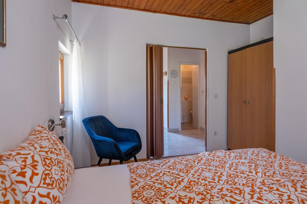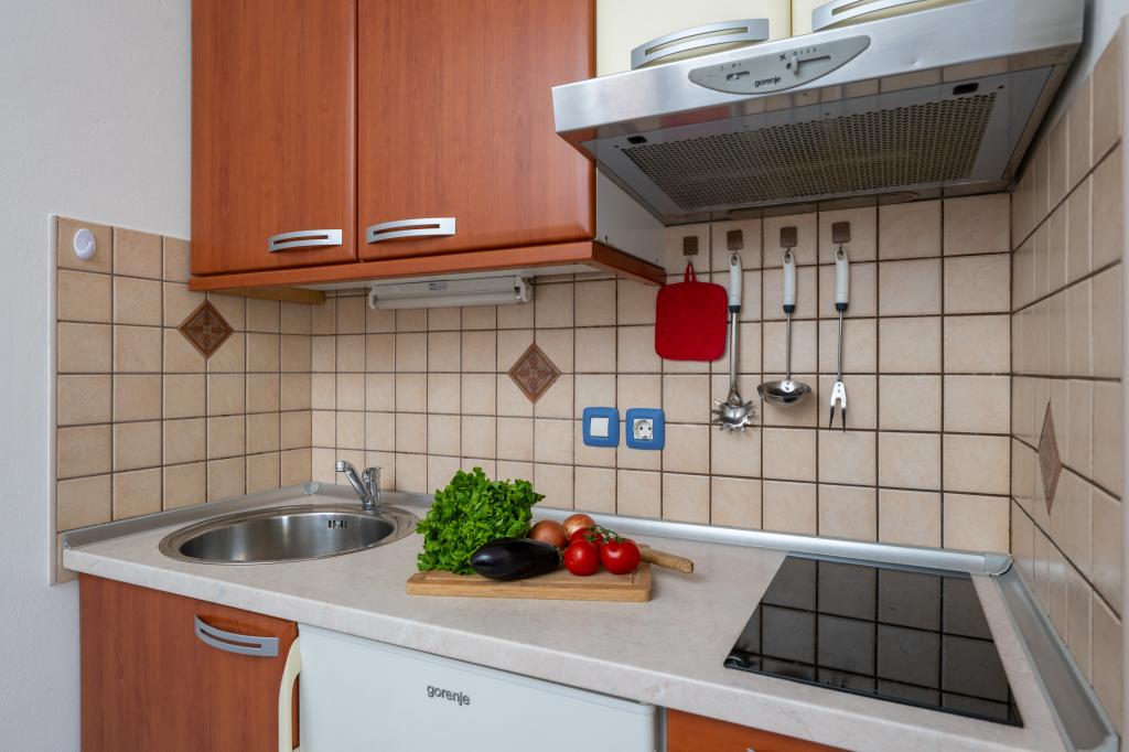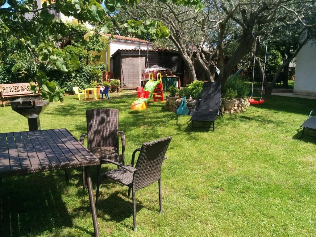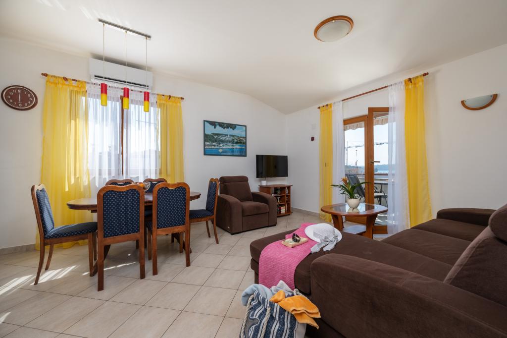 Huset ligger i en rolig del af Medulin, 250-300 m fra stranden, med en stor have og privat parkering. Der er 4 lejligheder til leje, fuldt og moderne udstyrede. 2 lejligheder er beliggende i stueetagen. Lejlighed nr. 1 med 2 soveværelser, køkken, stue, badeværelse, terrasse. Lejlighed nr. 2 med 1 soveværelse, køkken, badeværelse, haveterrasse. På 2. sal lejlighed nr. 3 med 2 soveværelser, køkken, stue, badeværelse, balkon. Lejlighed nr. 4 med 1 soveværelse, køkken med stue, badeværelse og balkon. Alle lejligheder har aircondition, trådløst internet, satellit-tv. Prisen inkluderer sengelinned, håndklæder, turistskat og registrering. Hver lejlighed har sin egen parkeringsplads, have og transportabel grill til rådighed. Vaskemaskineudlejning 5 euro, ekstra seng 10 euro. Parkering og gårdhave under videoovervågning.