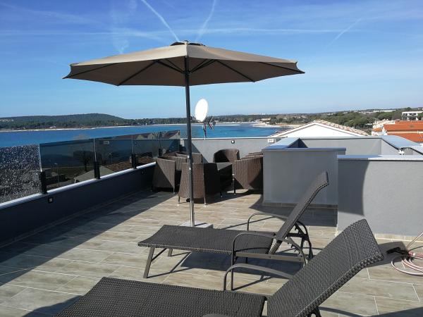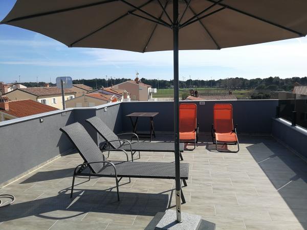 Først og fremmest, booking, kommunikation mellem os og ejeren, og endelig betaling gik uden besvær. Dette var vores første store indtryk. Derefter, da vi ankom, at finde den lejlighed var en smule prekært (hele området er fyldt med nye, overraskende lidt bygninger - store zone af byen), men ejeren hjalp på telefonen. Bygningen er meget nydelig, apartment var ren (som næsten ville vi have trådt ind i en helt ny plads), havemøbler er nye, moderne, herunder alle ekstra ting (køkkenudstyr, vaskemaskine, air condition ... osv.). .. alt i alt kan det ikke måle op til nogle tidligere erfaringer. Ceja er stor, og det er optimalt for yngre mennesker og familier samt. Vinduerne lukke de mindste part lyde af byen. Terrassen har en smuk udsigt over omgivelserne. WiFi er tilgængelig (don 't forventer hurtige HD streams fra Youtube dog, haha!), To parkeringsplads er tilgængelig i haven (delt med lejligheden nedenunder), men der er en parkeringsplads lige uden efter hegnet, så hvis nogen ekstra bil er til stede (på grund af en 6 personers ophold, for eksempel) kan du se din bil 20m fra terrassen. Havet er bogstaveligt talt 100m væk, hvilket betyder en 2 minutters gang ned til Rocky stranden (som er IMO den største langs kysten), og byens centrum er heller ikke for langt (1,5 ~ 2 km, 15 minutters gang langs kysten). Ejeren var meget hjælpsom, han er altid i nærheden, så alt spørgsmålet, kunne han hjælpe dig. Vi var der med 6 voksne person, hvilket er stadig håndterbare (men dont forvente for meget om det konvertible dobbelt sovesofa i stuen). Alt i alt, det moderne livssyn, de rene og usædvanligt forberedte værelser garanteret en fornøjelse ophold i Medulin. Lejligheden er en stor-stor værdi for sin pris!