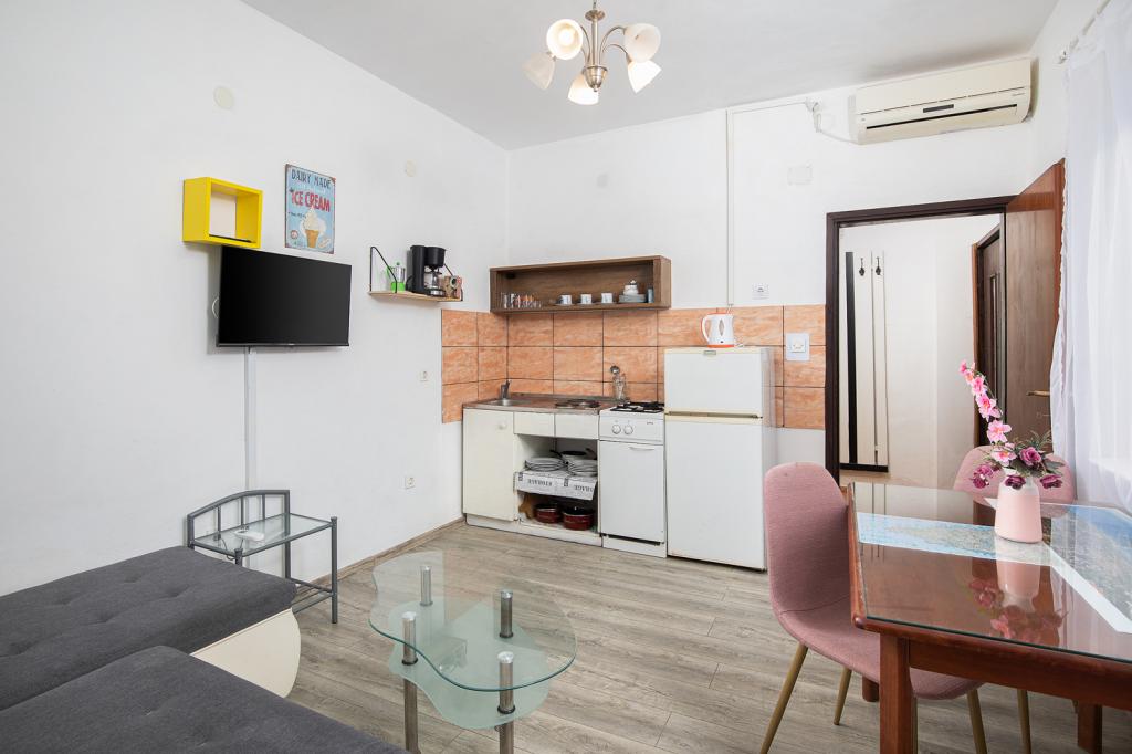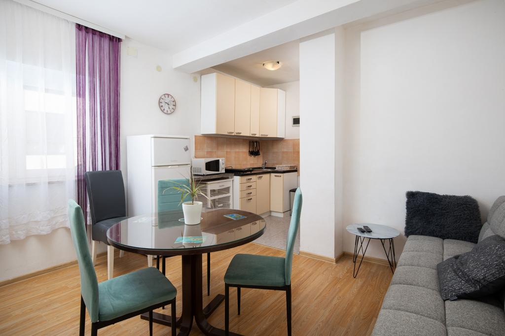 Lejligheder på 1. og 2. sal til 4-5 personer væk fra den berømte sandstrand Bijeca70 meter. Lejlighederne ligger 2 minutters gang fra sommerens centrum. Der er en marina, adskillige restauranter, butikker, et underholdningscenter for børn og en smuk fyrreskov med en campingplads.