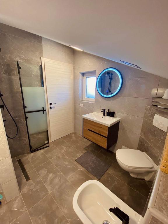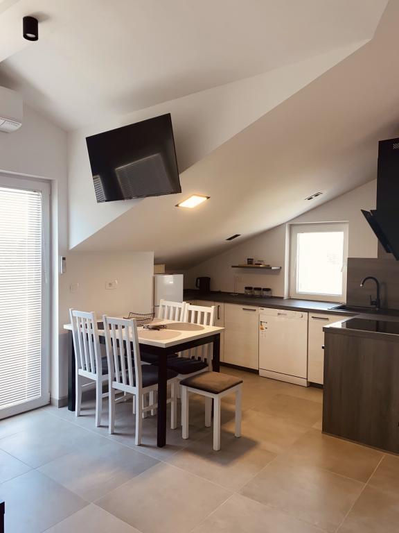 Indkvarteringen er beliggende i den behagelige omfavnelse af Istriens natur, som skaber et magisk miljø og giver gæsterne komfort og fred til en kvalitetsferie. Kun 3 km væk ligger den smukke sandstrand Bjeca, kendt for sin skønhed og krystalklare hav. I umiddelbar nærhed finder du også en adrenalinpark kun en kilometer væk. Derudover er den uundgåelige destination for elskere af uberørt natur, Kamenjak National Park, kun 15 km væk. Denne park fortryller med sit charmerende landskab, maleriske strande og rige flora og fauna, hvilket giver en ekstraordinær oplevelse for alle besøgende. Pula Lufthavn ligger 13 km derfra. I nærheden ligger også det berømte Pula amfiteater, som tiltrækker interesserede i områdets historie og kultur. Uanset dine interesser og ønsker vil denne bolig, takket være dens nærhed til naturlig skønhed, seværdigheder og komfort, sikre en uforglemmelig oplevelse under din rejse.