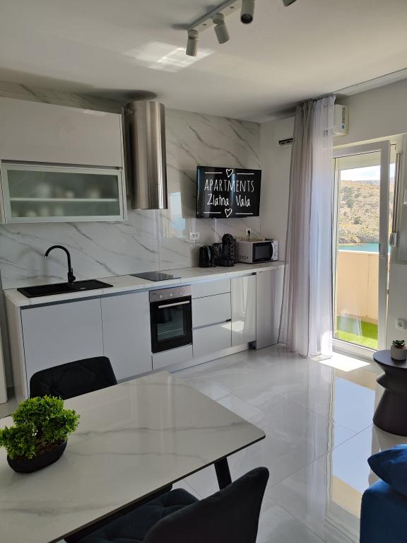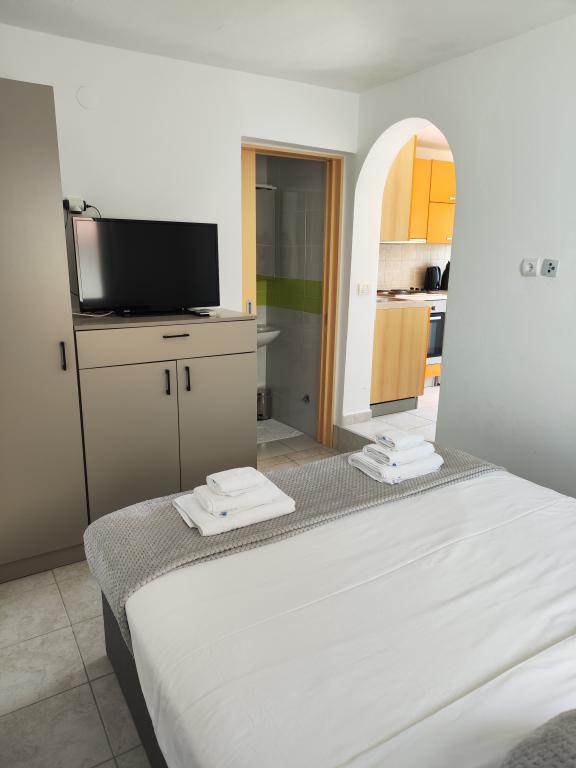 Vi har været på ferie i Kroatien i flere år nu. Normalt prøver vi et par forskellige overnatningssteder i løbet af en ferie, og vi må sige, at dette har været vores bedste lejlighed indtil videre! Lejligheden tilbyder masser af plads til en familie på fire – vi følte os meget komfortable i den. Den er moderne møbleret, giver et luksuriøst indtryk, er ekstremt ren (den så næsten helt ny ud) og har en balkon med en betagende udsigt over hovedstranden og hele Metajna-bugten, hvor vi nød solnedgangen næsten hver aften. Lejligheden er fremragende udstyret. Udover nyttige apparater som opvaskemaskine, induktionskogeplade, aircondition, Wi-Fi (med stærkt signal) osv. er der også en kaffemaskine og en stavstøvsuger, hvilket især værdsættes af alle med børn. Vi fik et ubegrænset lager af opvaskemaskinetabletter samt kaffekapsler. Lige ved lejlighedsbygningen kan man bruge to typer grill og slappe af i hængekøjestole på terrassen. Under vores ophold lånte værterne os også venligt deres paddleboards, hvilket gav os en fantastisk chance for at prøve paddleboarding for første gang. Lejlighederne tilbyder også en rummelig parkeringsplads lige over bygningen. Alle disse detaljer bidrager til den samlede komfort og den fantastiske følelse af at bo her. På ankomstdagen fandt vi en gavepose på bordet med hjemmelavede marmelade, som værterne selv havde lavet. Det var en dejlig overraskelse. Værterne var meget behagelige og kommunikative fra første øjeblik. De hjalp os med alt, hvad vi havde brug for, uden problemer, og var altid villige til at imødekomme os. Under vores ophold overraskede værtinden os to gange med en fuld tallerken friske pandekager og en lækker kage. Den nærmeste strand ligger kun cirka 2 minutters gang ned ad gaderne i Metajna – den største Metajna-strand. Lige bag en lille bakke finder du den smukke Ručica-strand. Jeg anbefaler at leje en vandcykel der og tage ud og se den nærliggende Beritnica-strand, med udsigt over fantastiske sandstensformationer. Ved solnedgang nød vi at gå langs kyststien "Life on Mars", som starter for enden af stranden i Metajna og slynger sig rundt til Ručica-stranden. Som jeg nævnte i starten af denne anmeldelse – denne lejlighed er langt den bedste, vi har lejet i Kroatien. Vi følte os virkelig hjemme her. Jeg anbefaler den af hele mit hjerte!