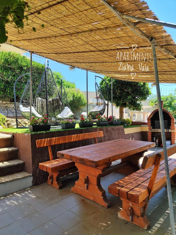 Lejlighederne Bingula ligger på en lille bakke kaldet Glavica, 150 m væk fra havet og centrum af Metajna. Nærheden af centrum og havet gør det muligt for vores gæster at være midt i begivenheder på kort tid, og også at trække sig tilbage til den fred, vores websted tilbyder. For vores gæster er der flere terrasser med fælles grill, og for de yngste gæster har vi en lille legeplads, så forældrene kan slappe af ubegrænset. Alle lejligheder er fuldt udstyret og moderne udstyret: køkken med stue, badeværelse med toilet, aircondition, satellit-tv, WLAN, balkon med havudsigt .... For dem, der vælger halvpension, tilbyder vi kroatiske specialiteter og internationale specialiteter med kroatiske peberkager. Hvis du savner noget, er der altid dine værter, som vil være glade for at komme og møde dig. Vi ser frem til din ankomst, Familie Bingula