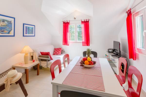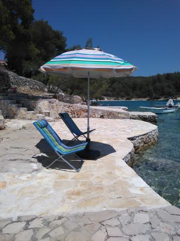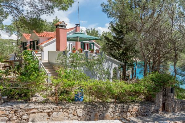 Nybygget og moderne lejlighed i en rolig bugt på den sydvestlige del af øen. Det ligger tæt på havet i en granskov, langt fra øen 15 minutters gang.